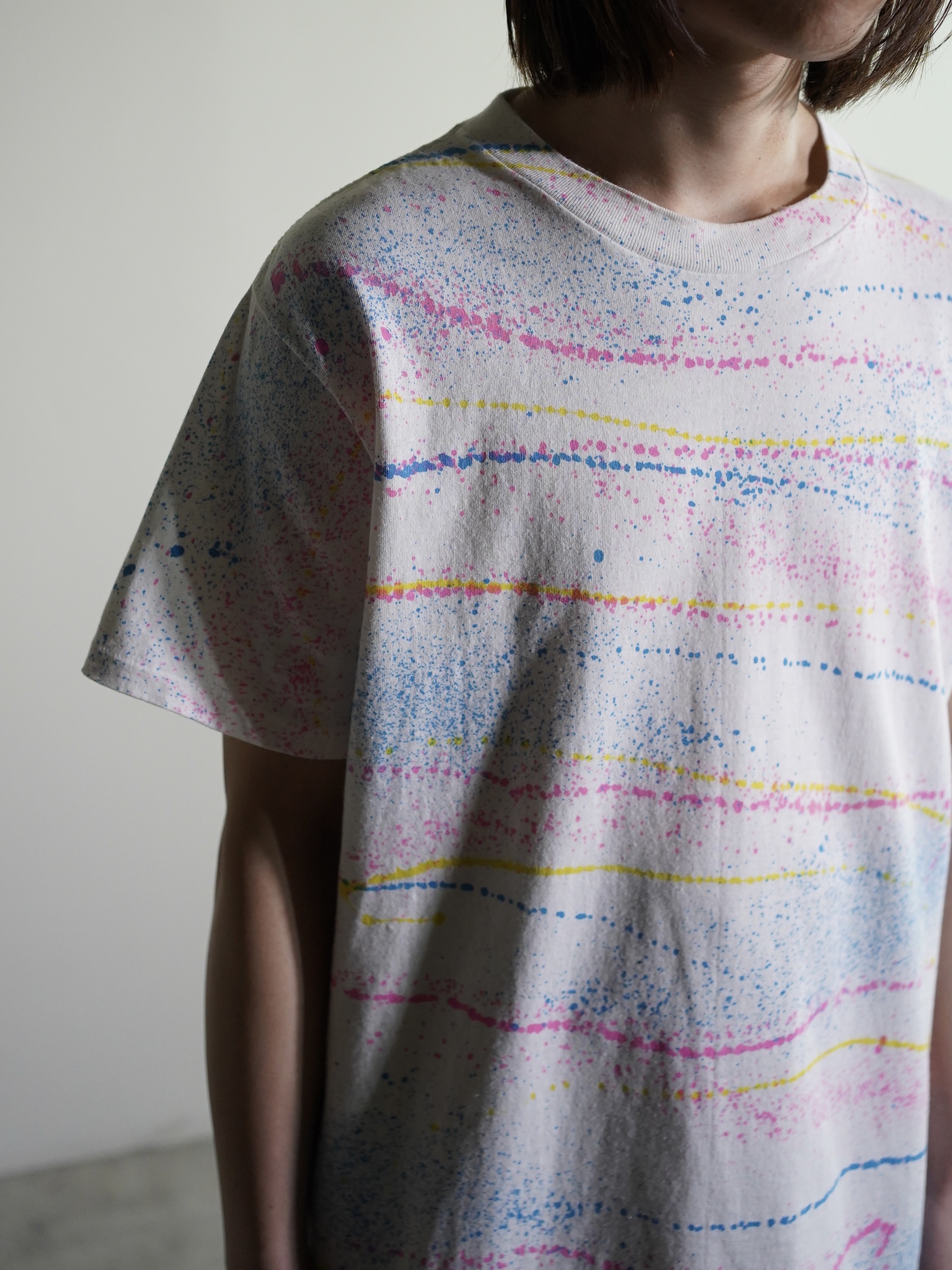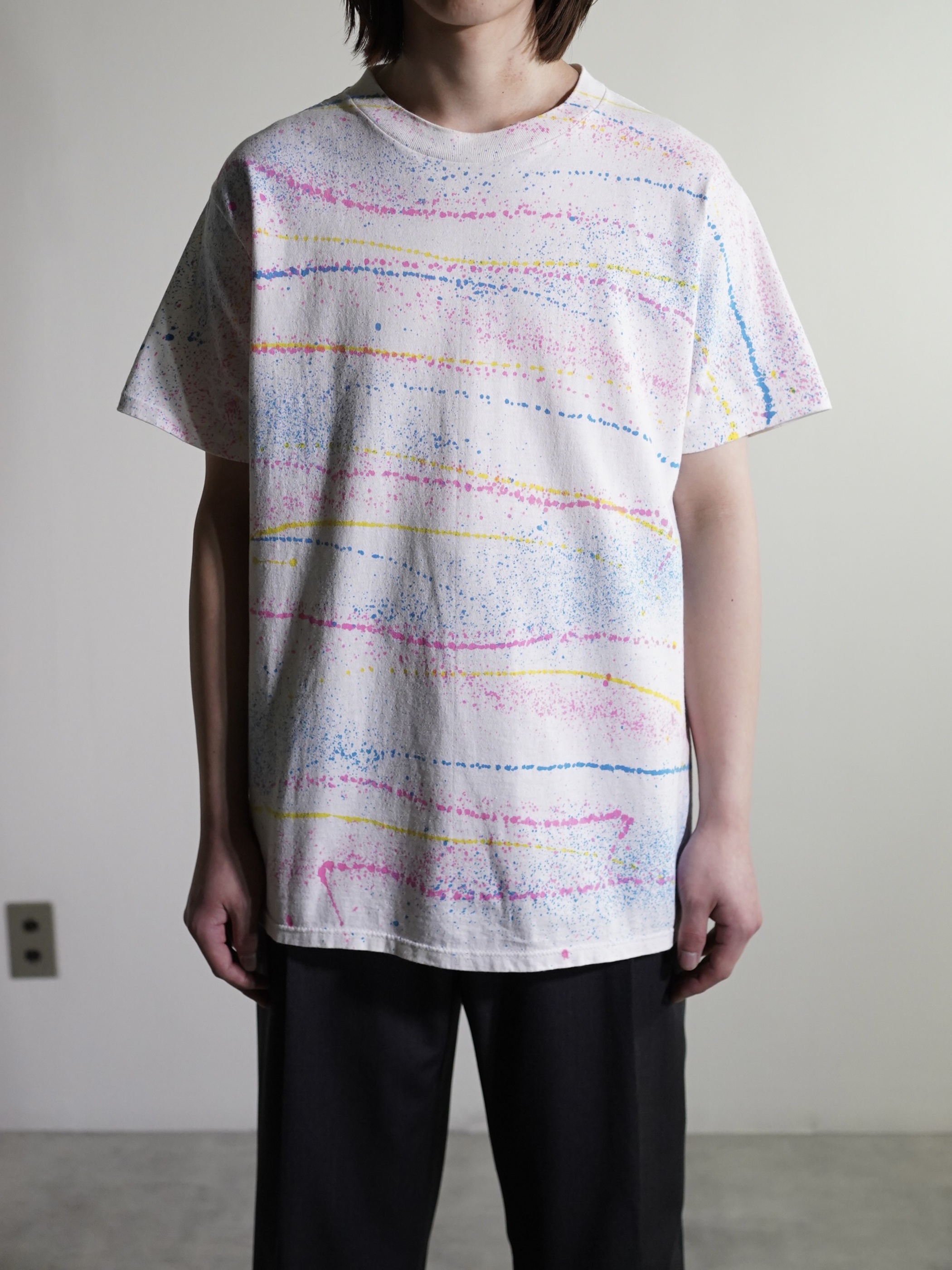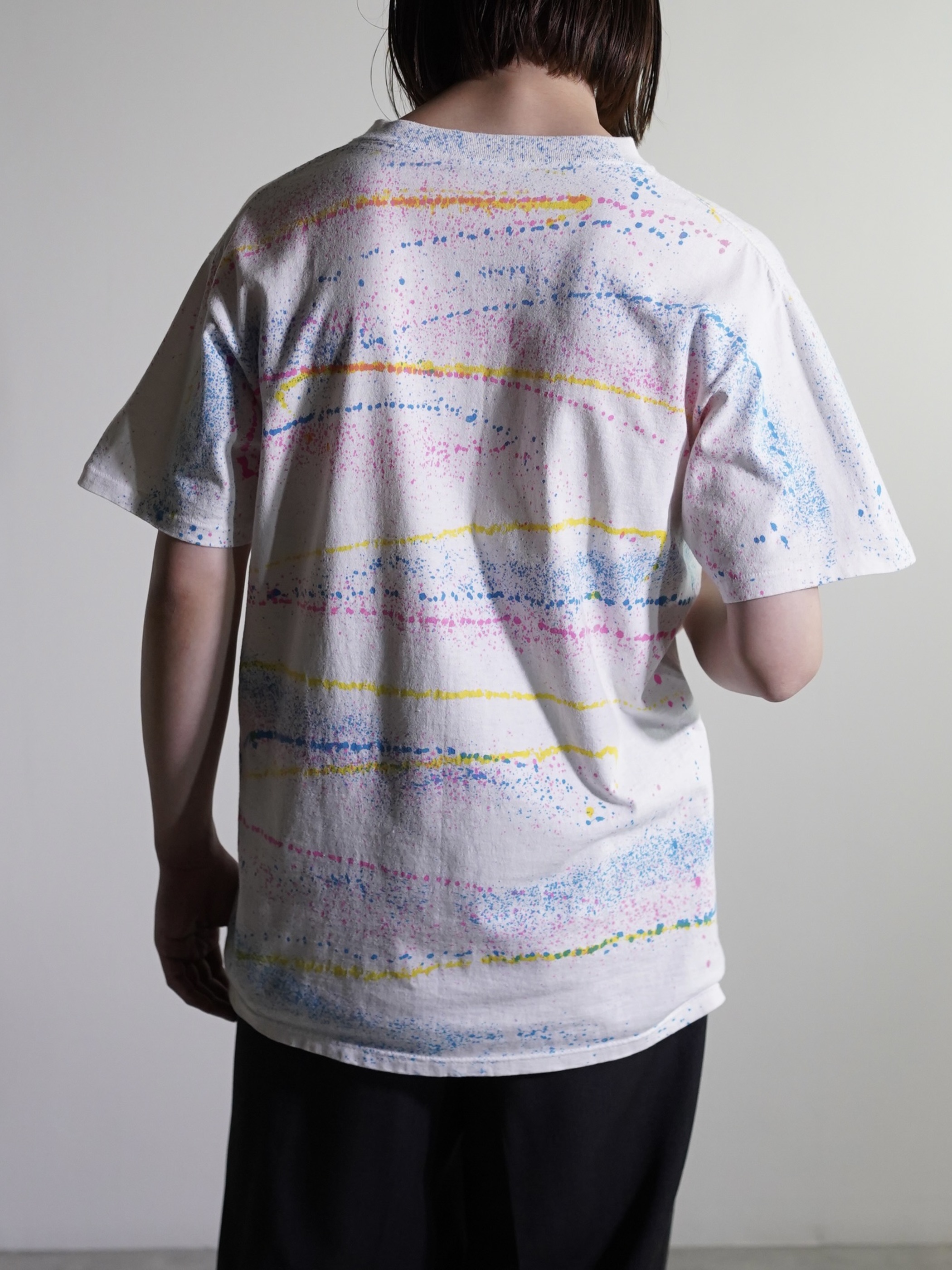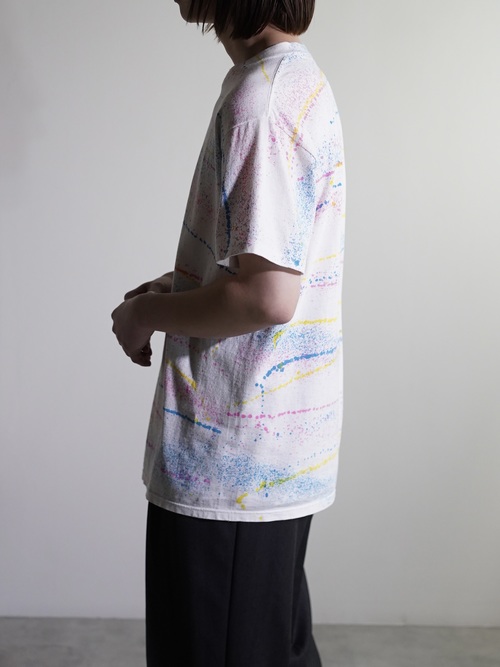 ・1990's Splatter border pattern s/s print tee shirt / Made in USA
