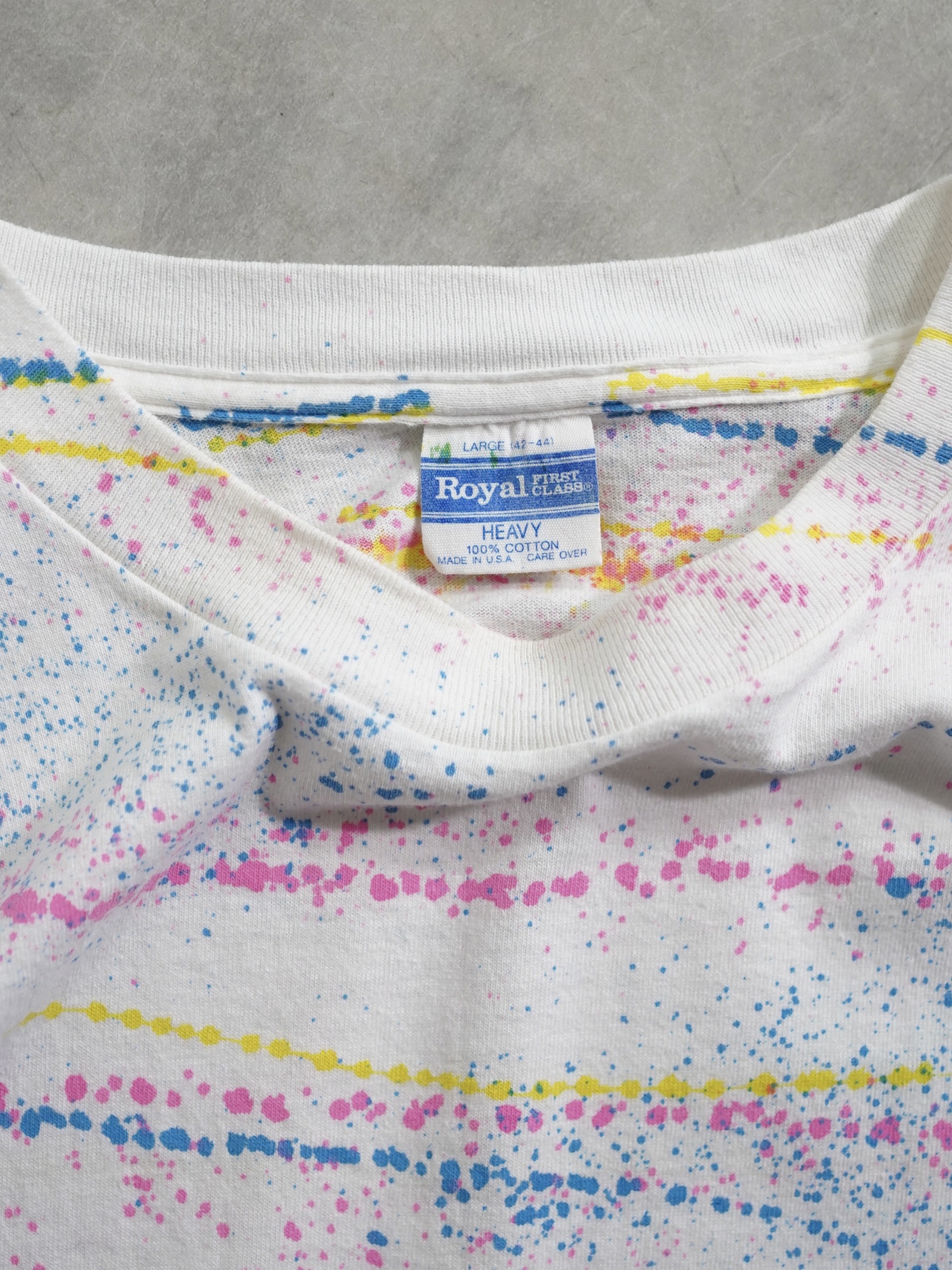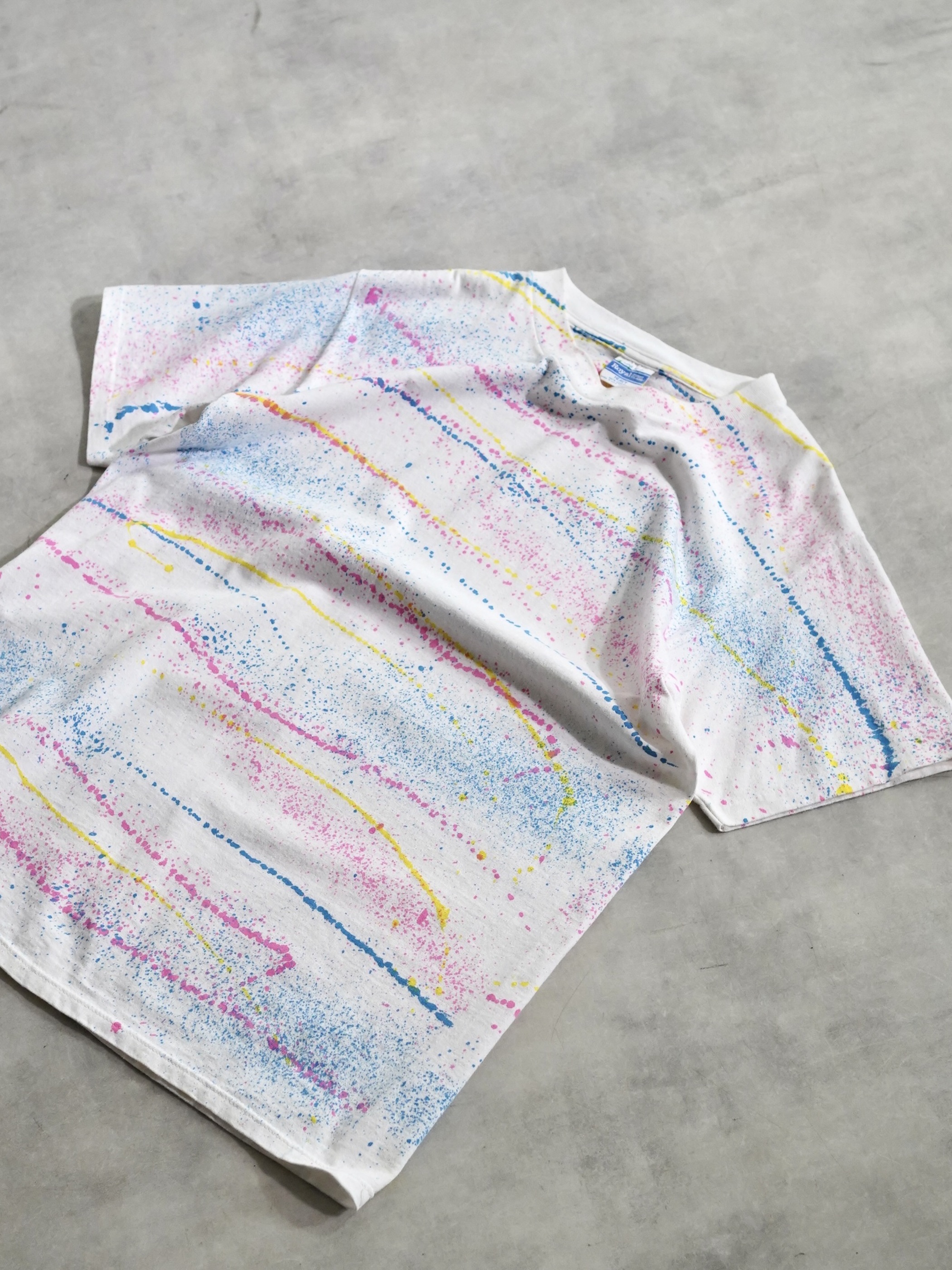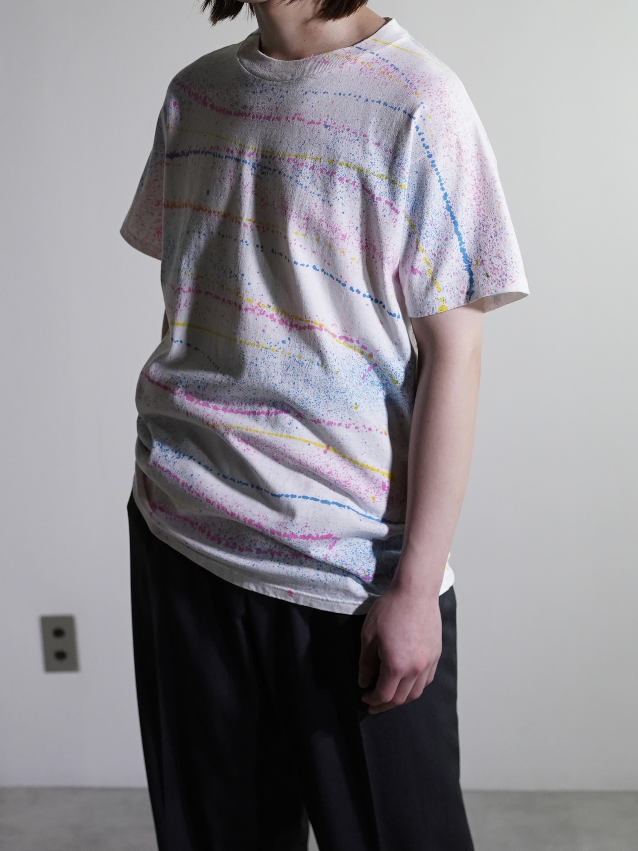 ・1990's Splatter border pattern s/s print tee shirt / Made in USA