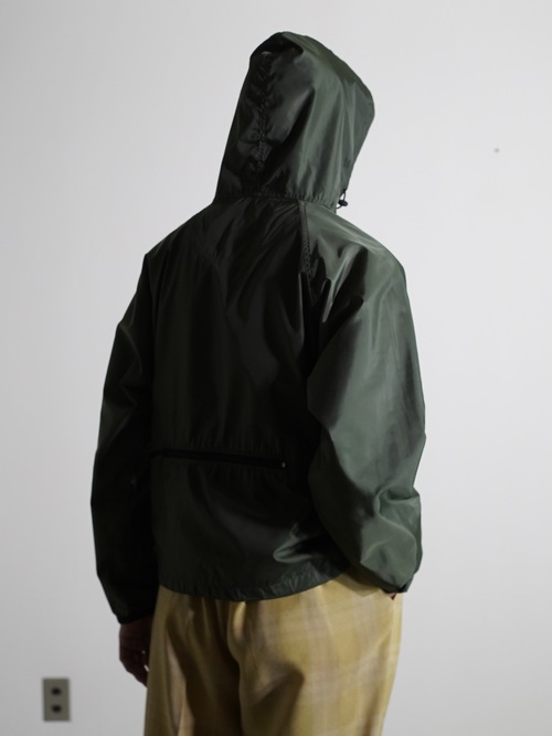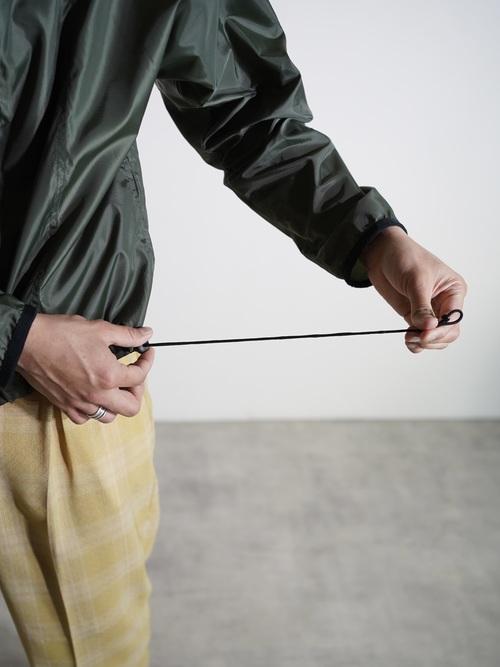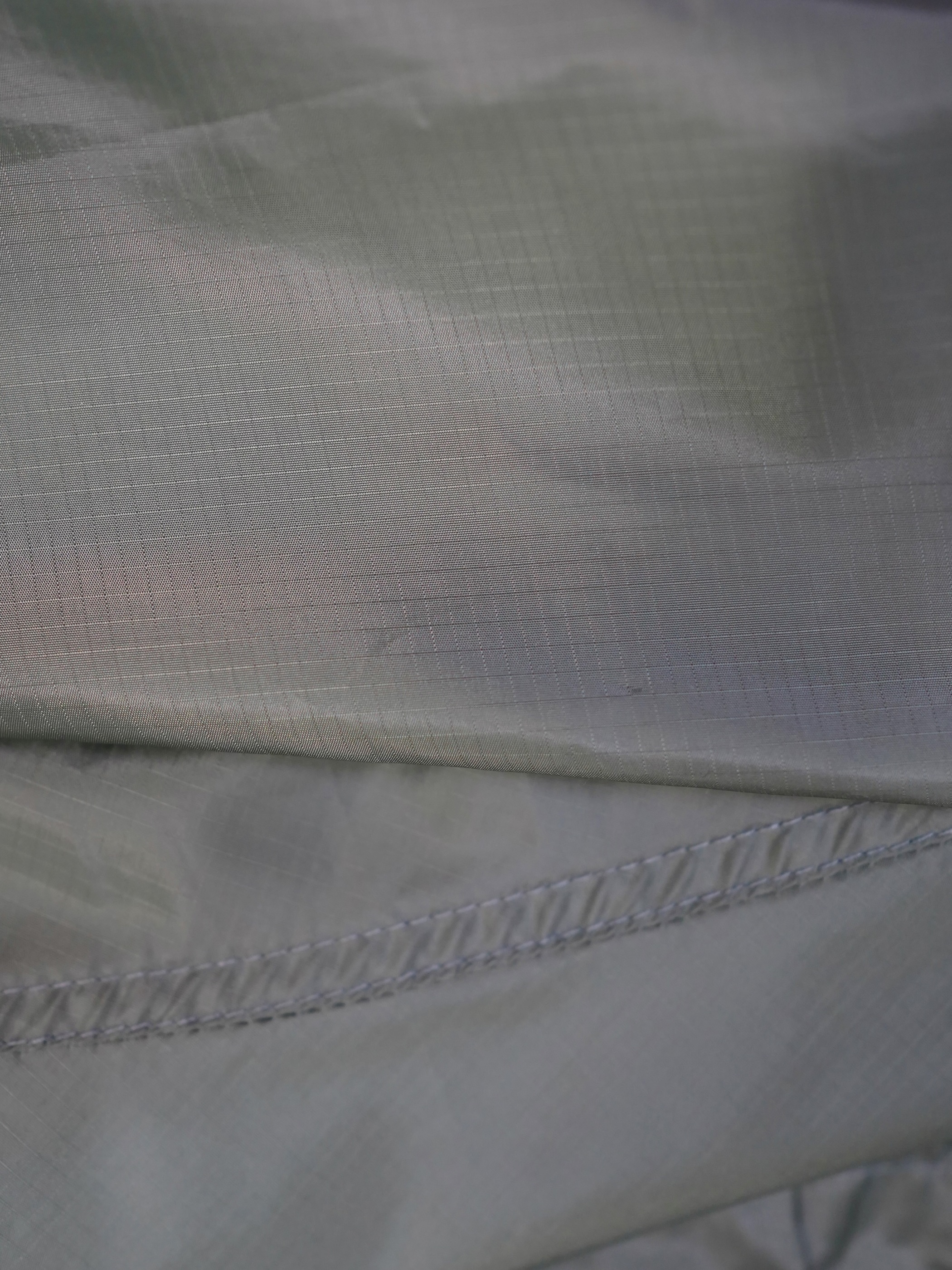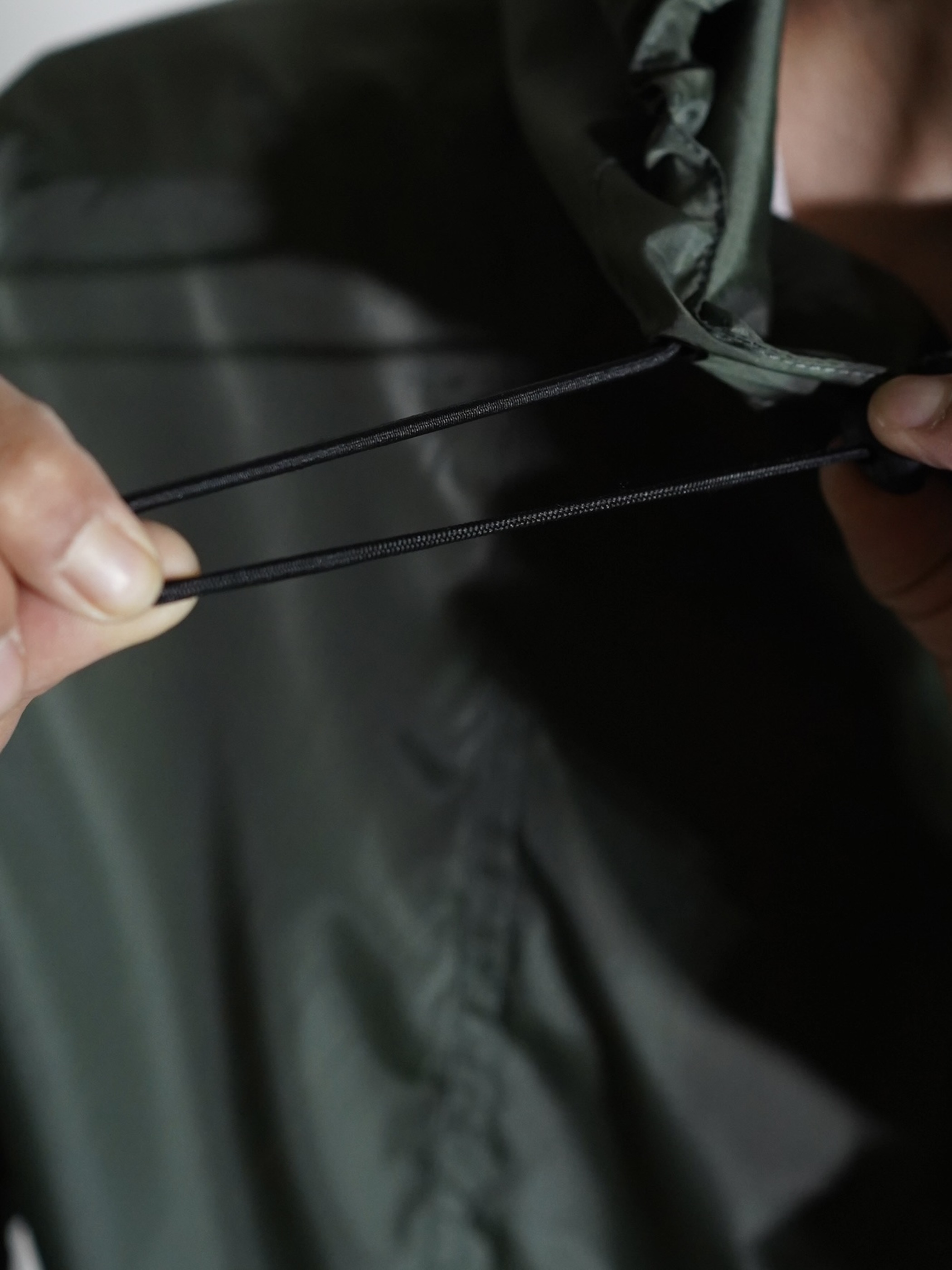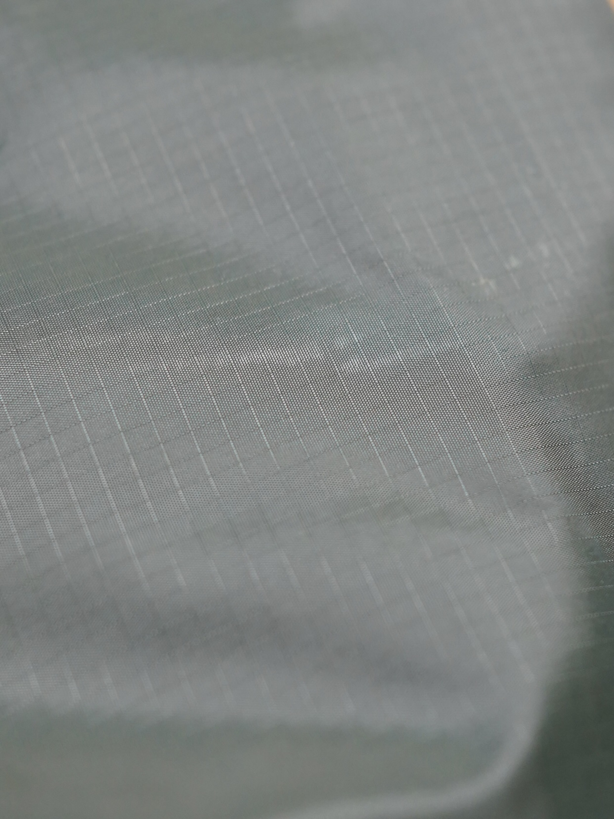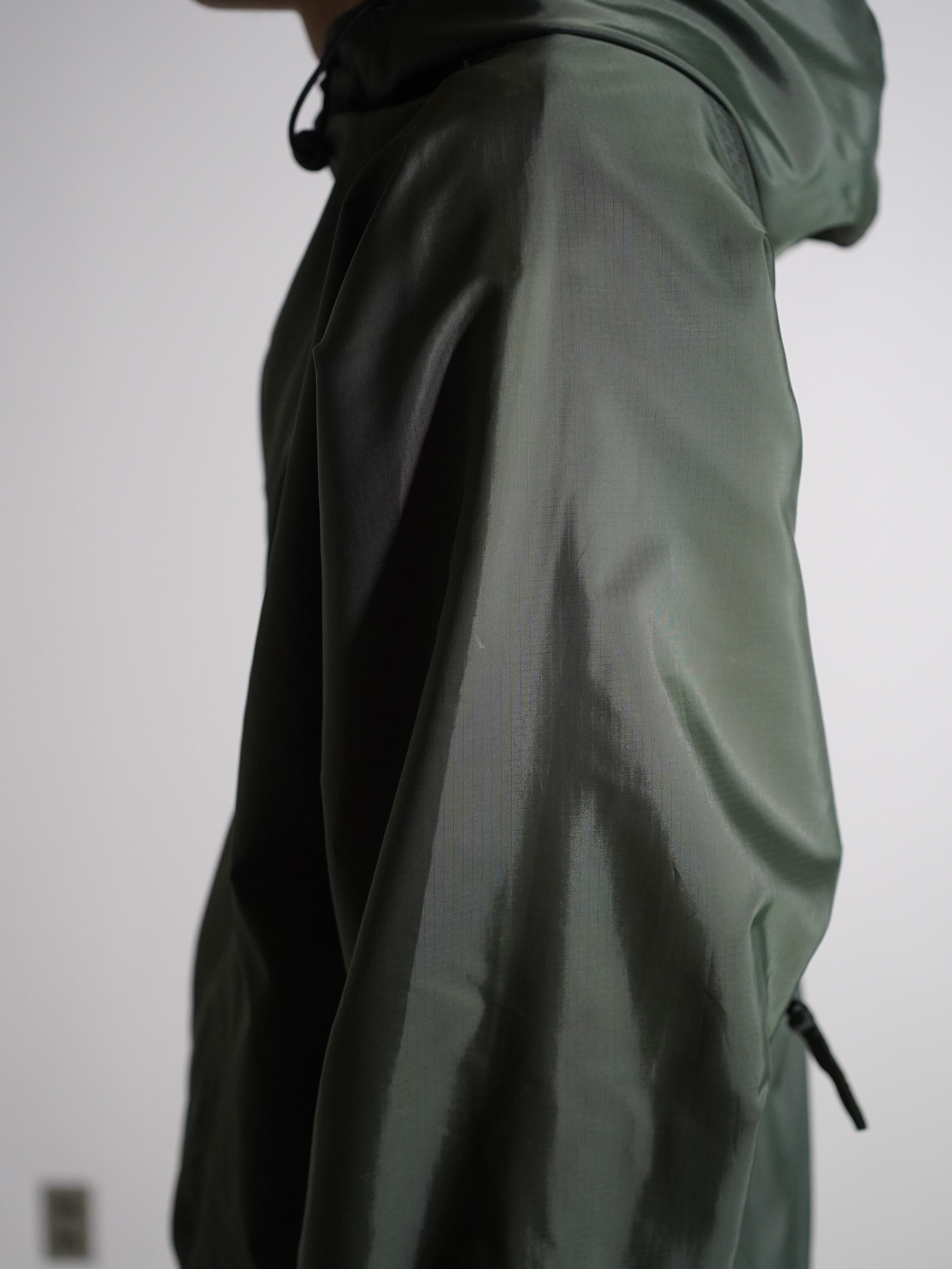 身幅が広く、肩が落ちる事によってリップストップの生地が美しくドレープして袖に溜まる。