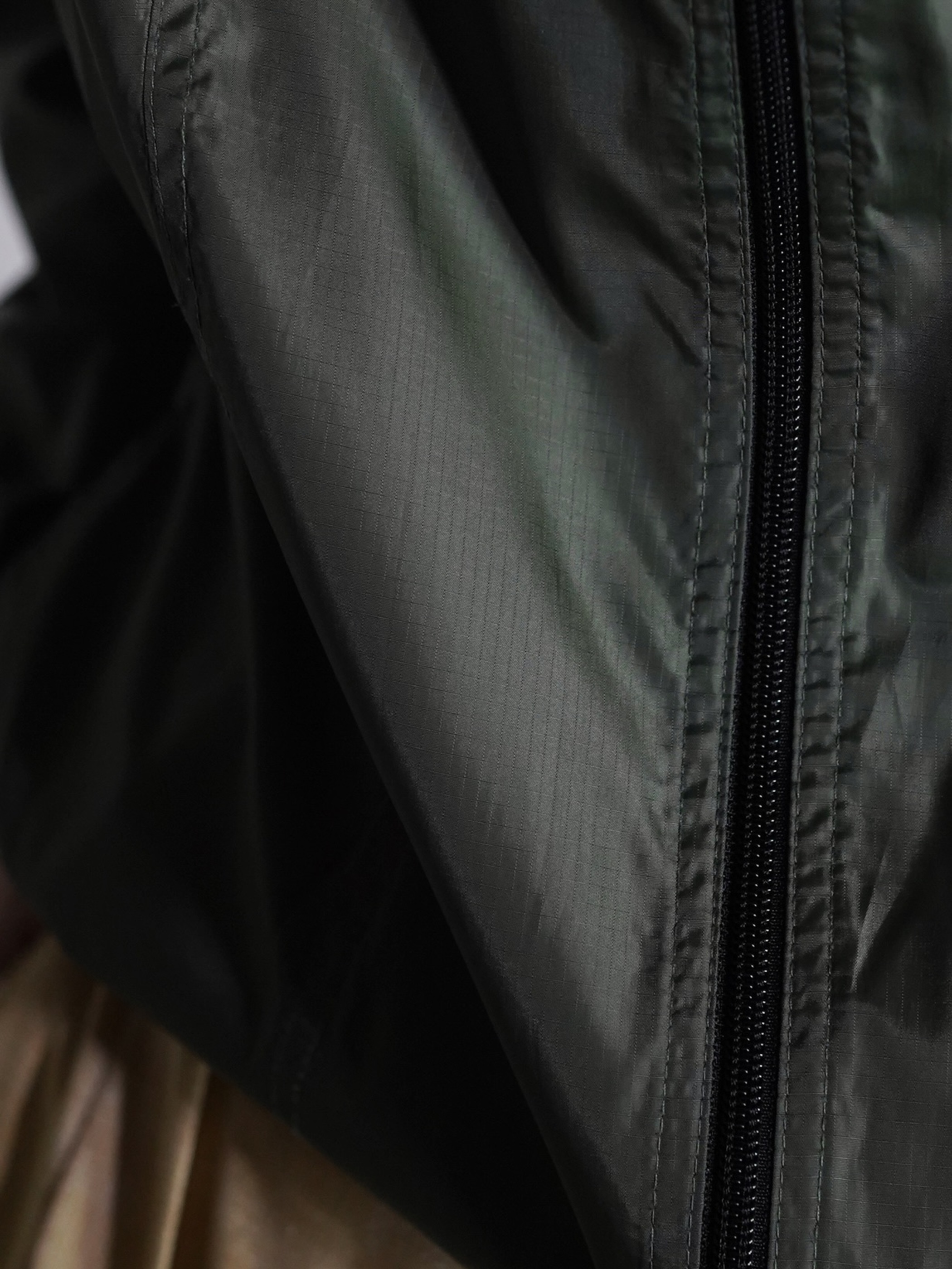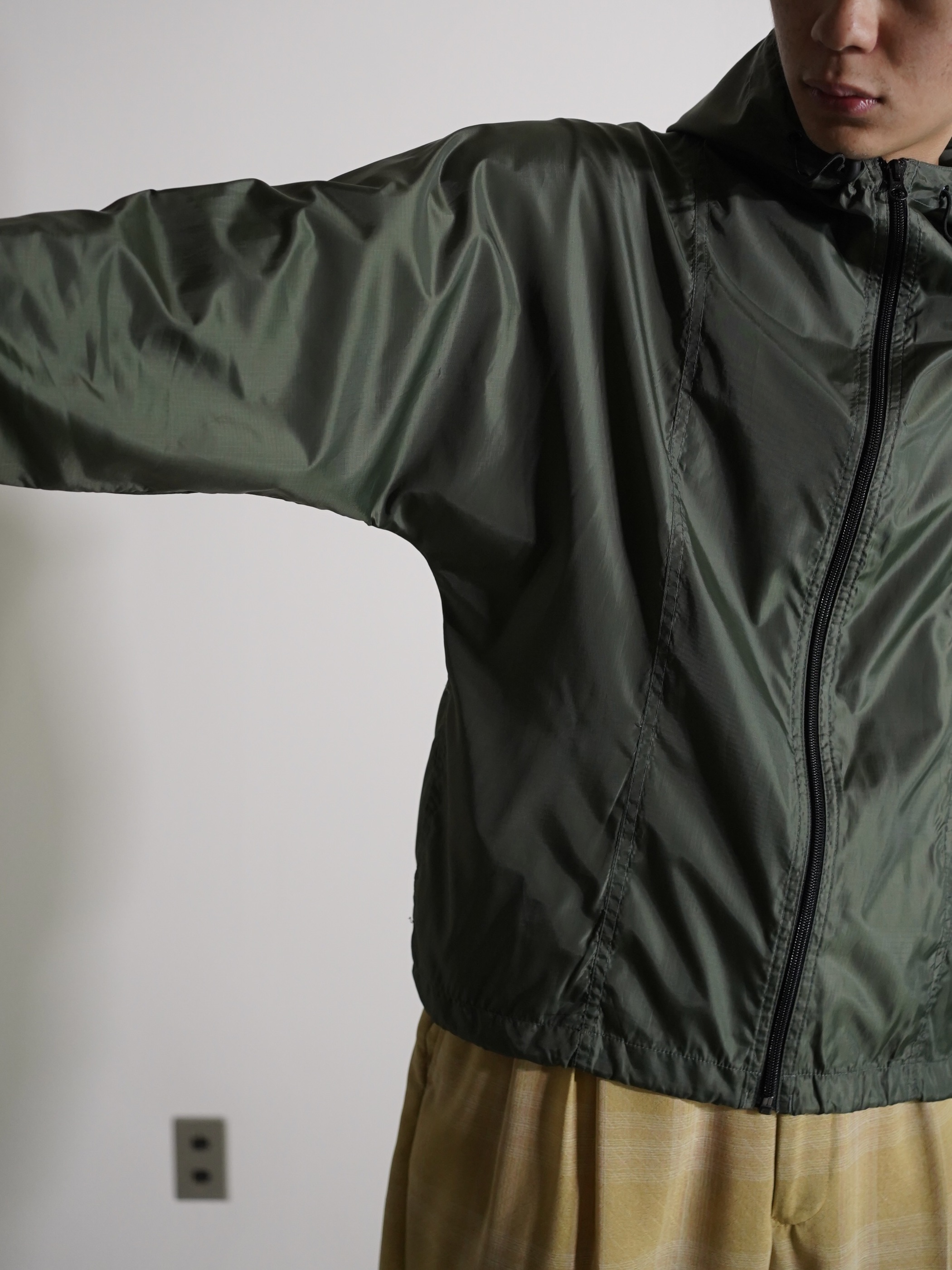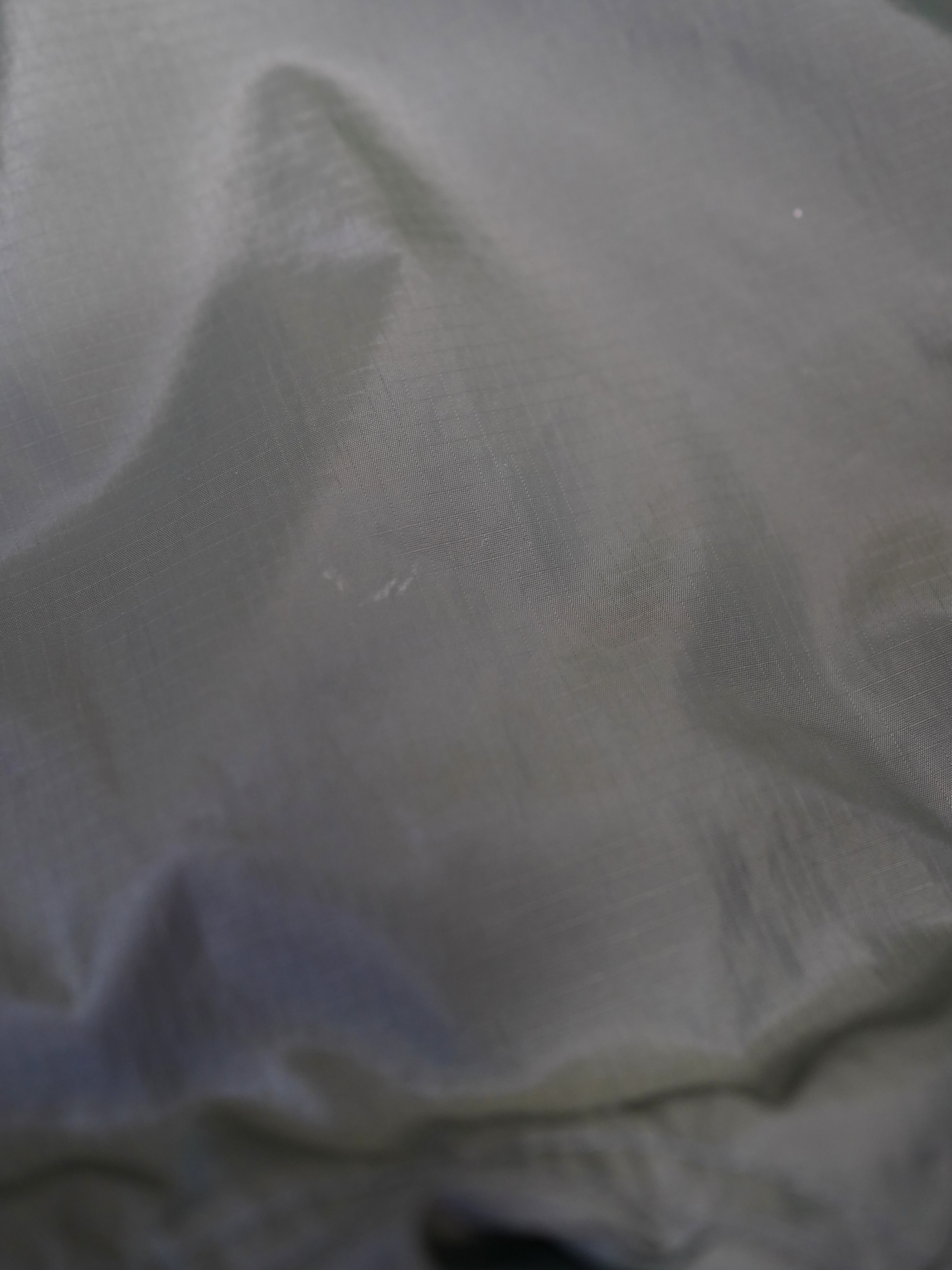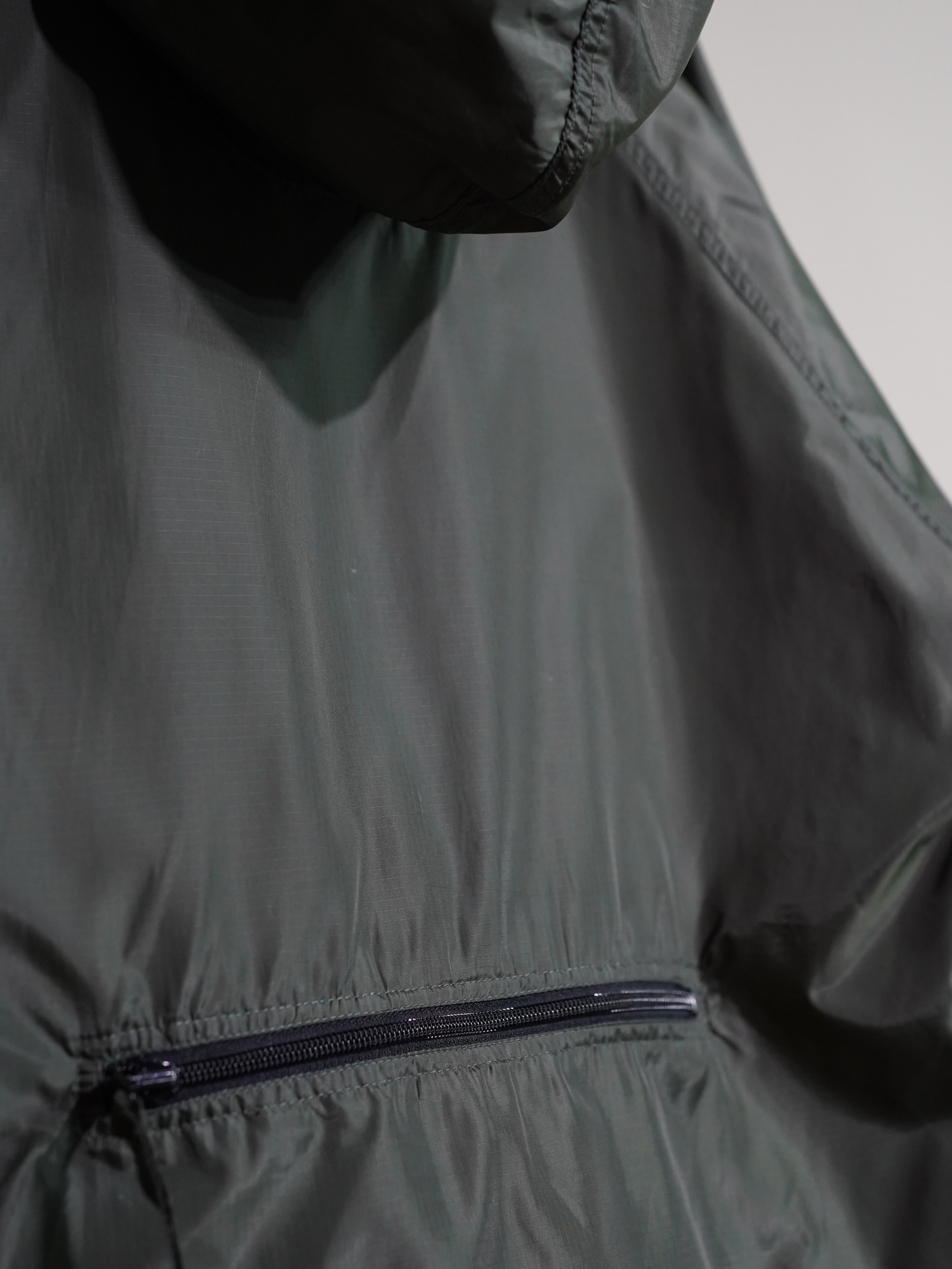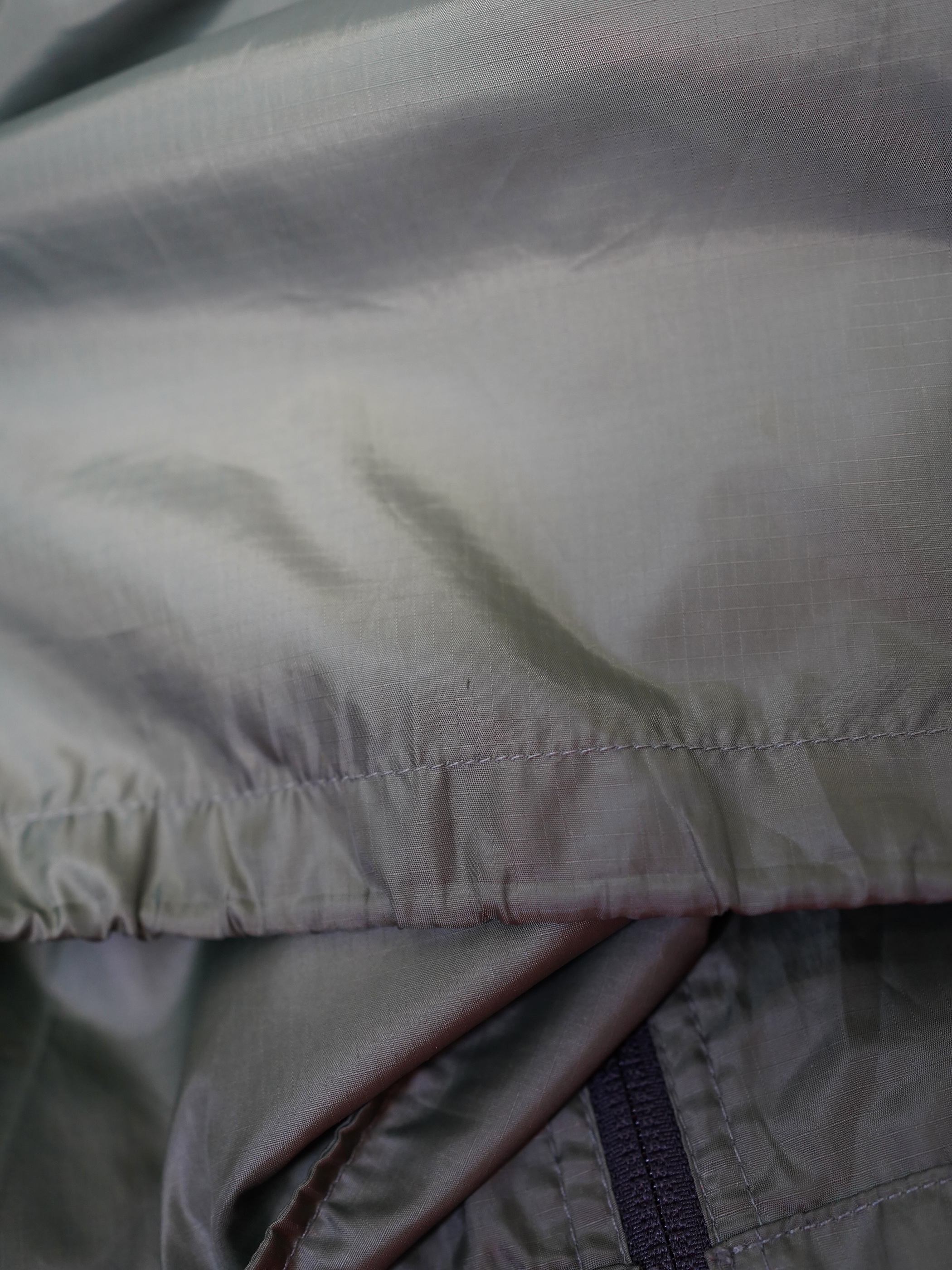 身幅が広く、肩が落ちる事によってリップストップの生地が美しくドレープして袖に溜まる。