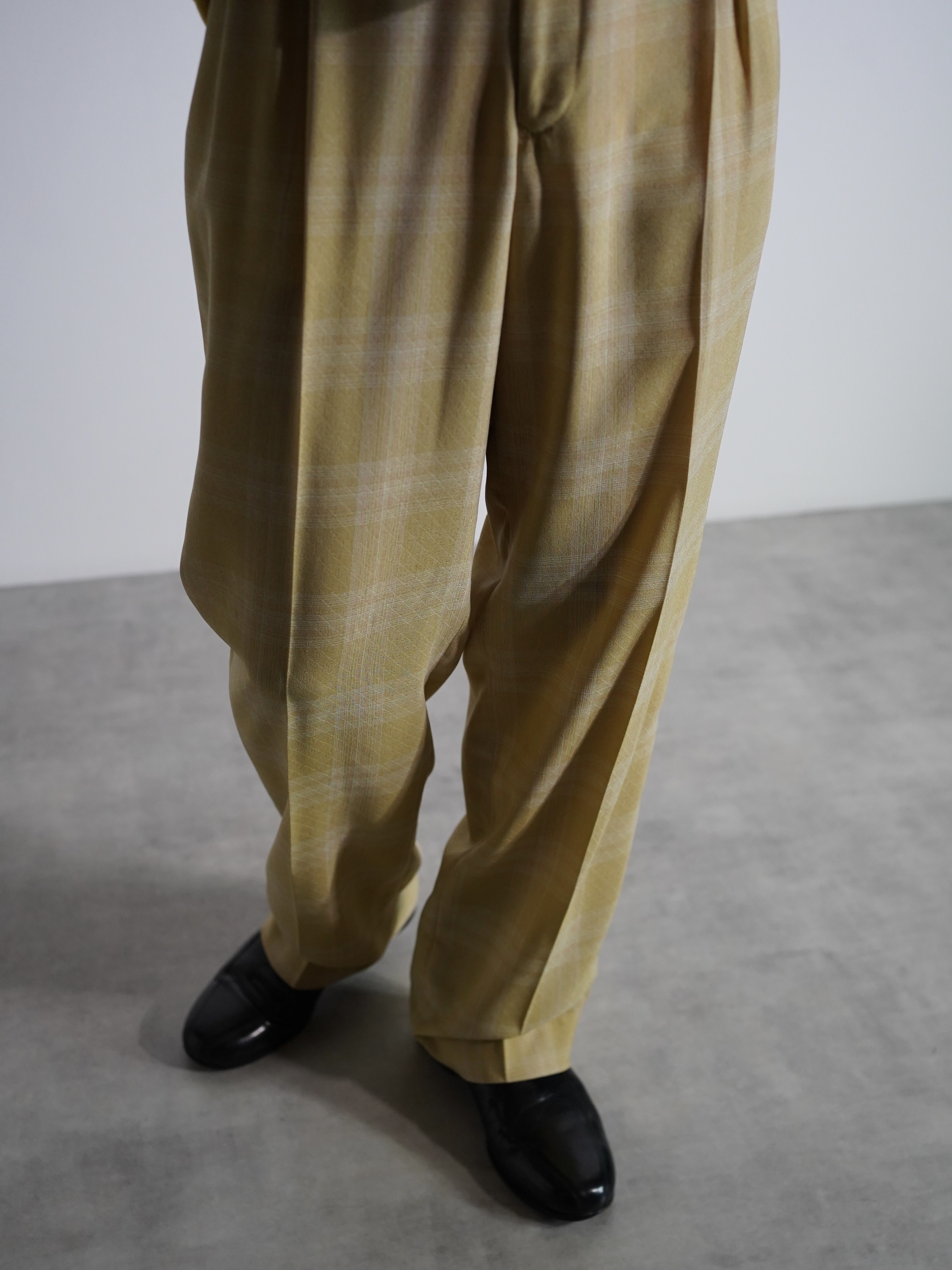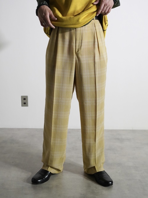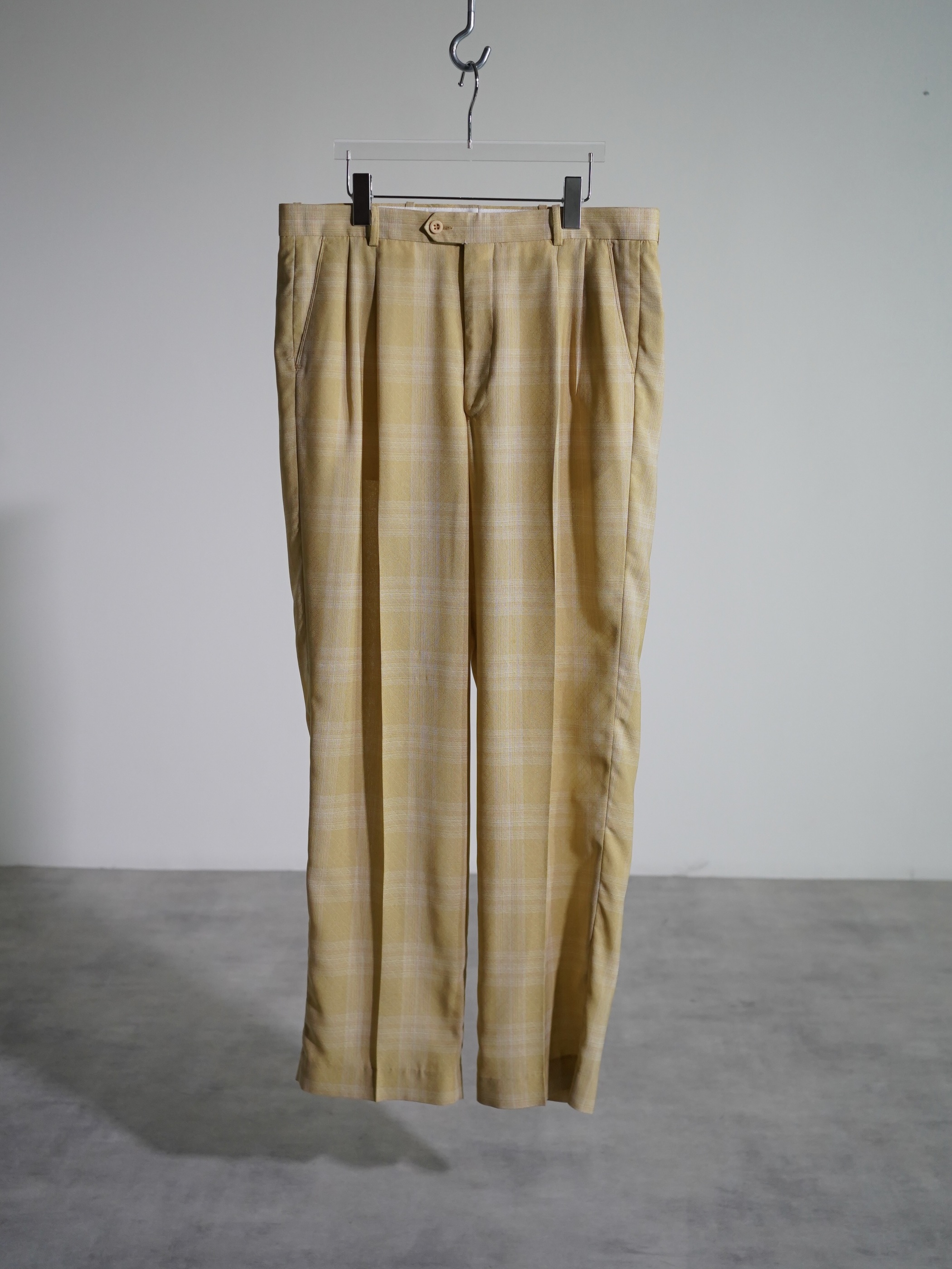 1990's PRONTI micro poly Dobby Diamond pattern with check box-tuck sheer trousers