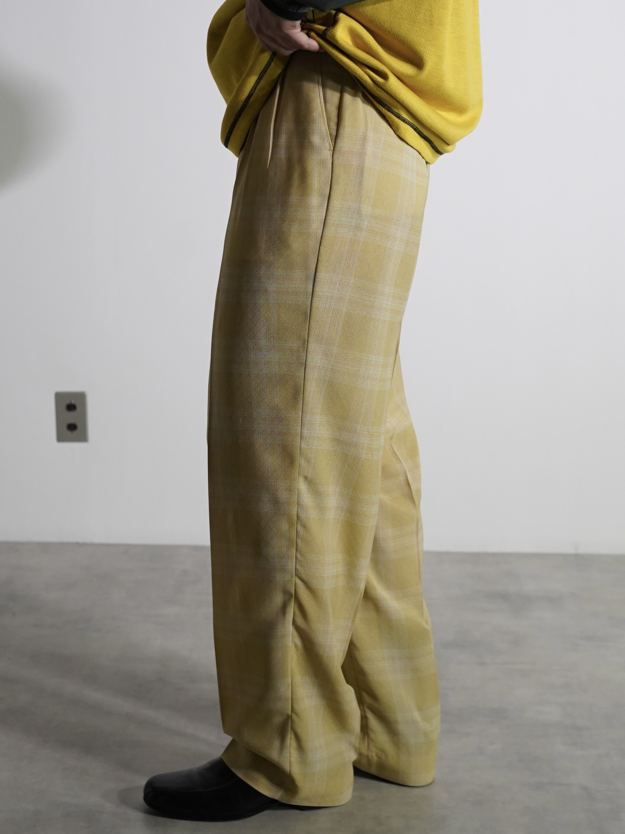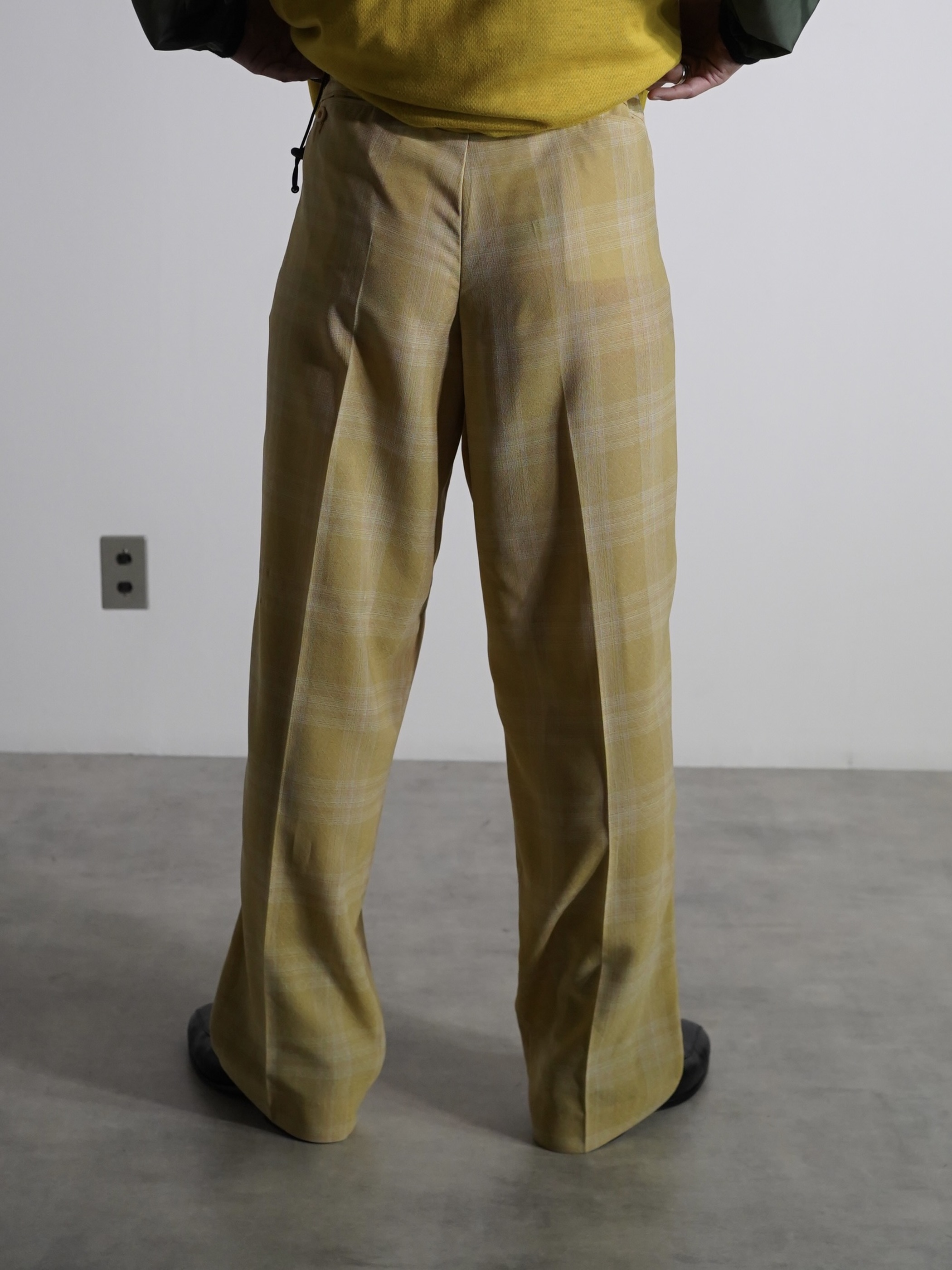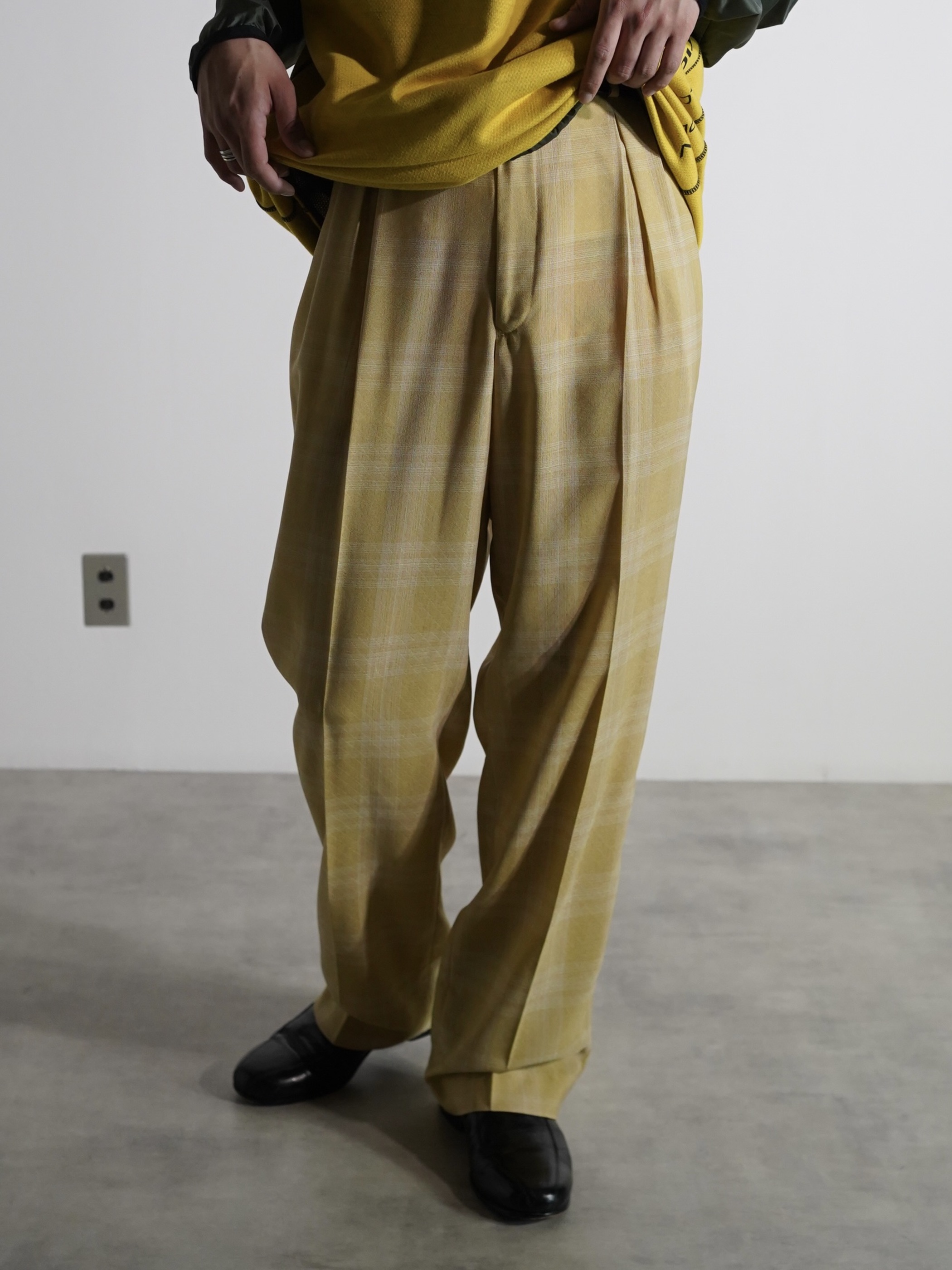 1990's PRONTI micro poly Dobby Diamond pattern with check box-tuck sheer trousers