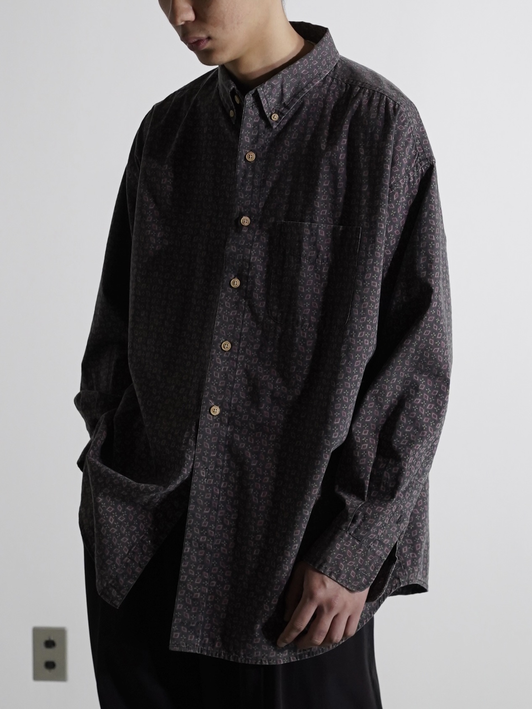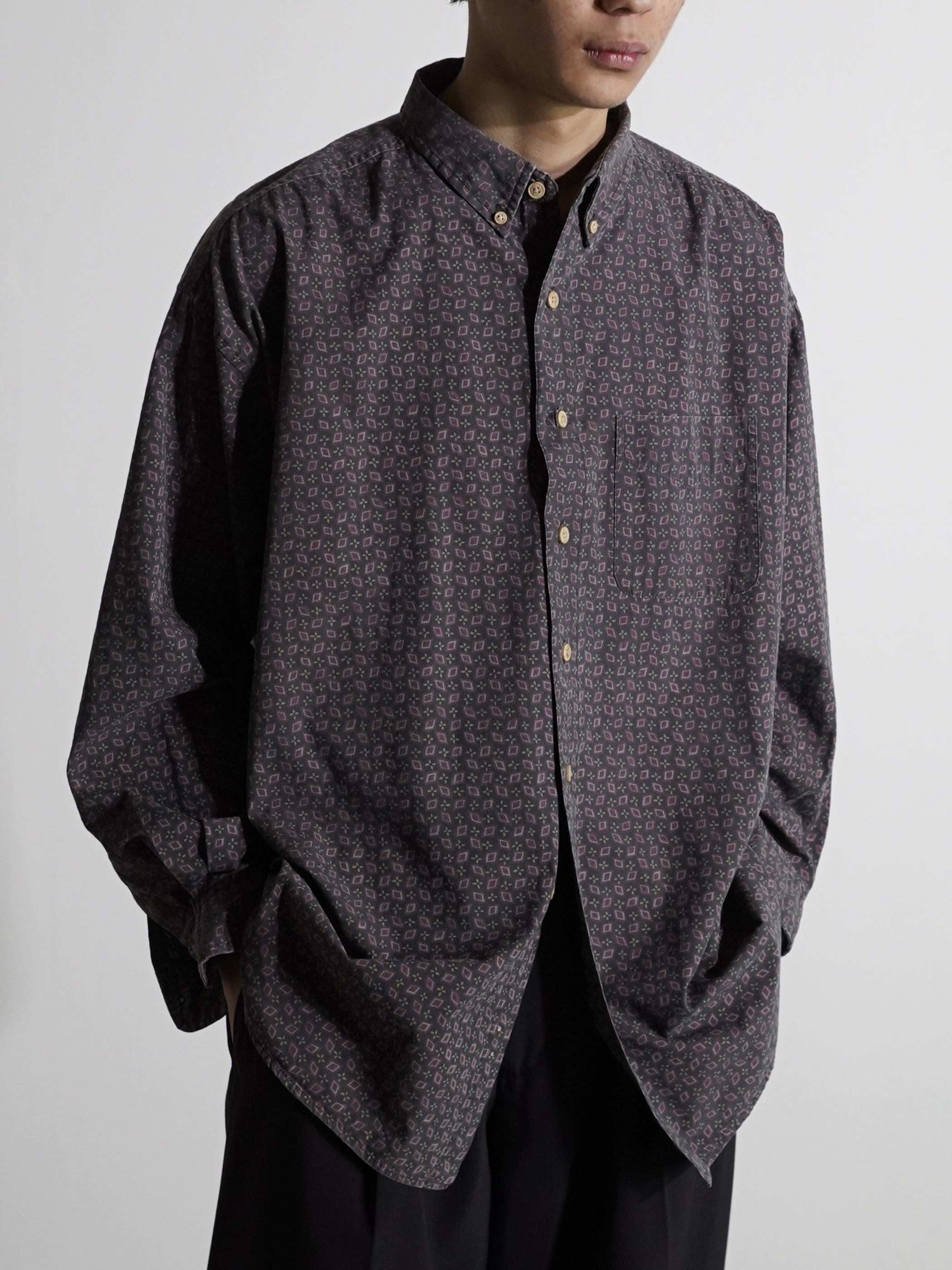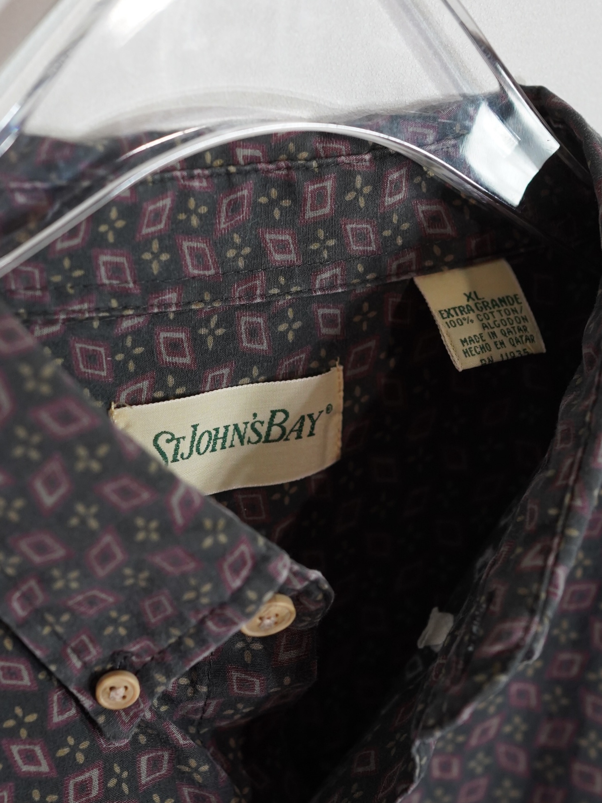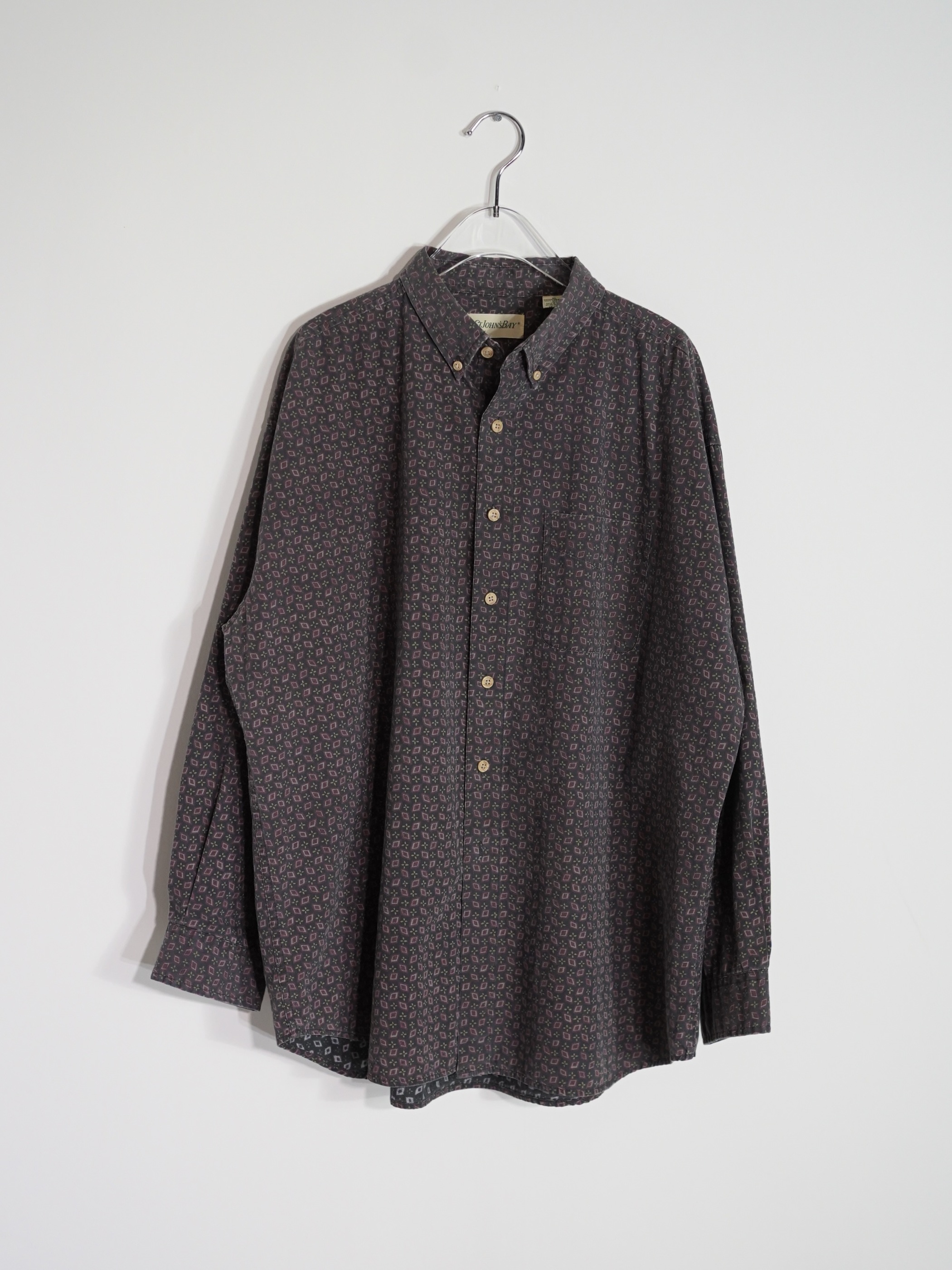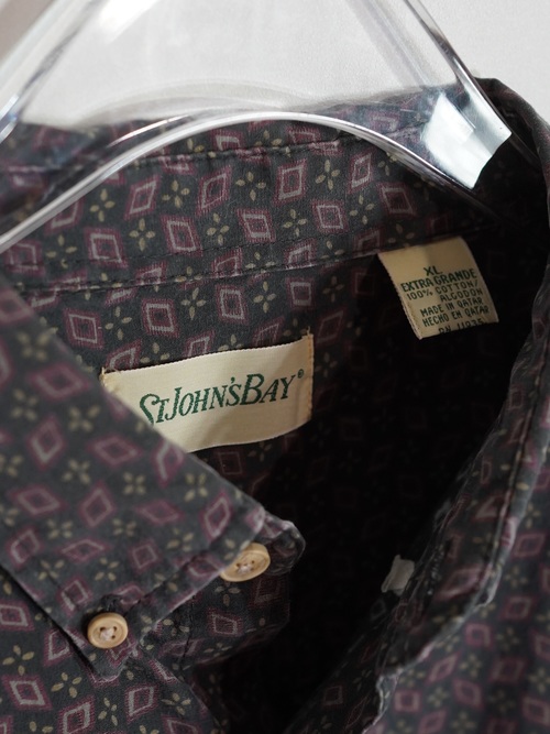 1990's~ ST.JOHN'S BAY cotton Geometric pattern B.D shirt