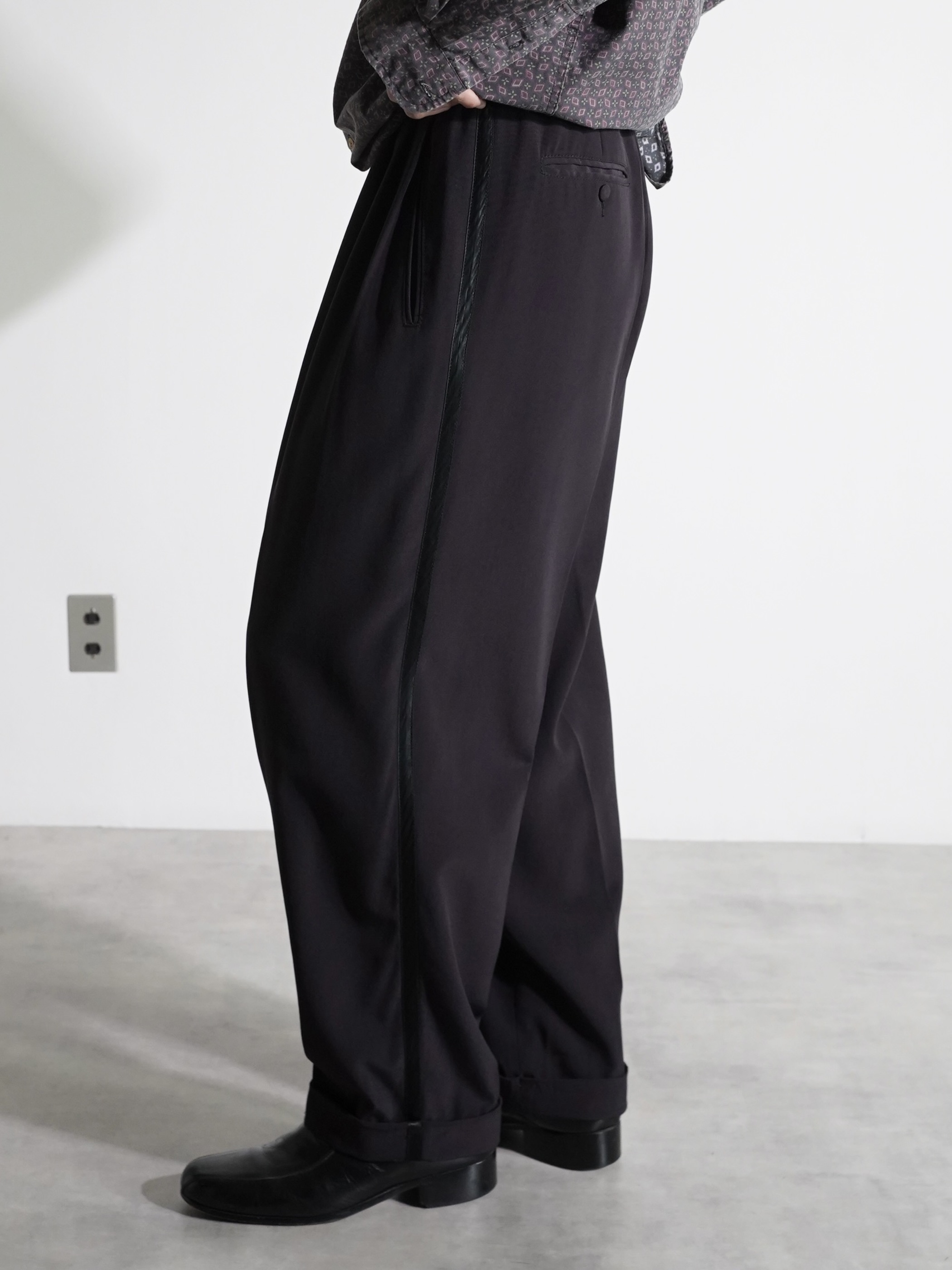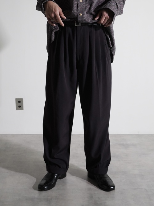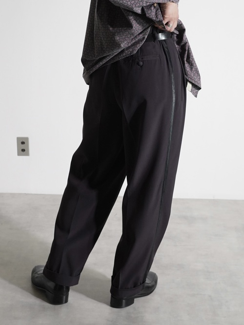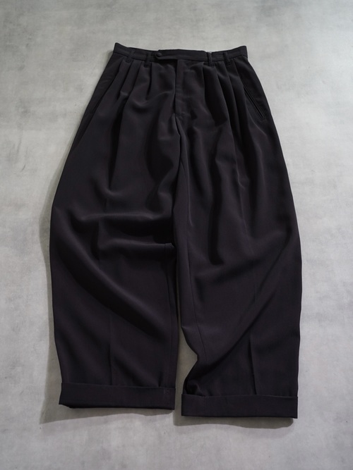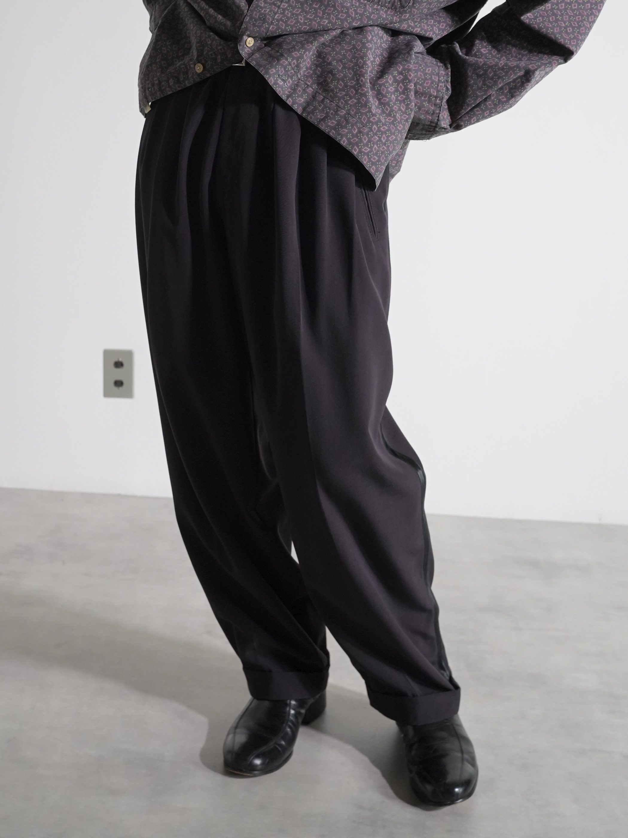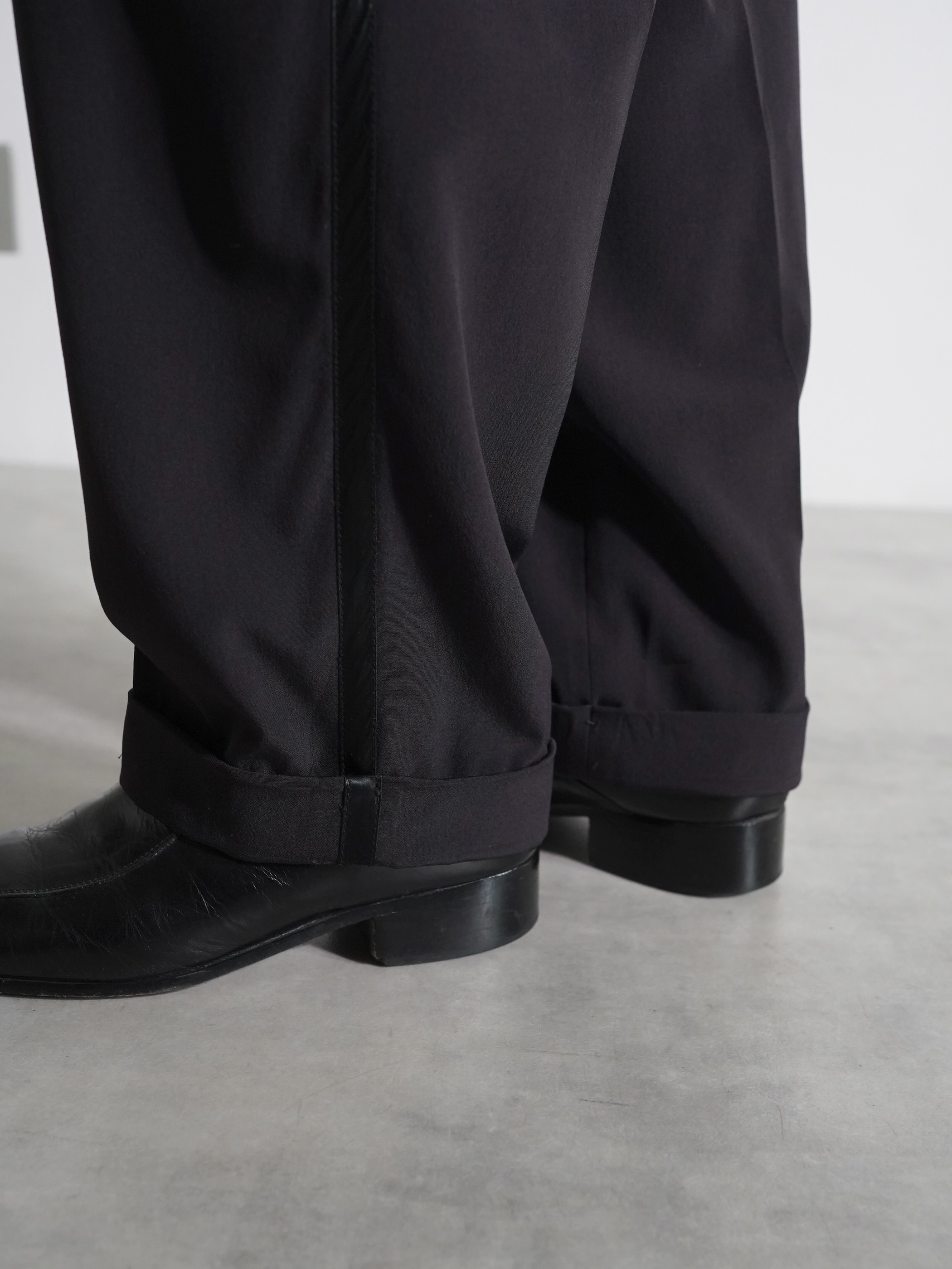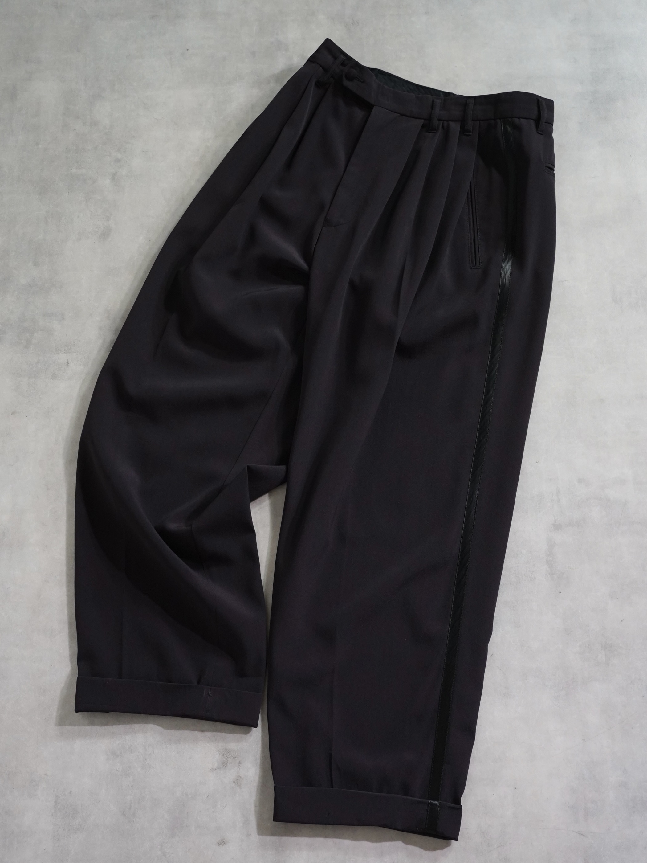 1990's SCALA euro poly wool 側章 serge soft drape 4-tuck trousers