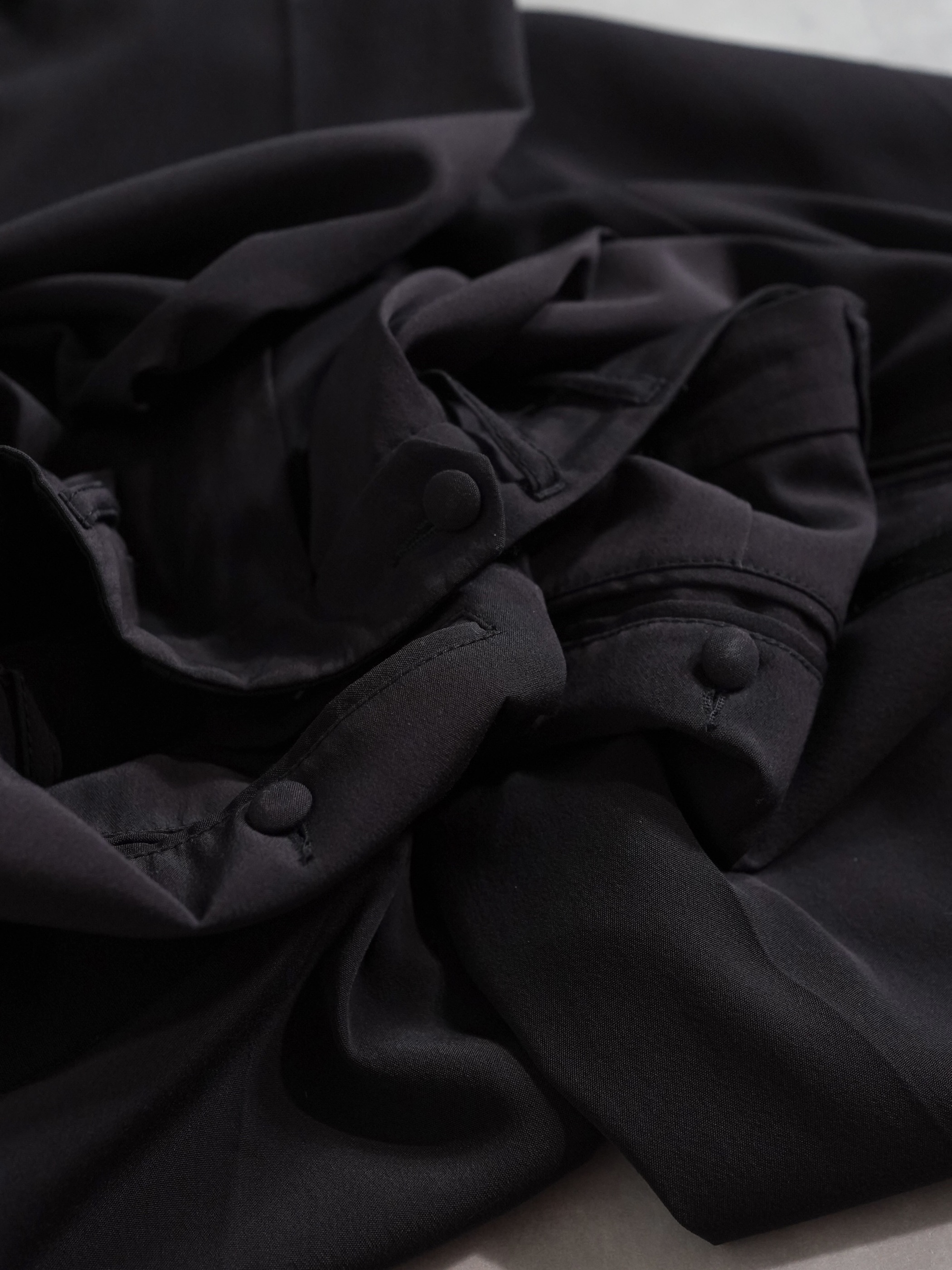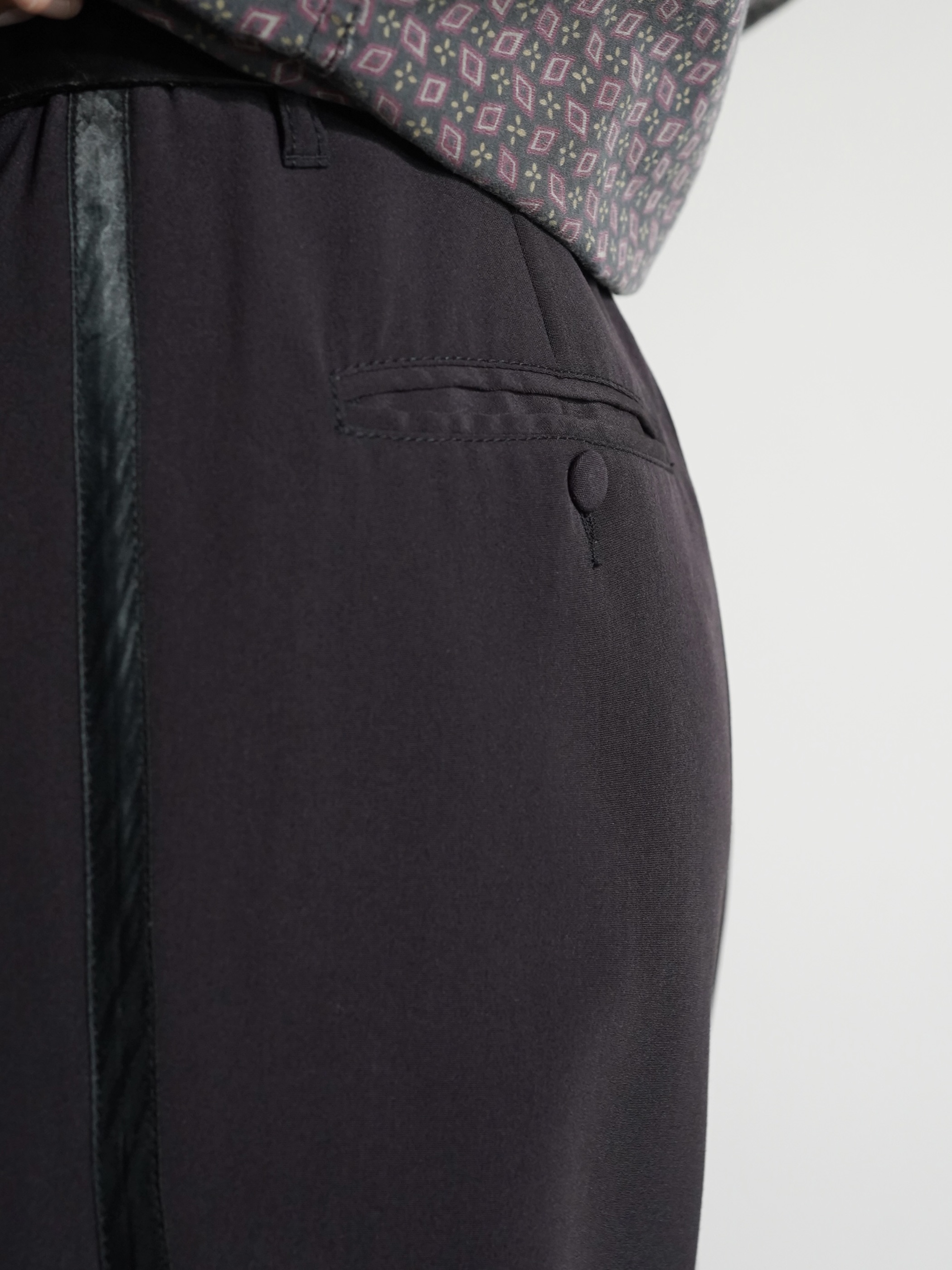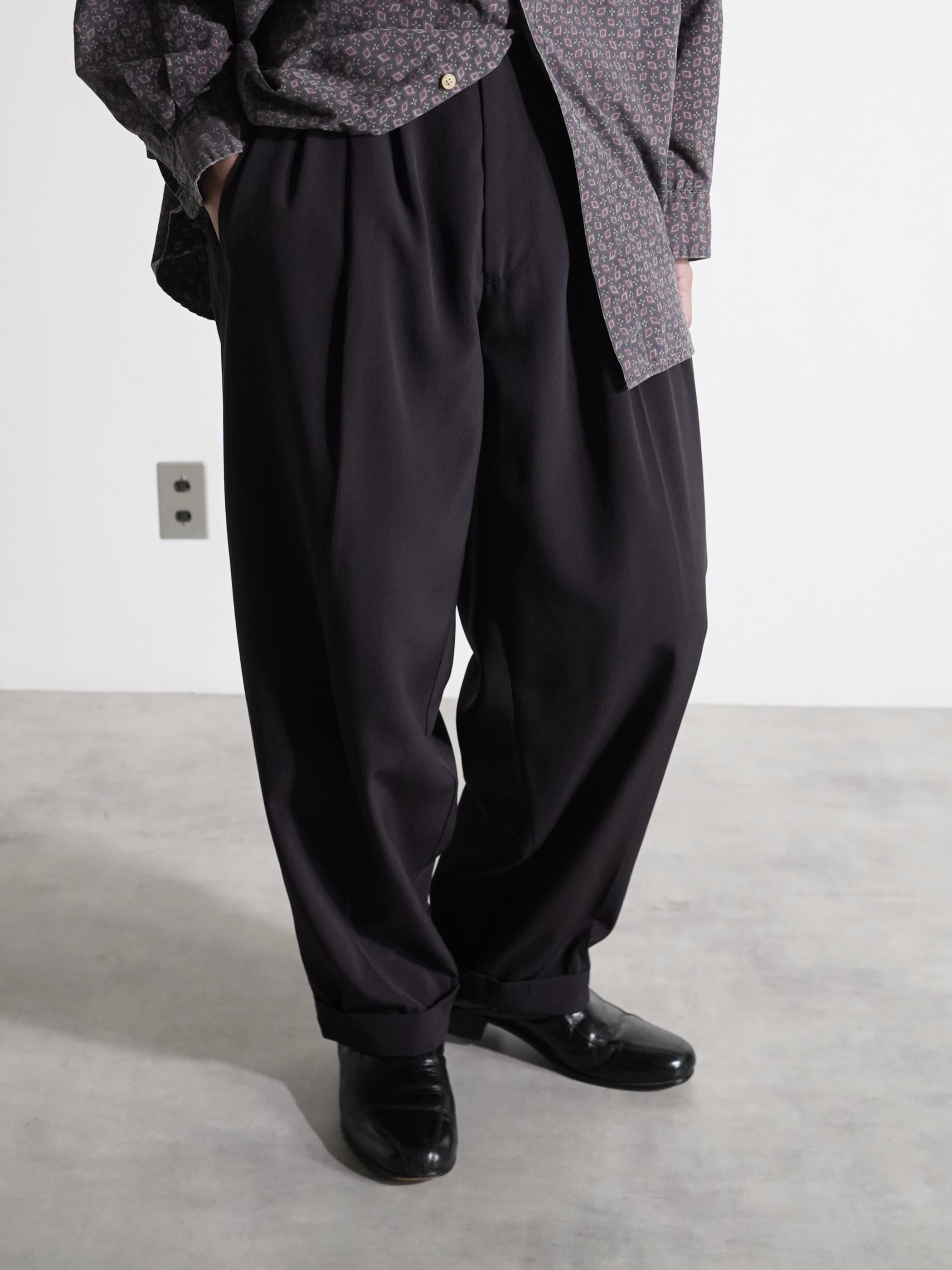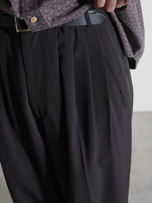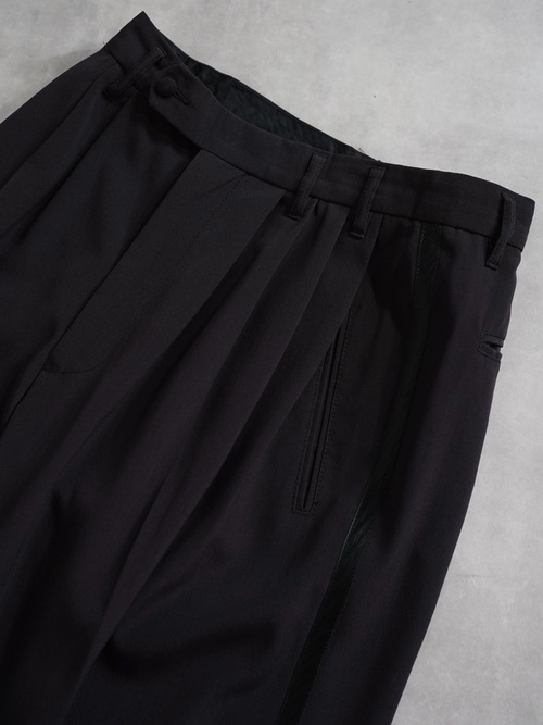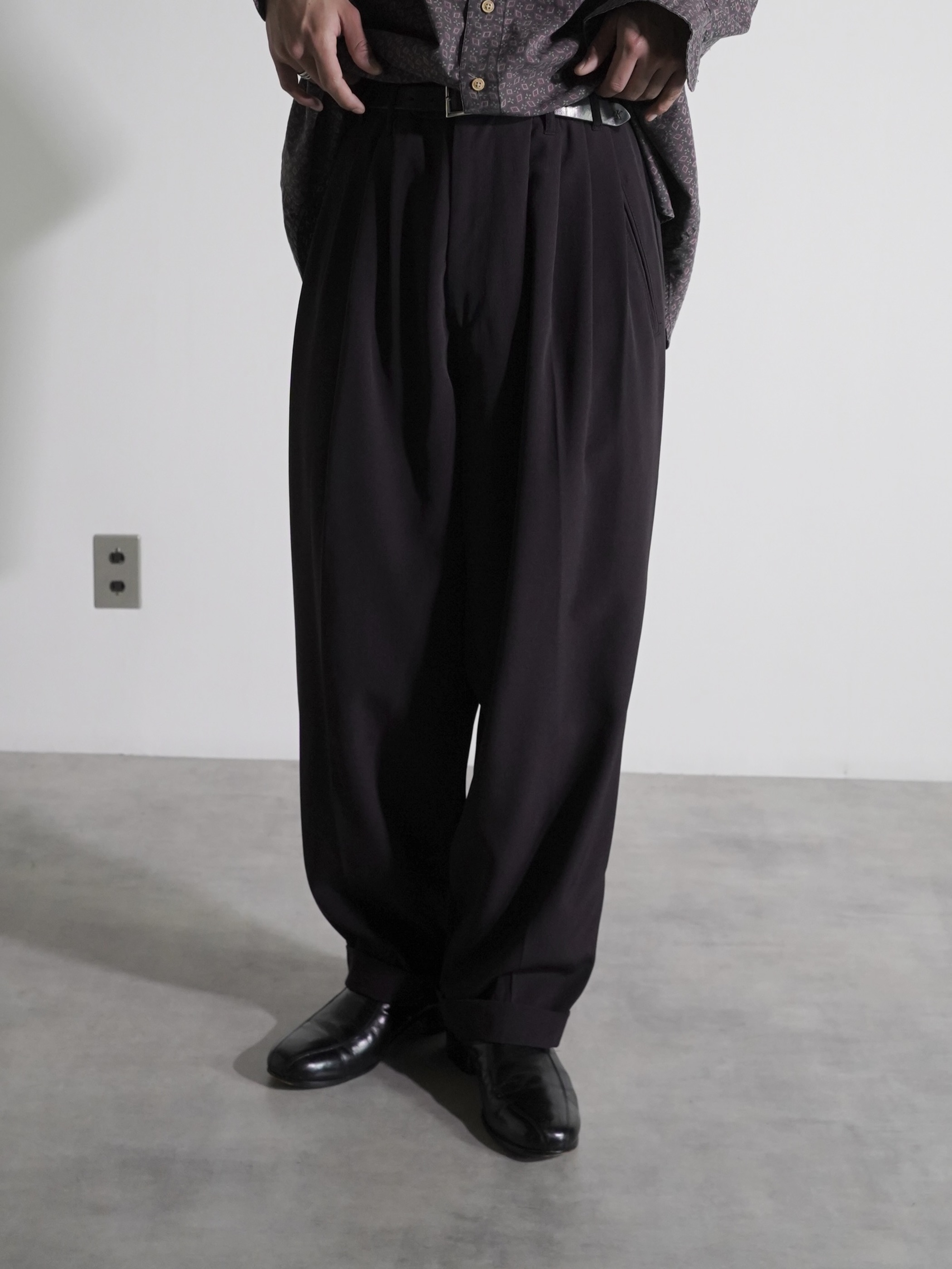 1990's SCALA euro poly wool 側章 serge soft drape 4-tuck trousers