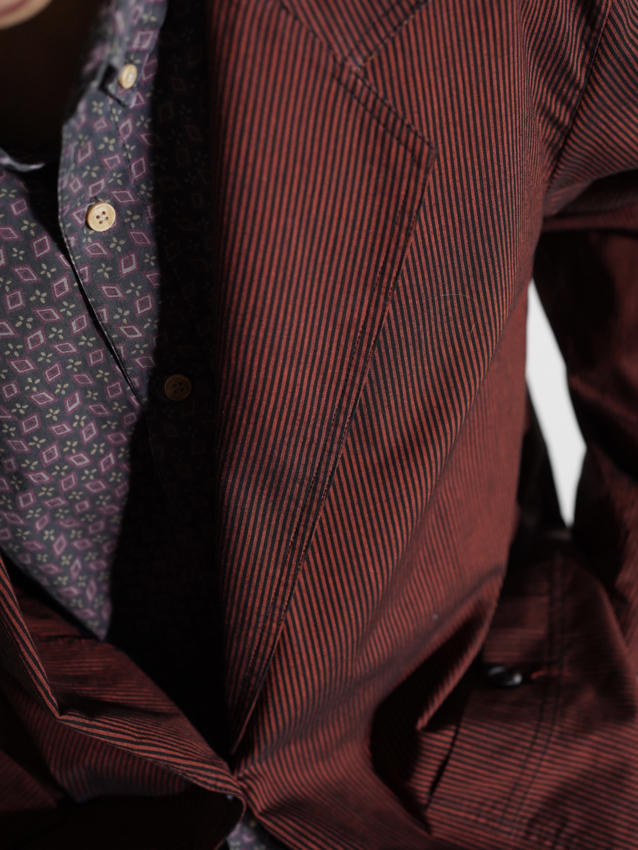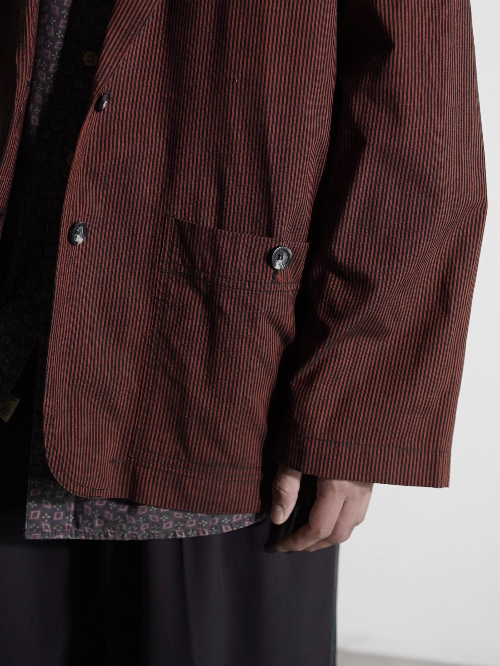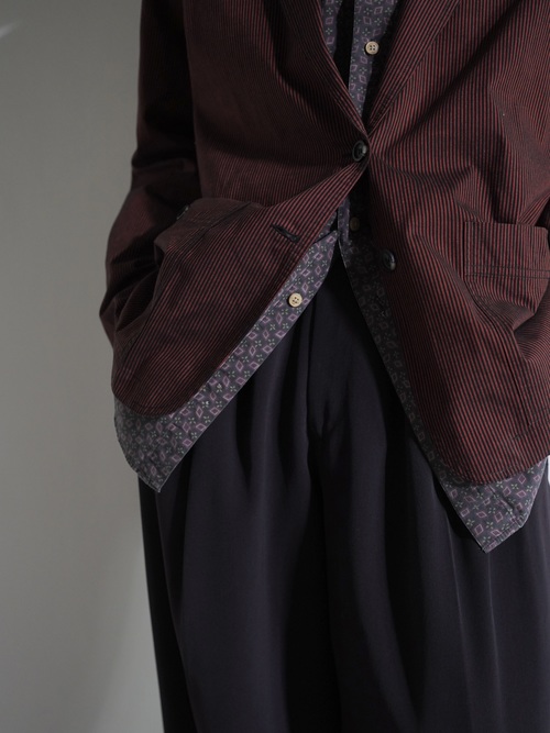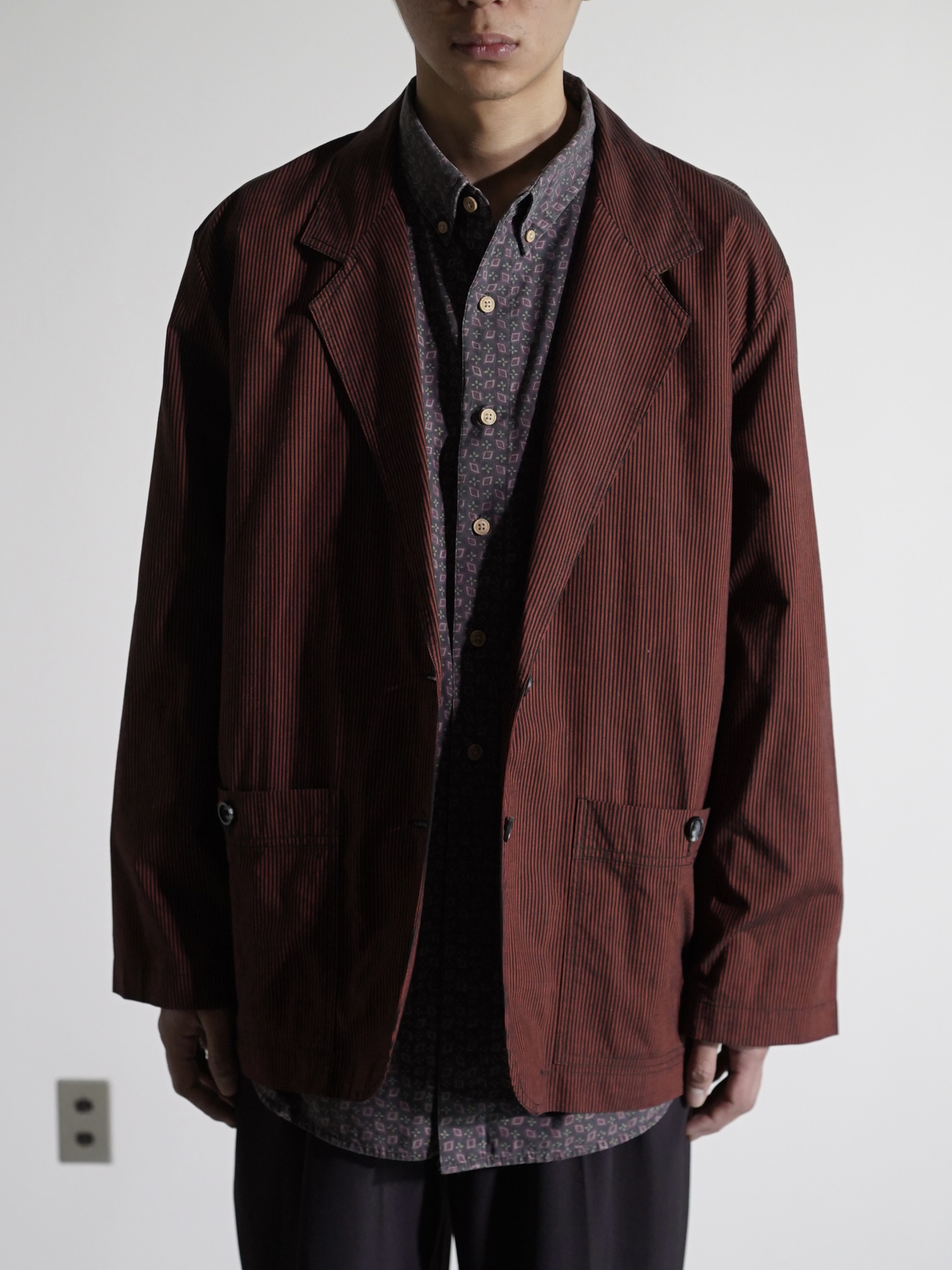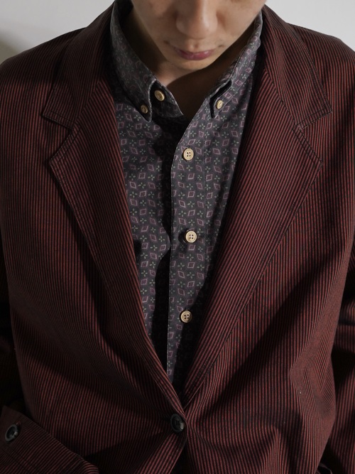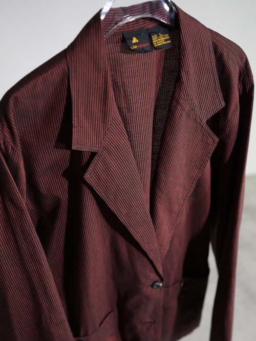 1990's Liz sport cotton shirt fabric stripe casual tailored jacket / Made in HONG KONG