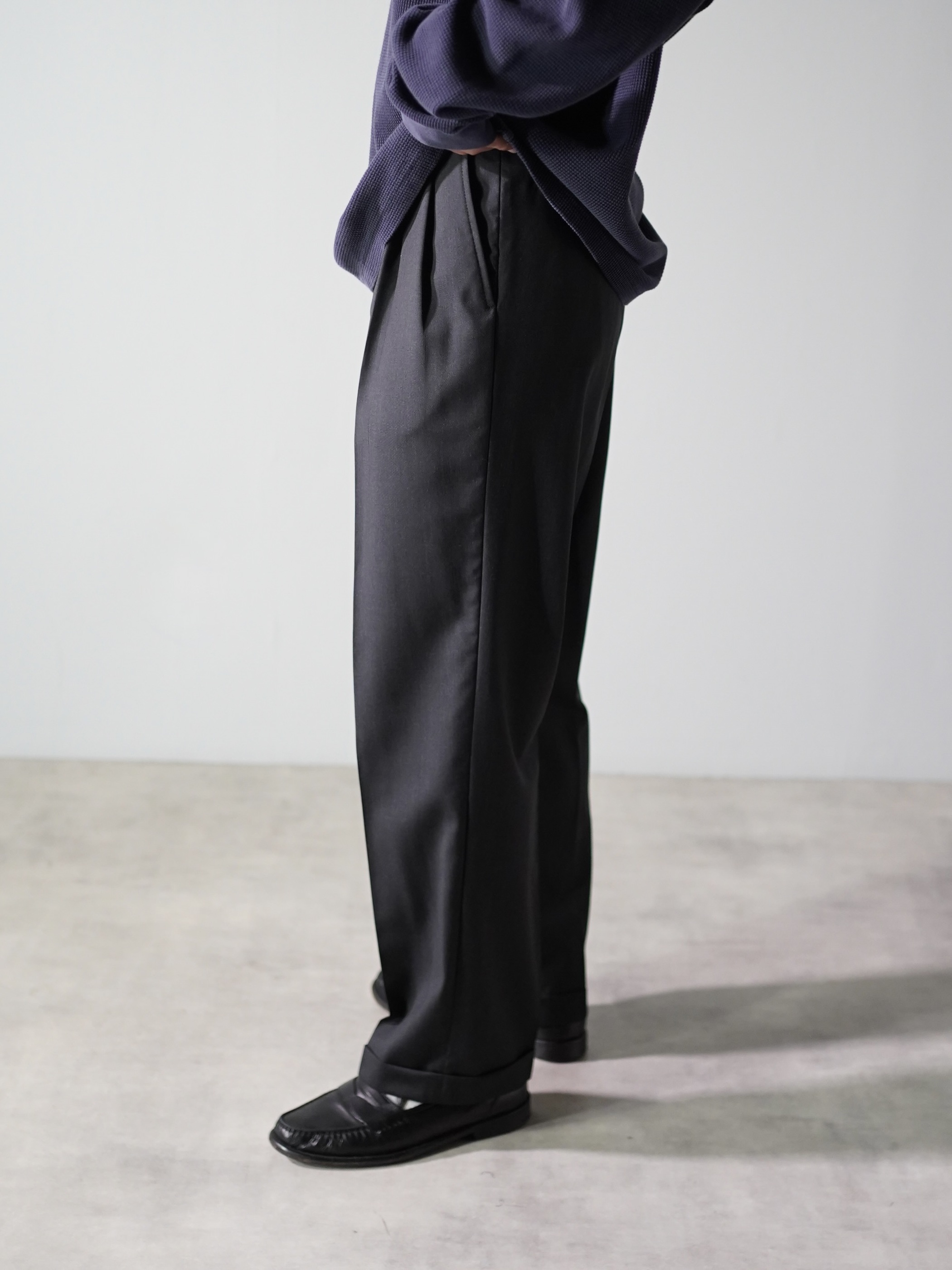 深めの2タックから自然に落ちる綺麗なシルエット。