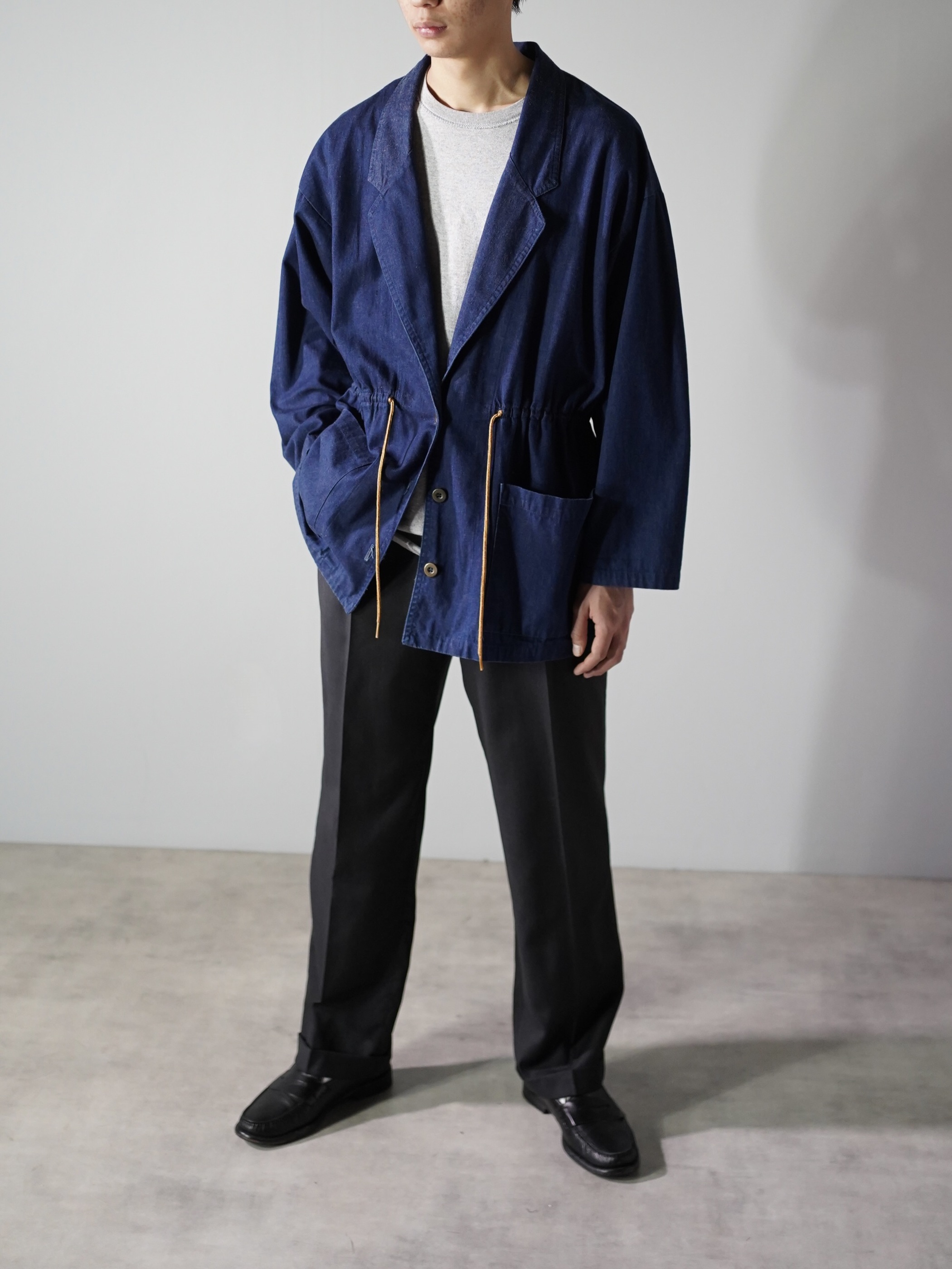 デニムでありながらワークジャケットの文脈には寄り過ぎず、どこか都会的で、曖昧なバランス。