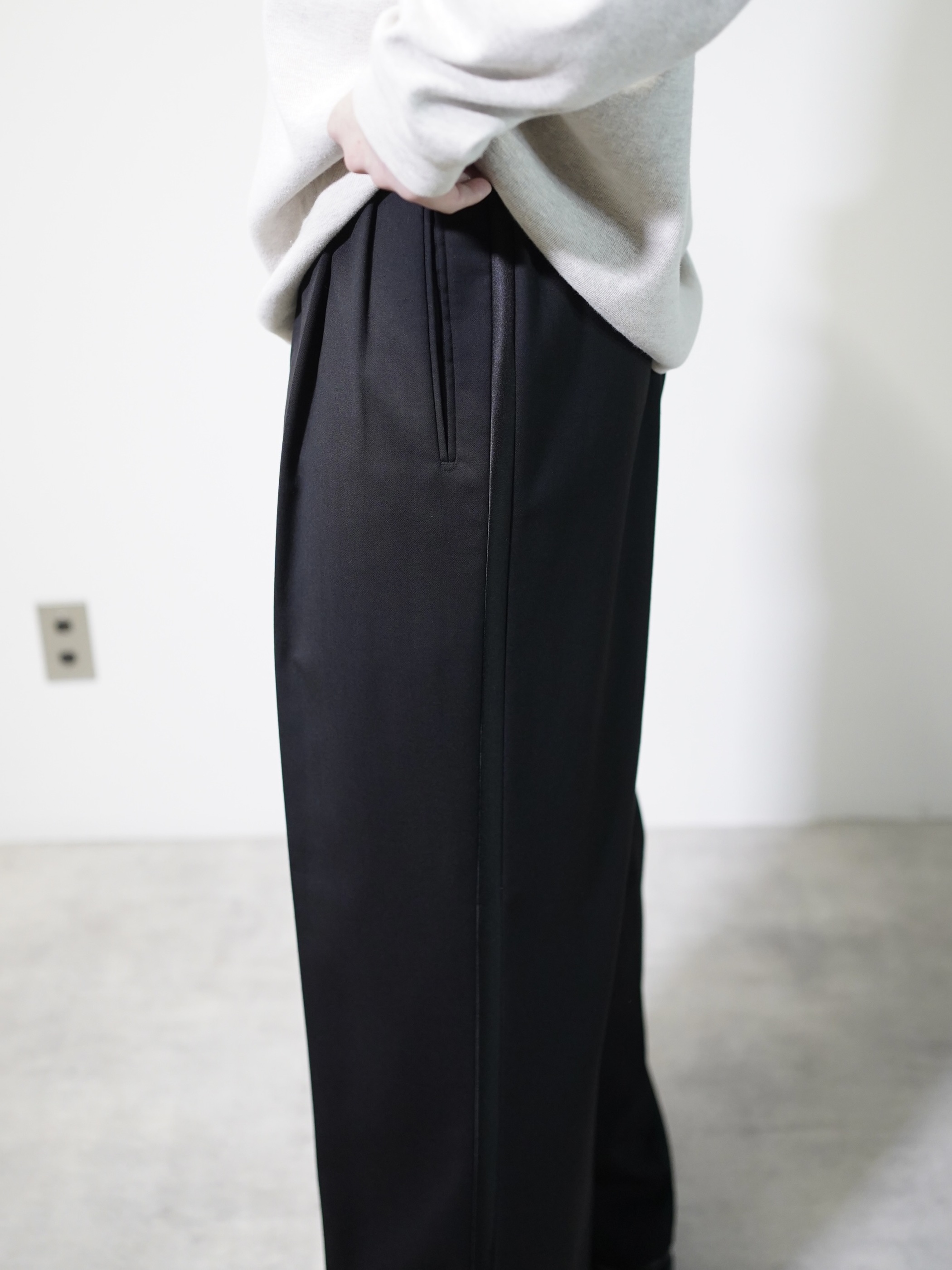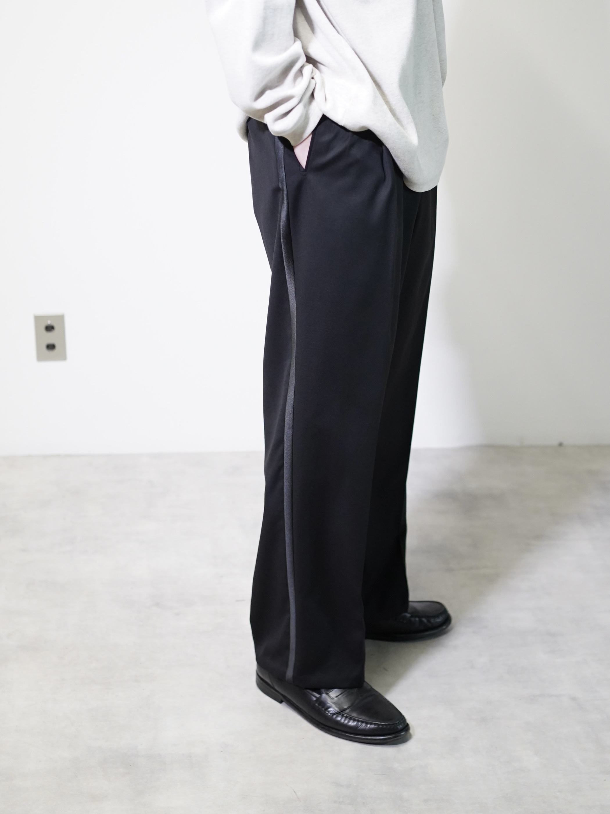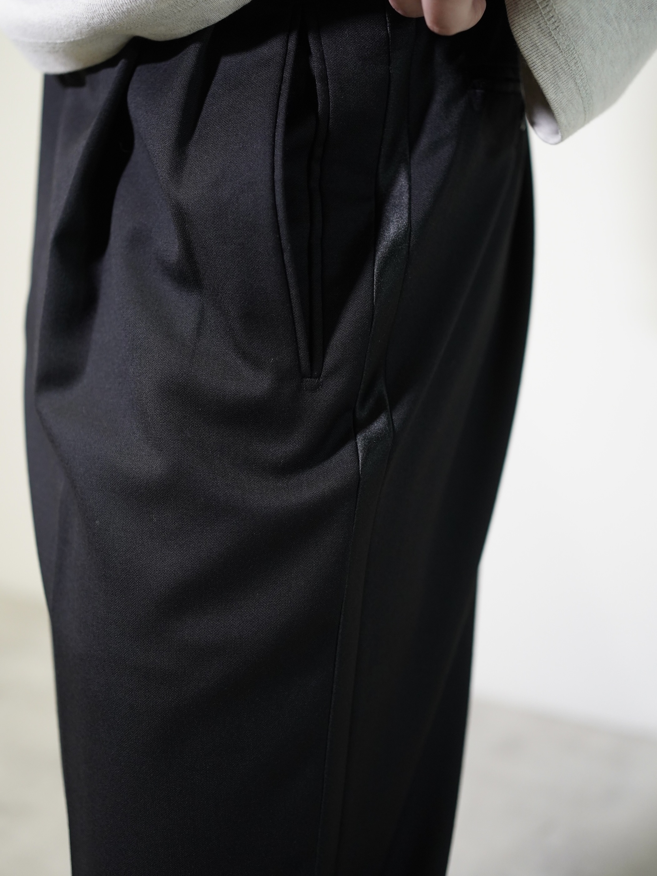ブラックサテンラインと、ワイドシルエットが良いです