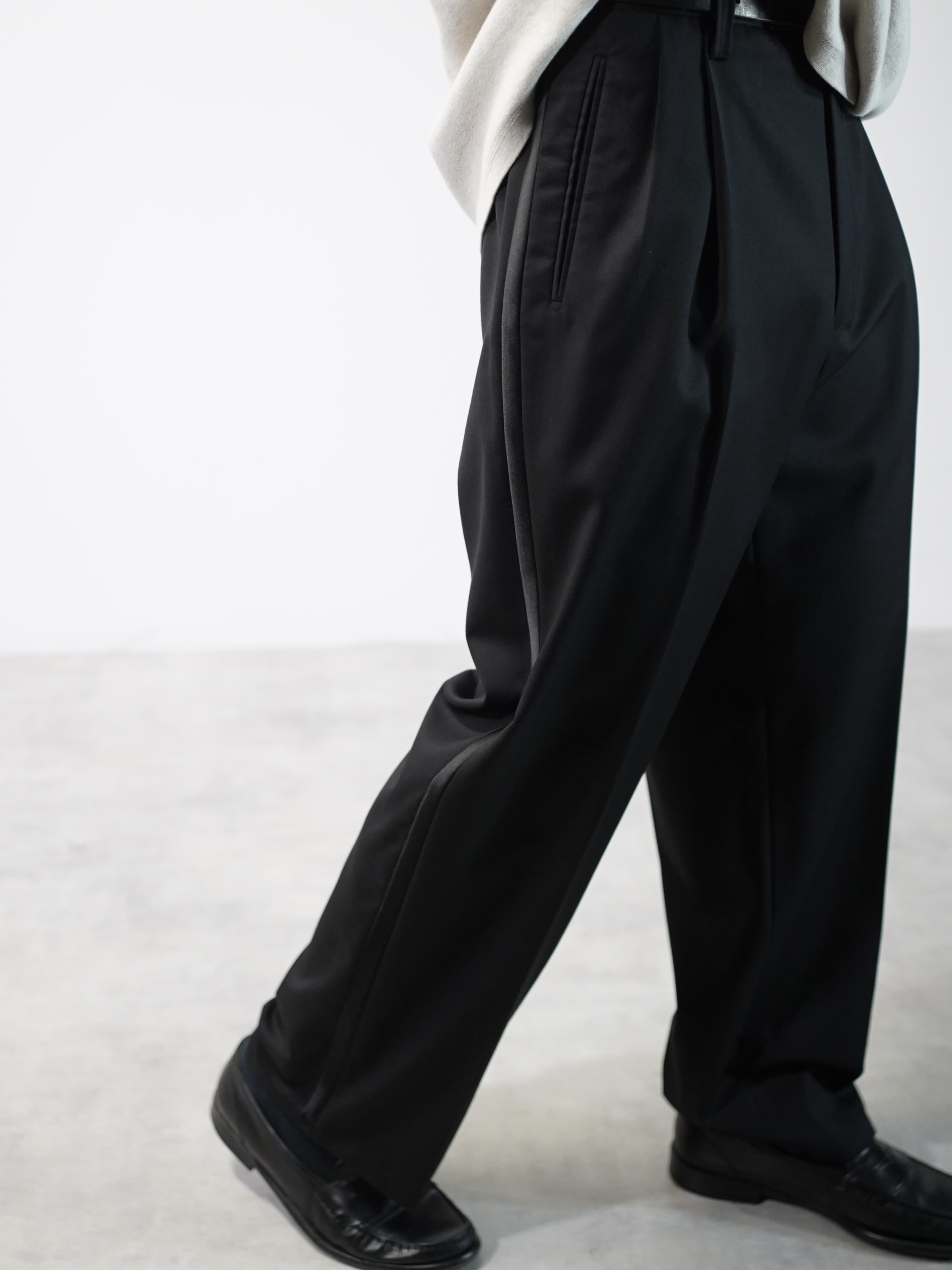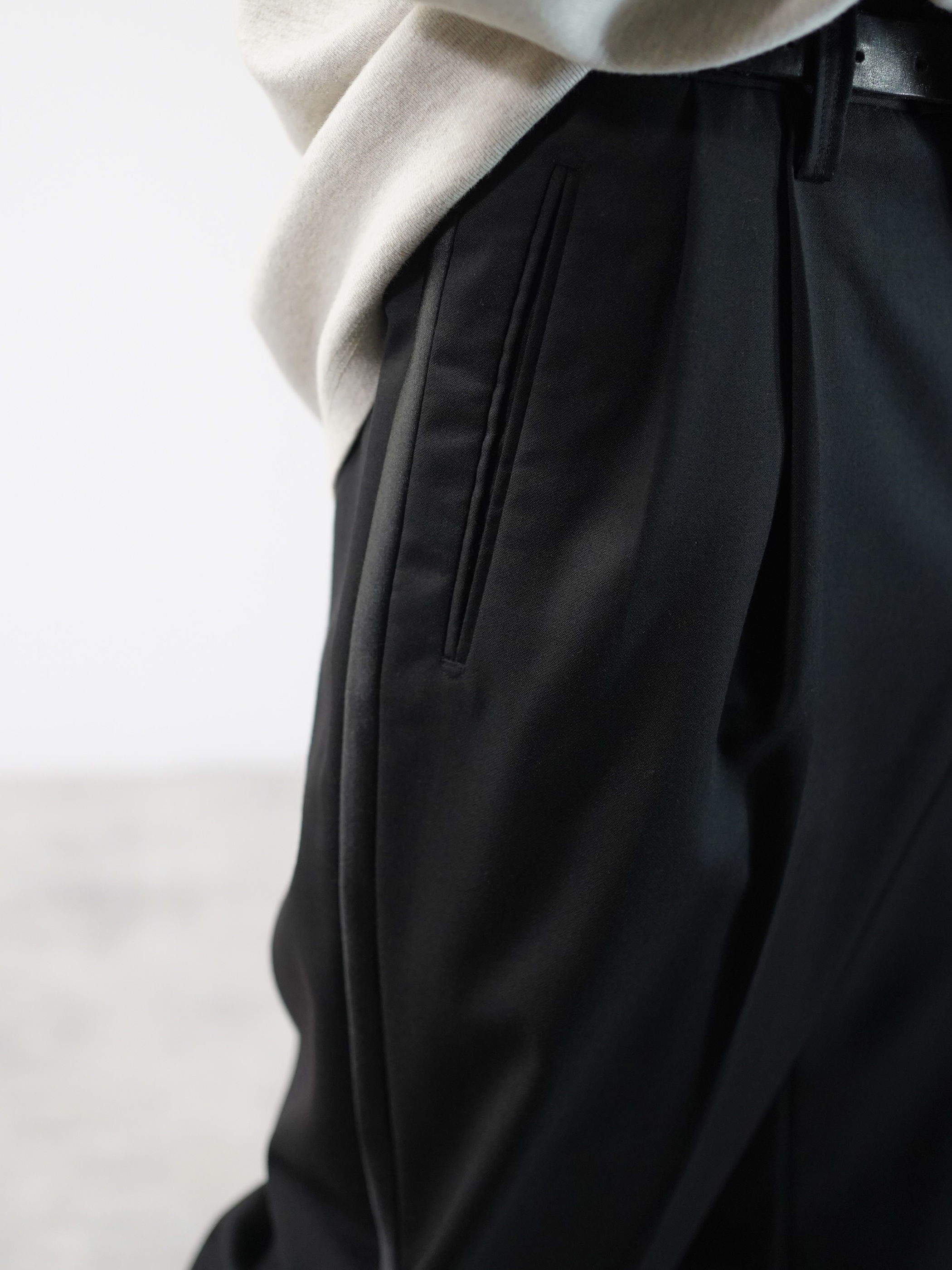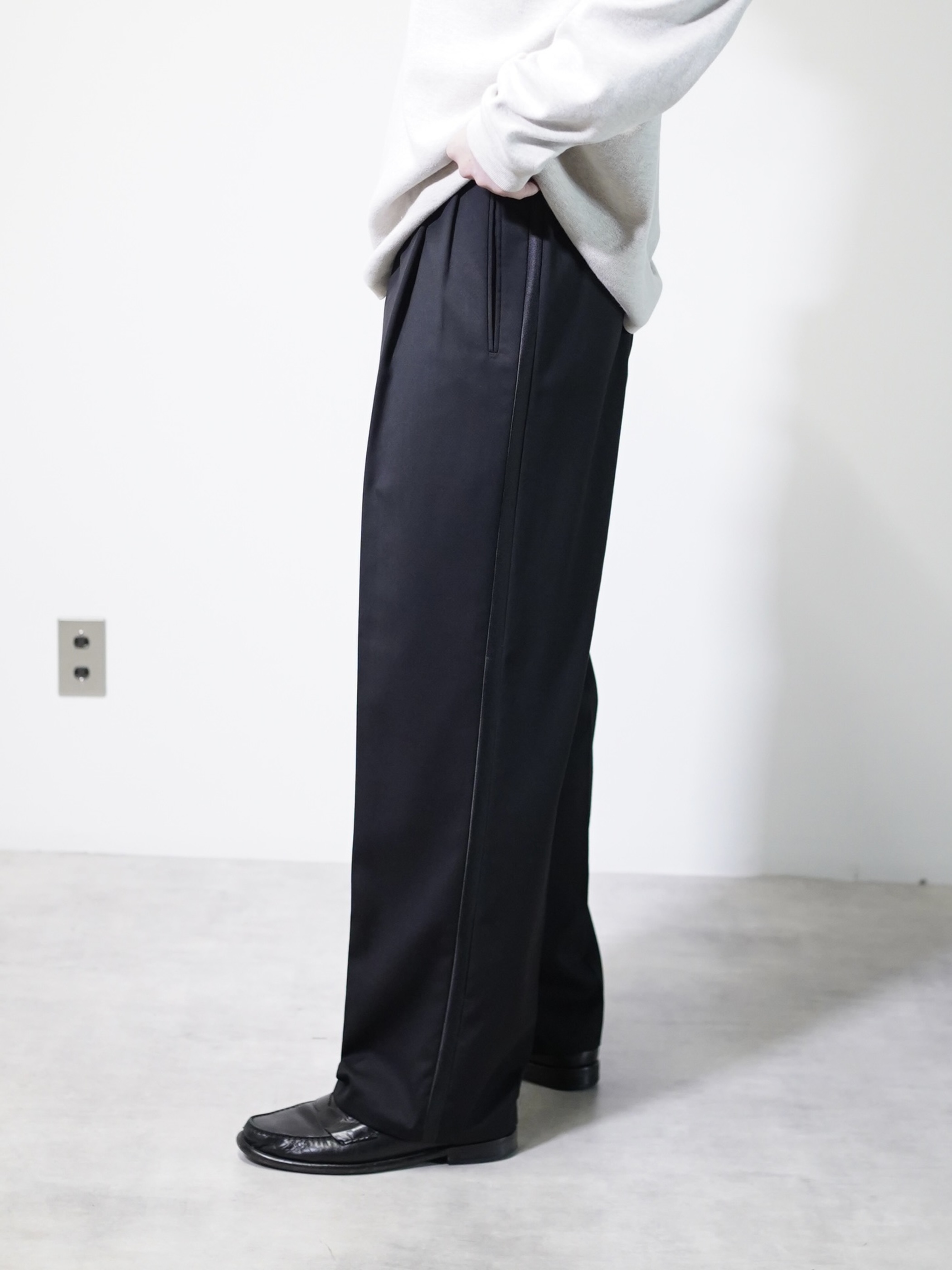 ブラックサテンラインと、ワイドシルエットが良いです