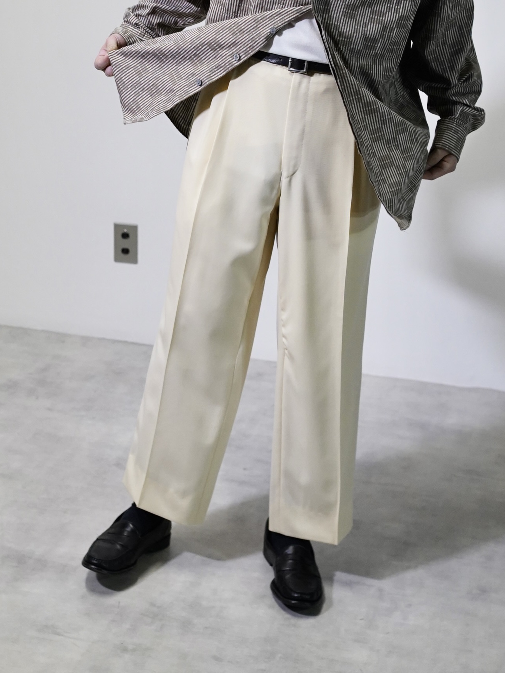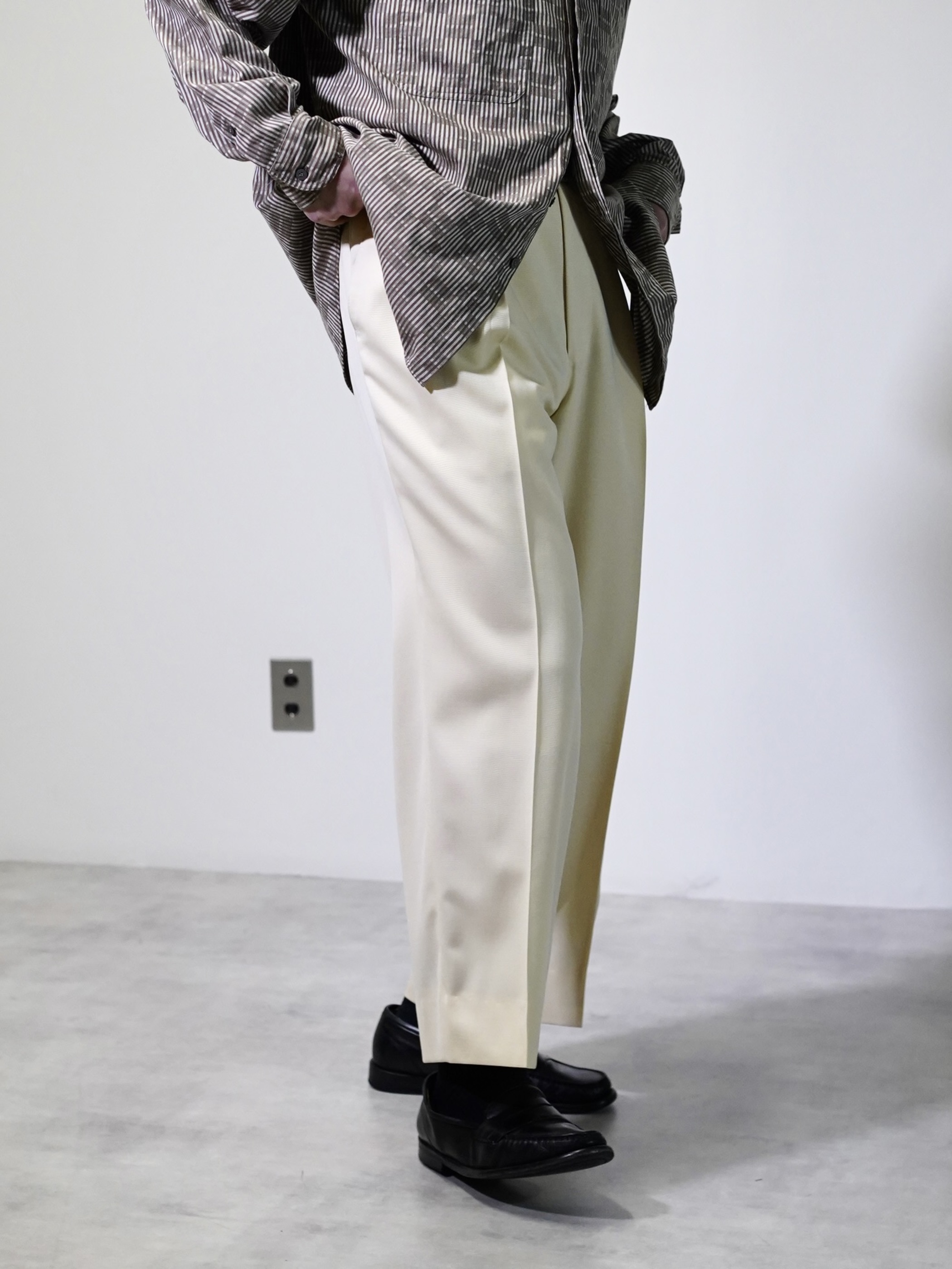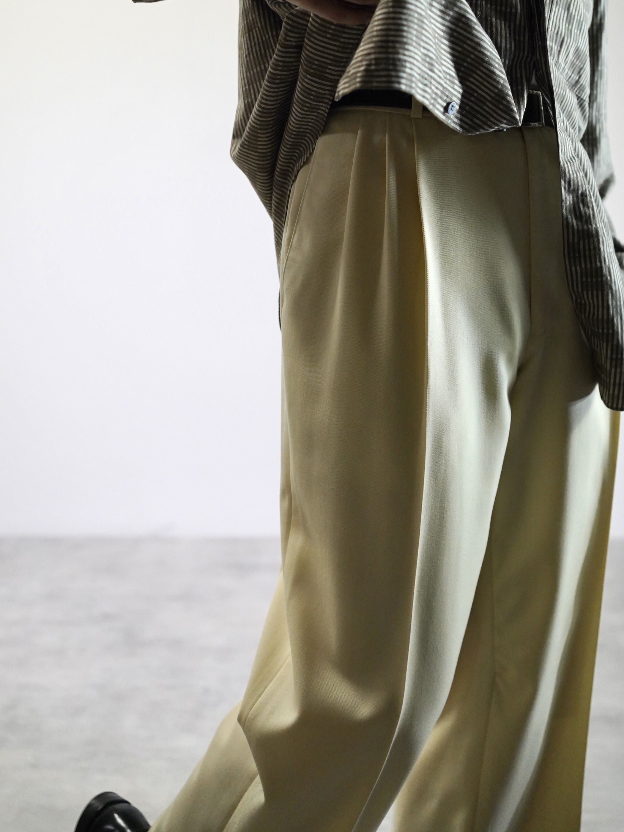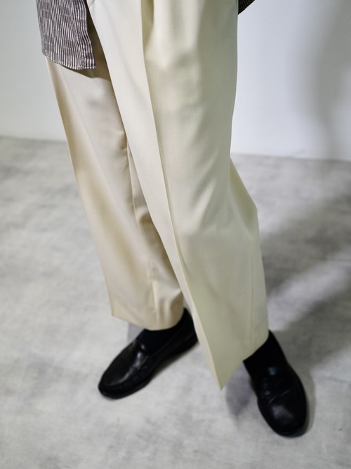 ゼニア、ロロ・ピアーナなどの最高峰の服地メーカーやラグジュアリーブランドが生まれたビエラの老舗ミルから、美しい生地目とお色味の3タックスラックス。