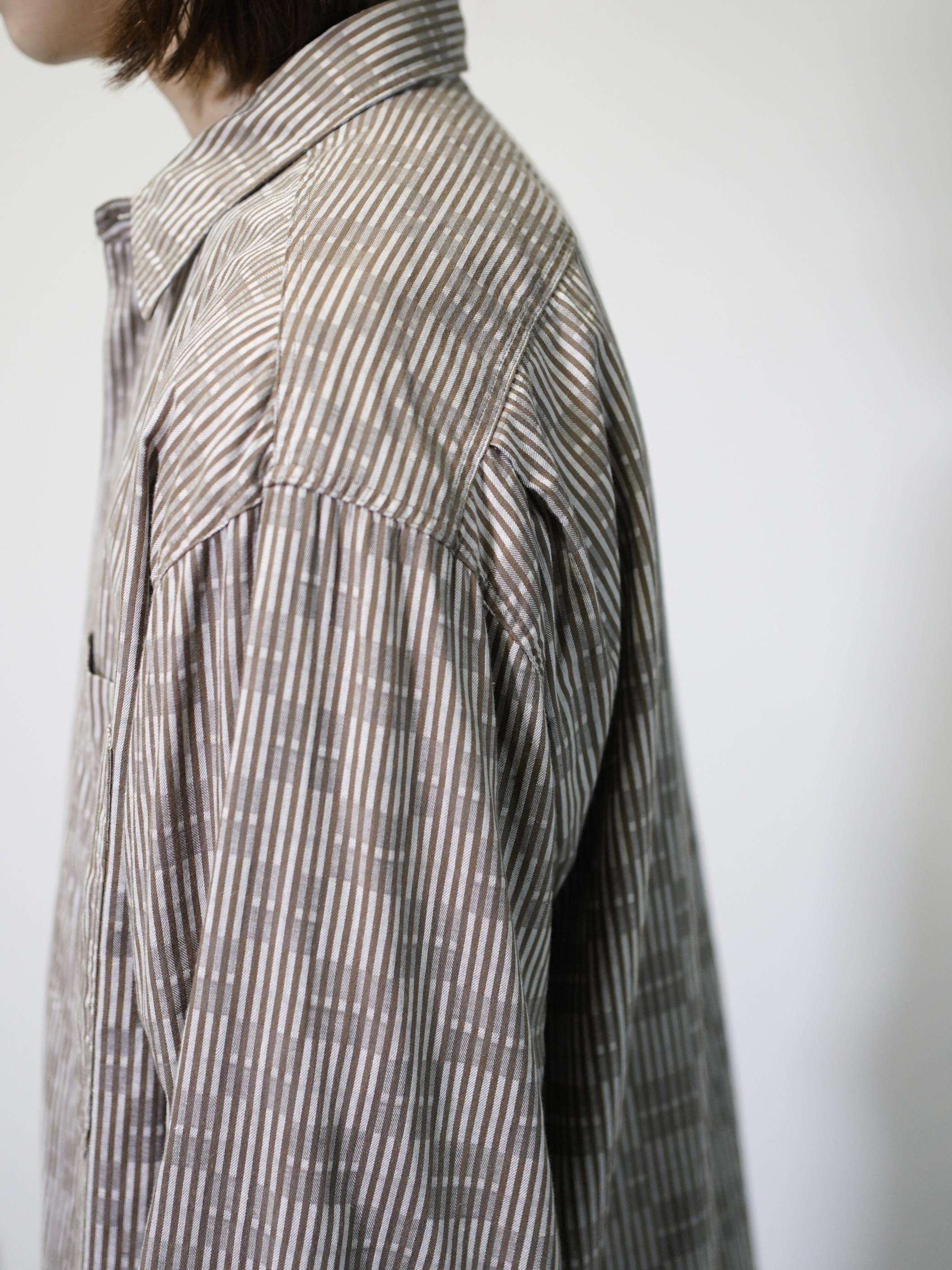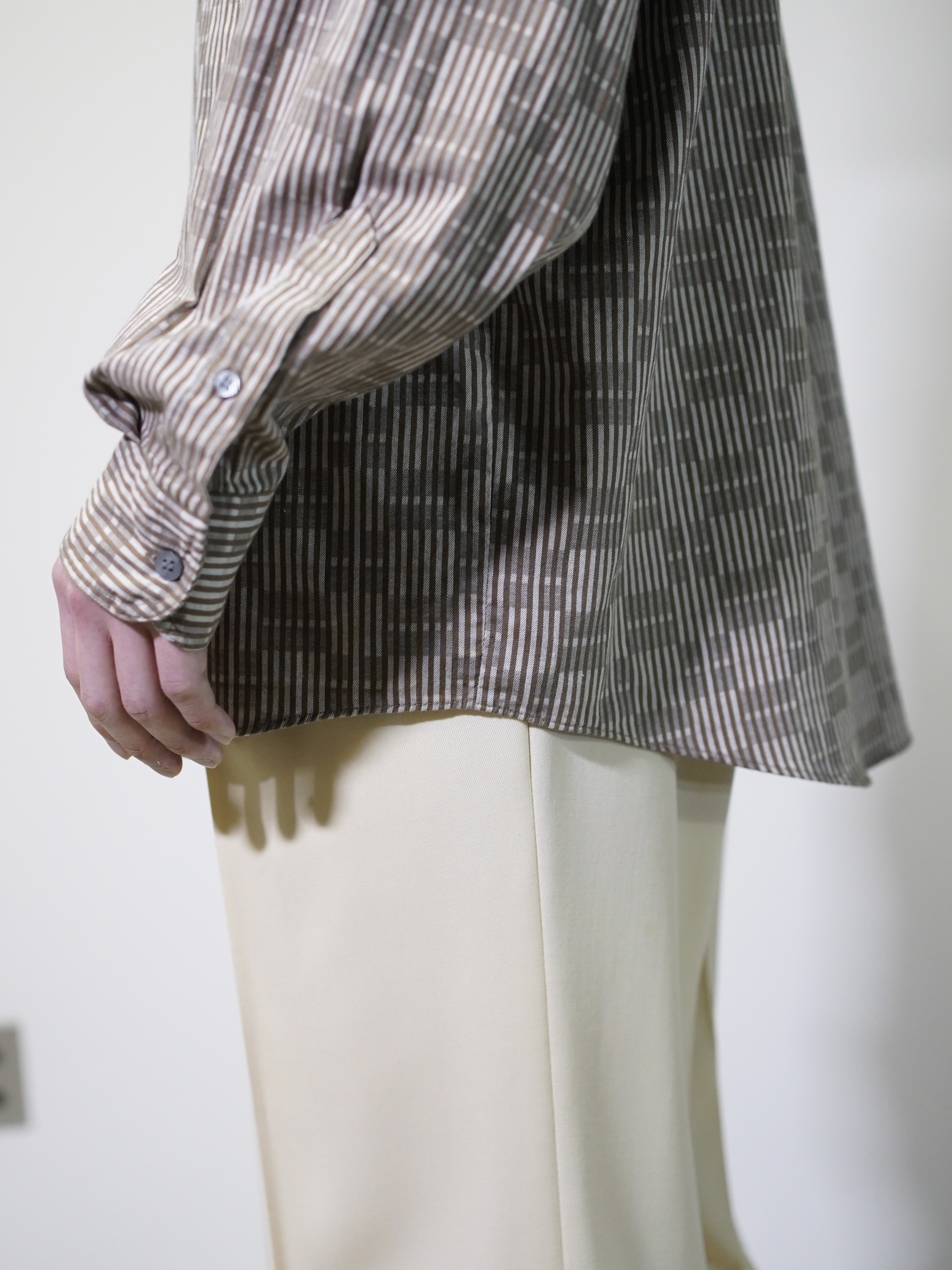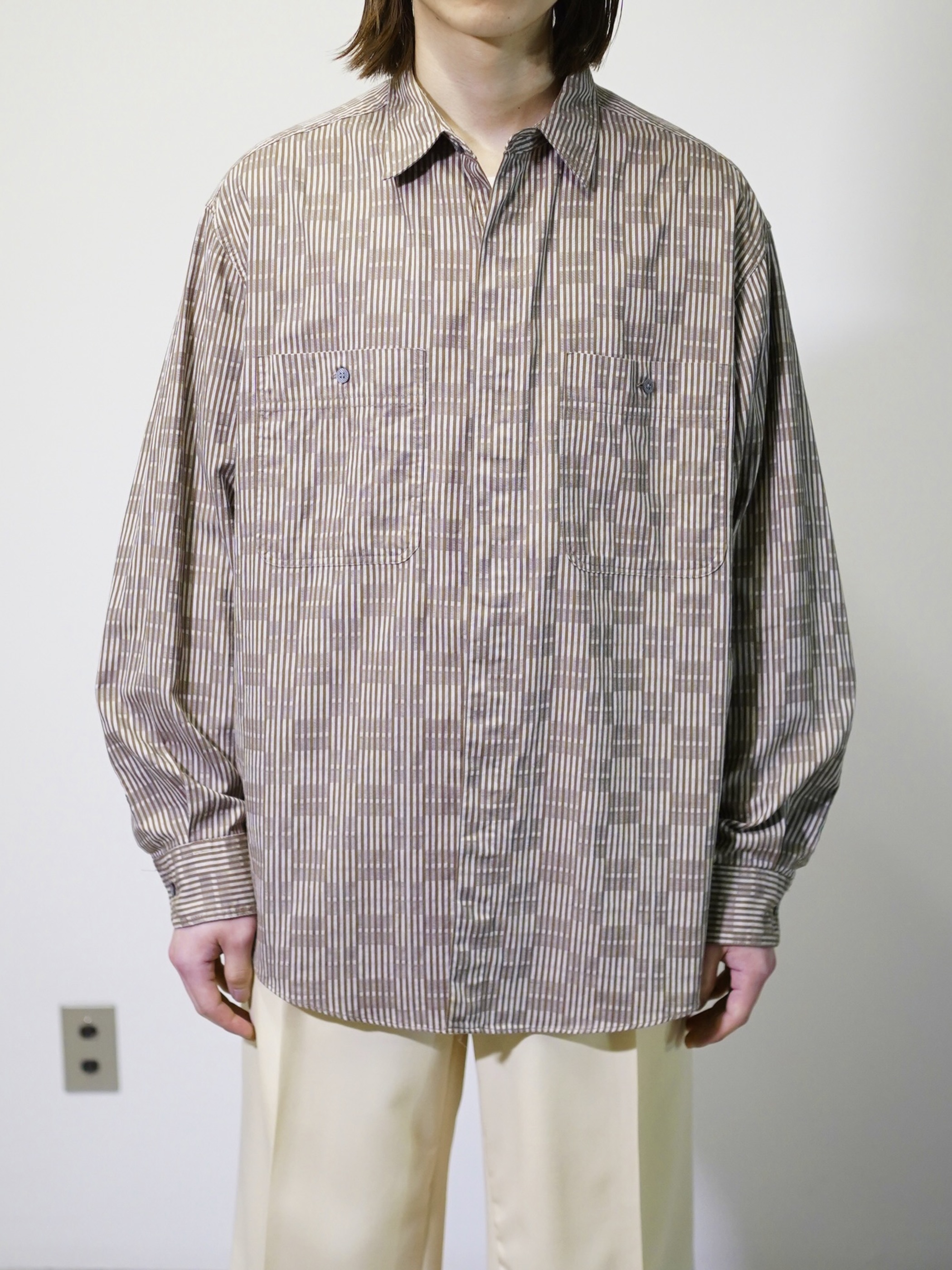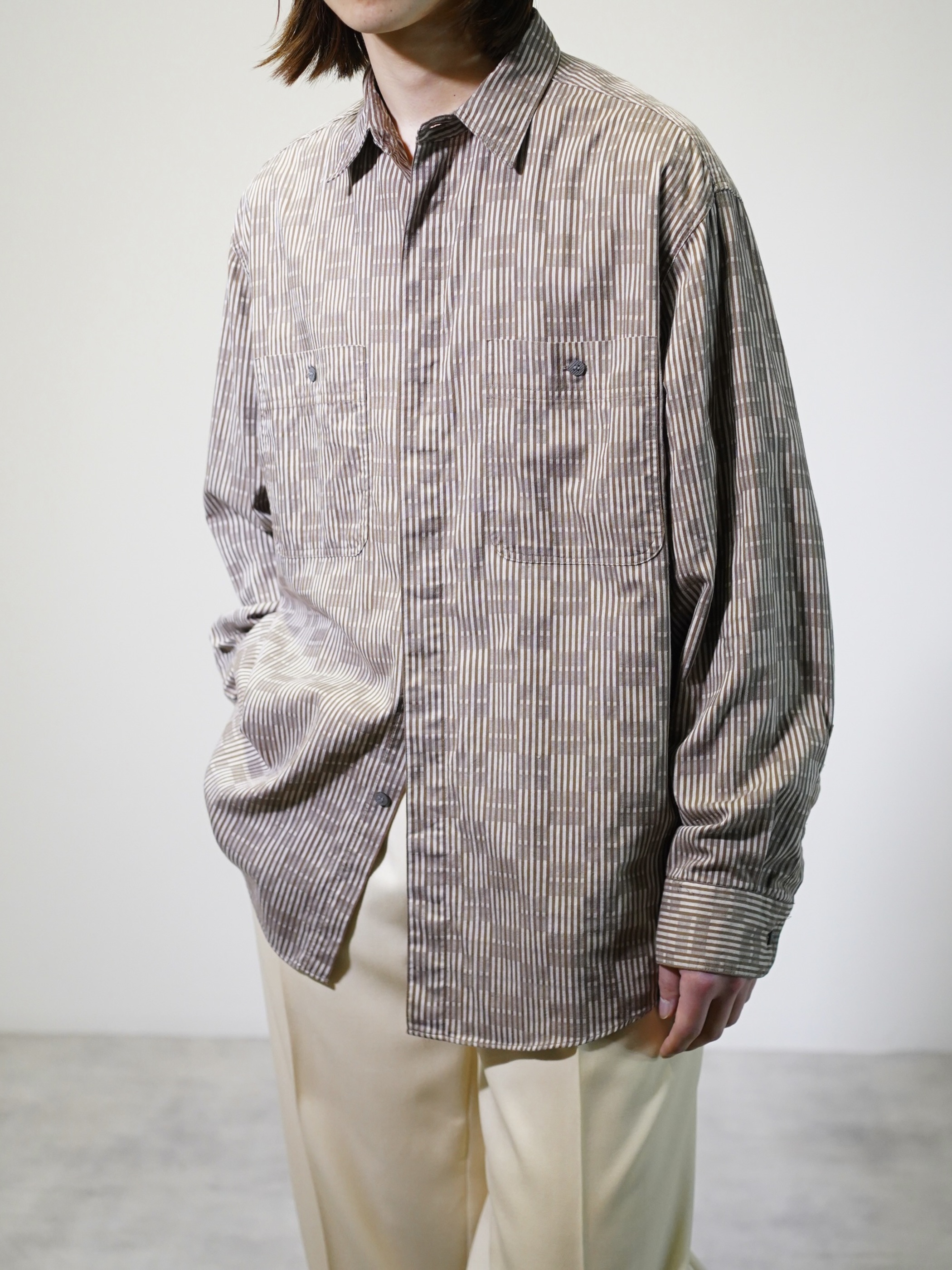煤けたようなブラウンベースで纏めた品のある一着