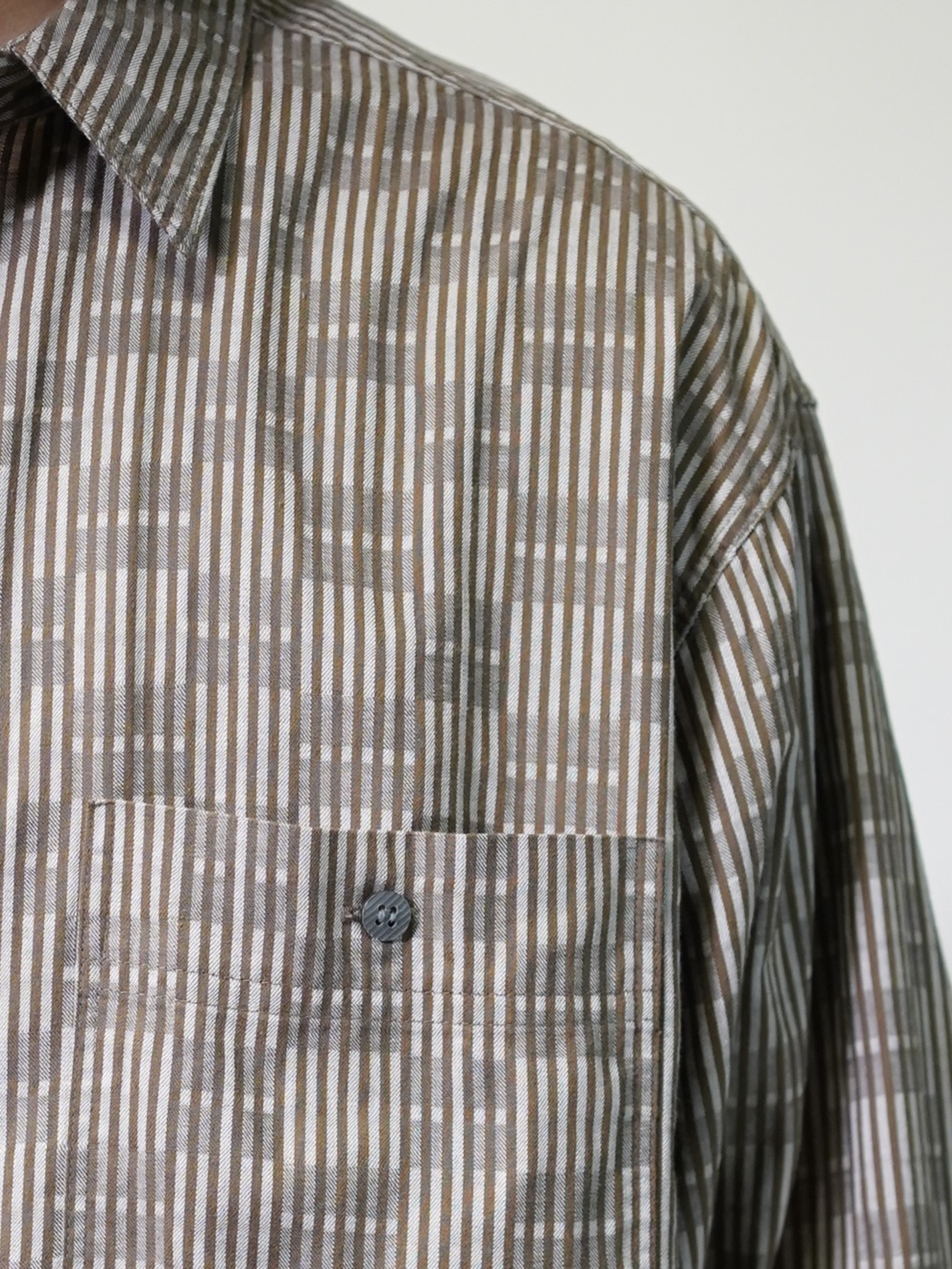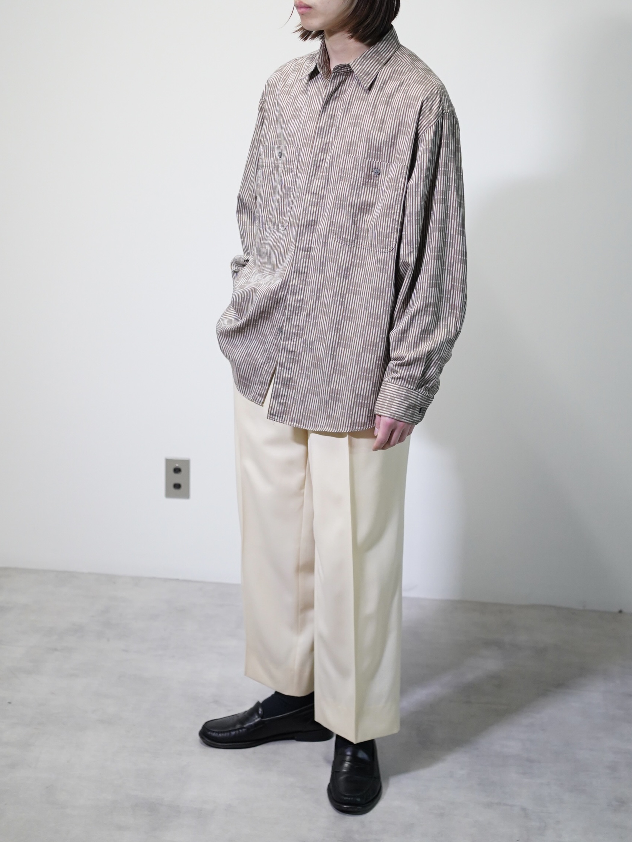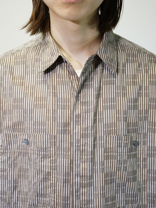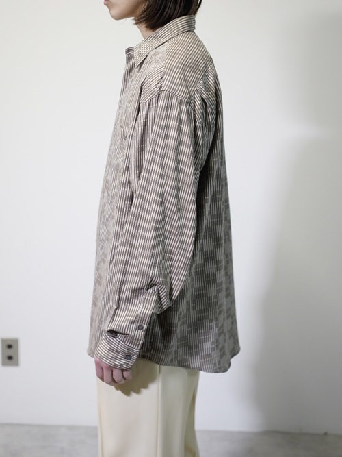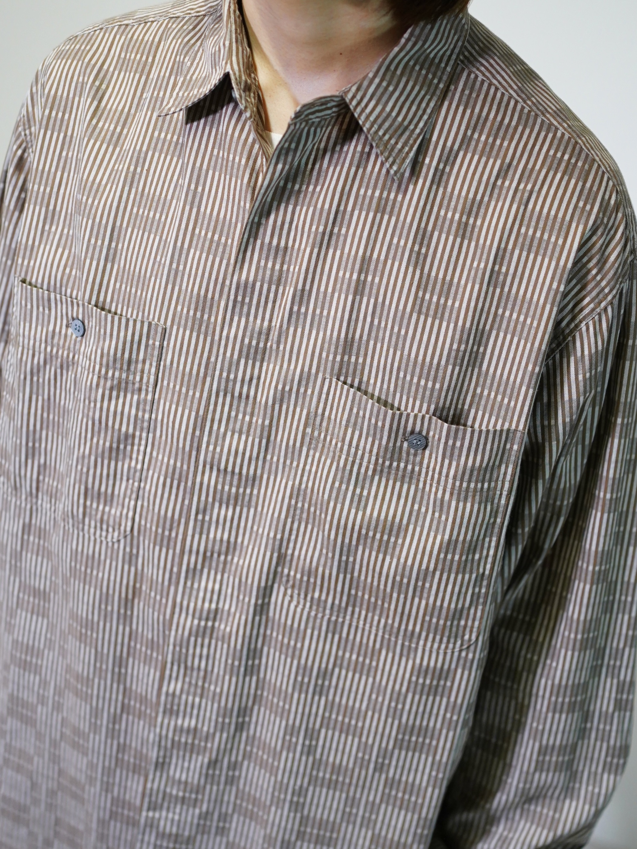 煤けたようなブラウンベースで纏めた品のある一着