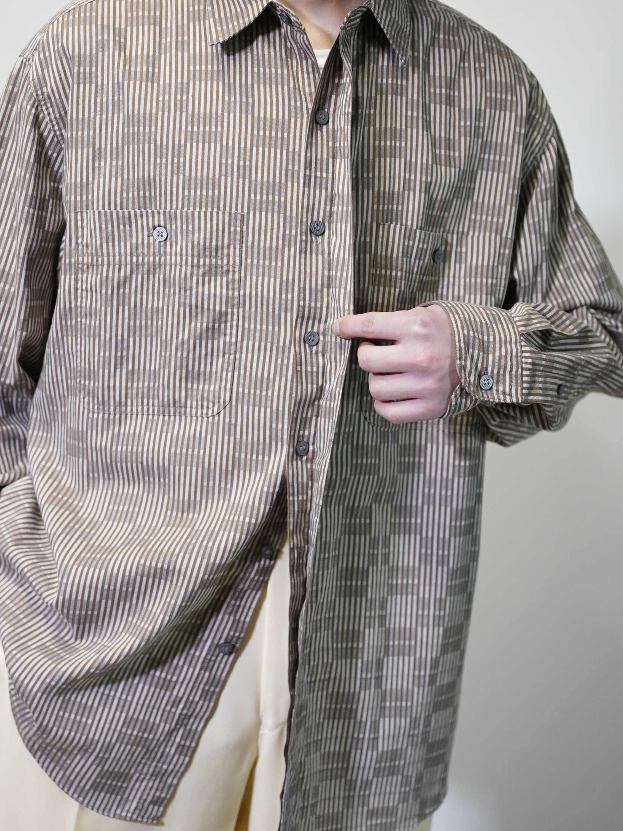 1980~90's LEVI'S fly-front stripe&block plaid cotton L/S shirts