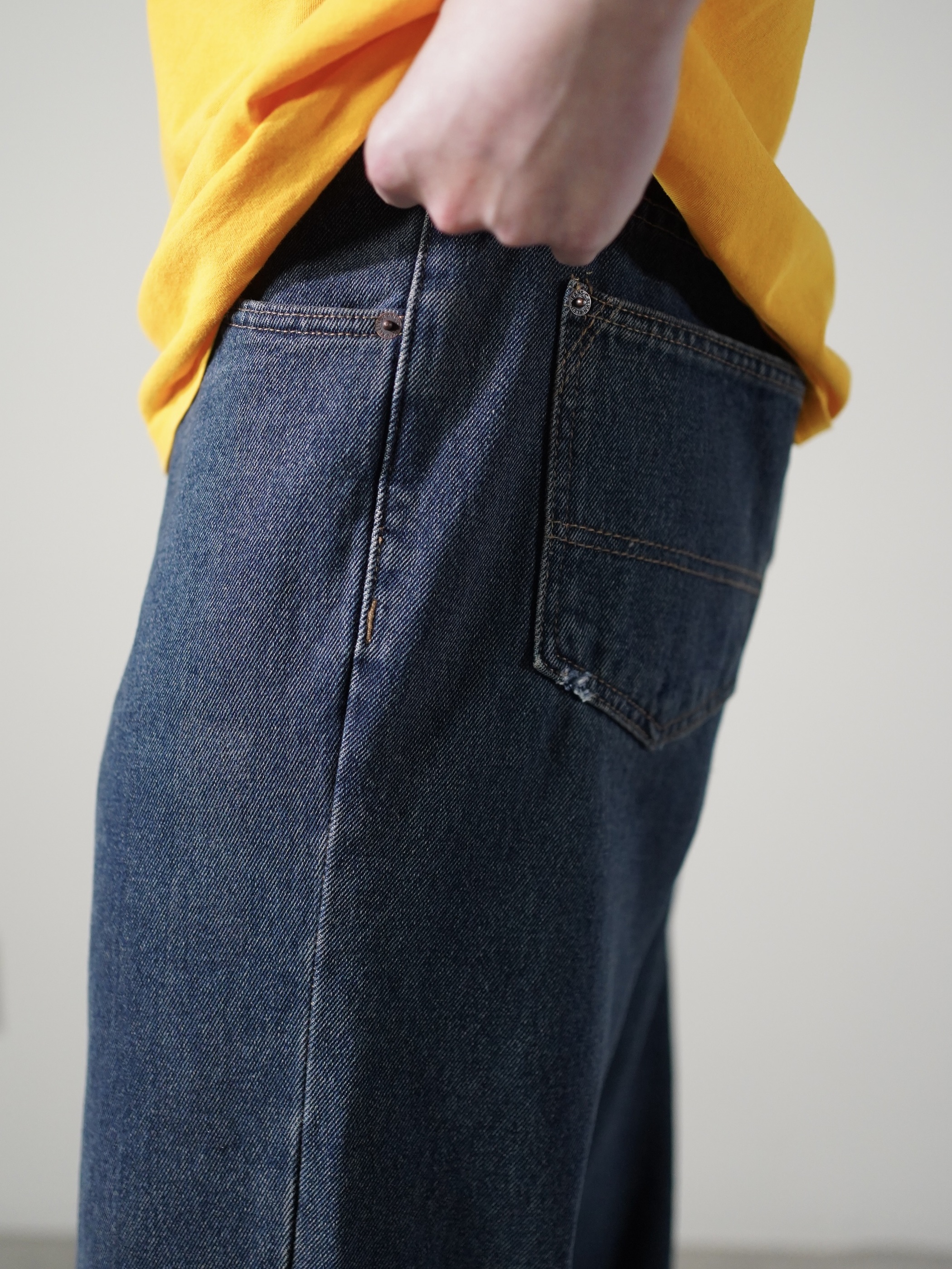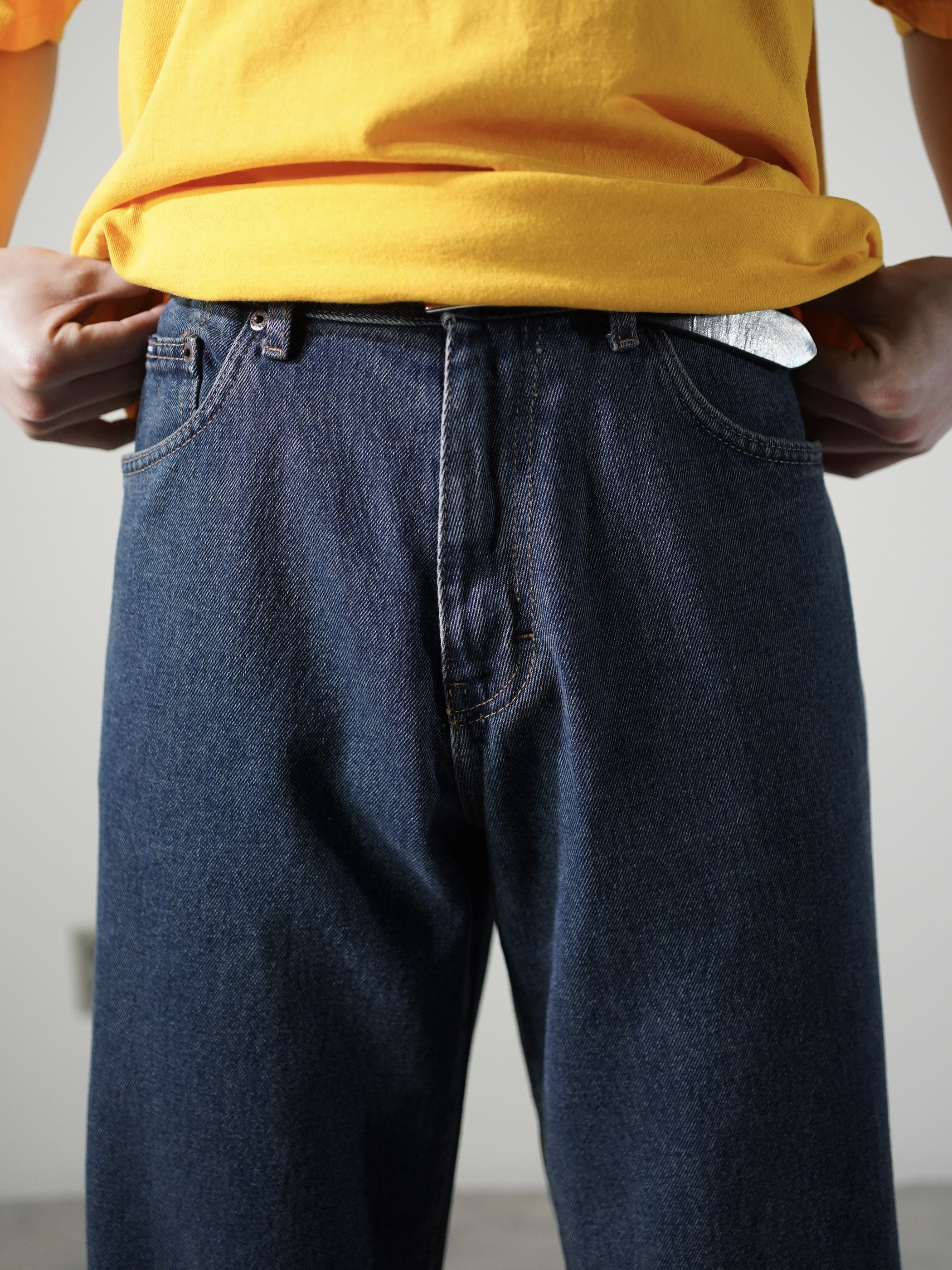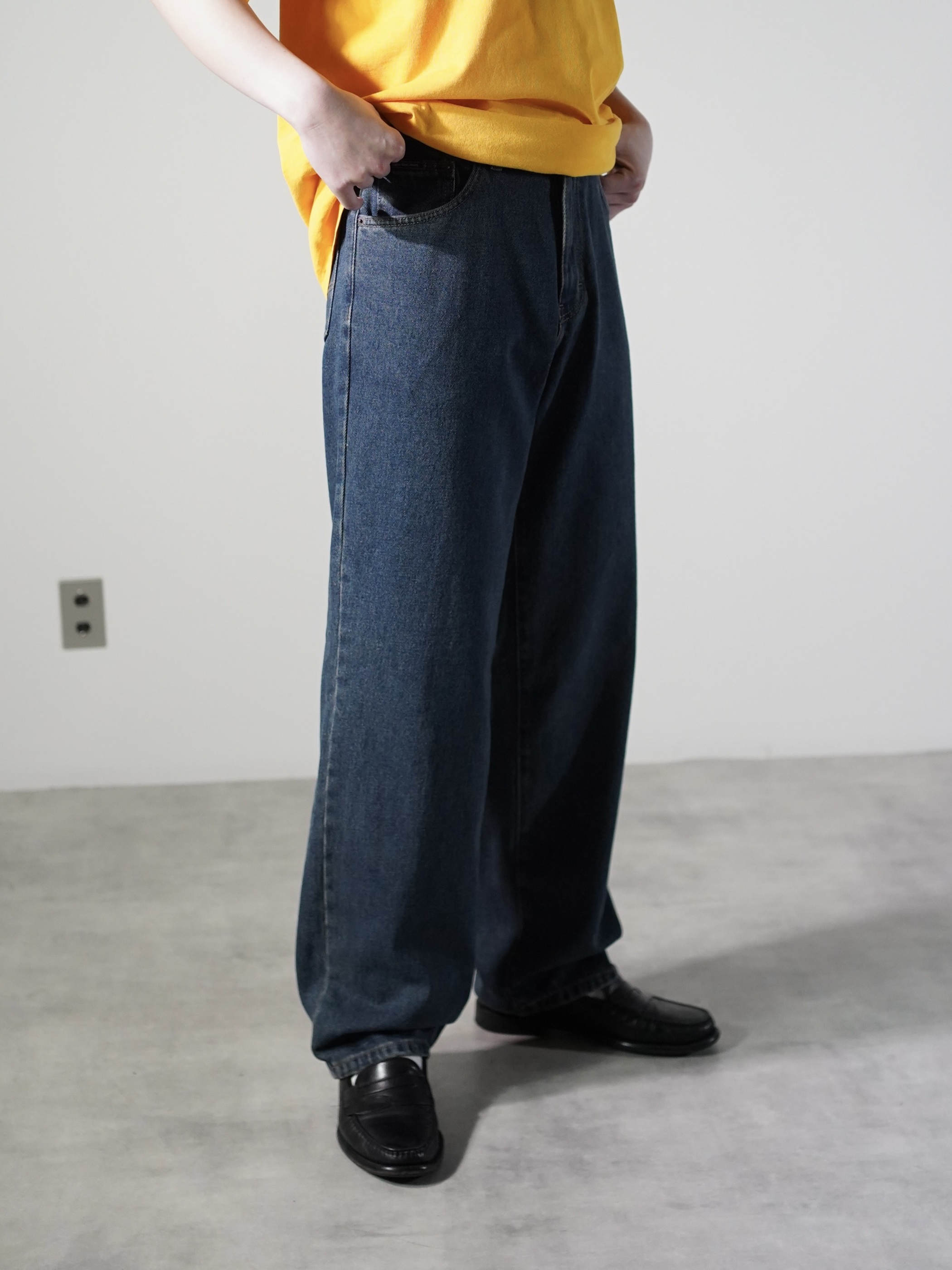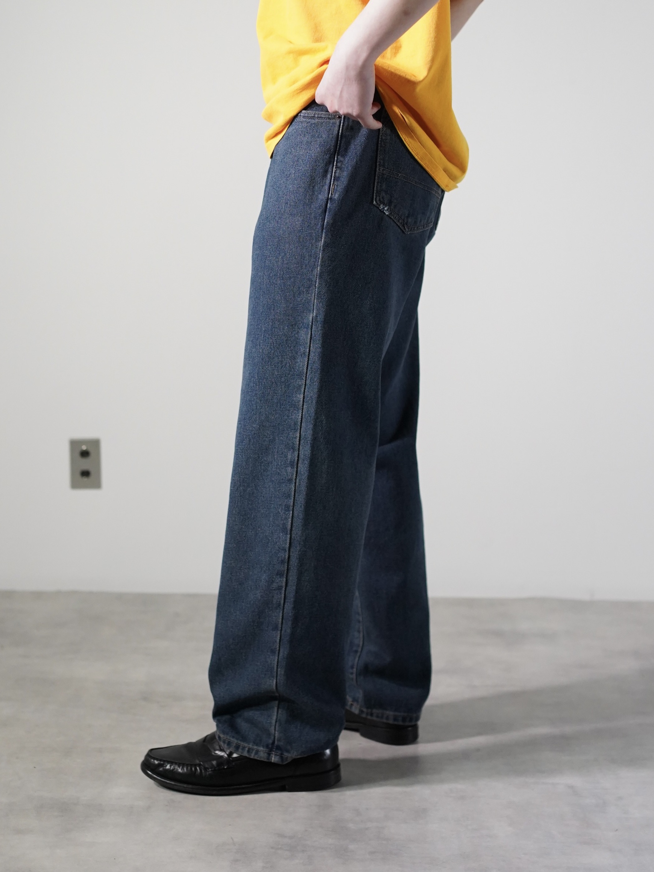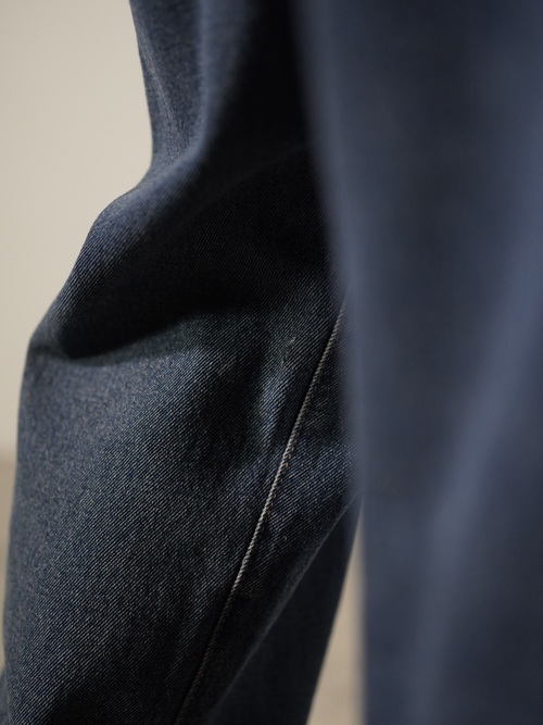 じわーっとした色合いのインディゴ、柔らかい質感、程よい余白のワイドシルエット。