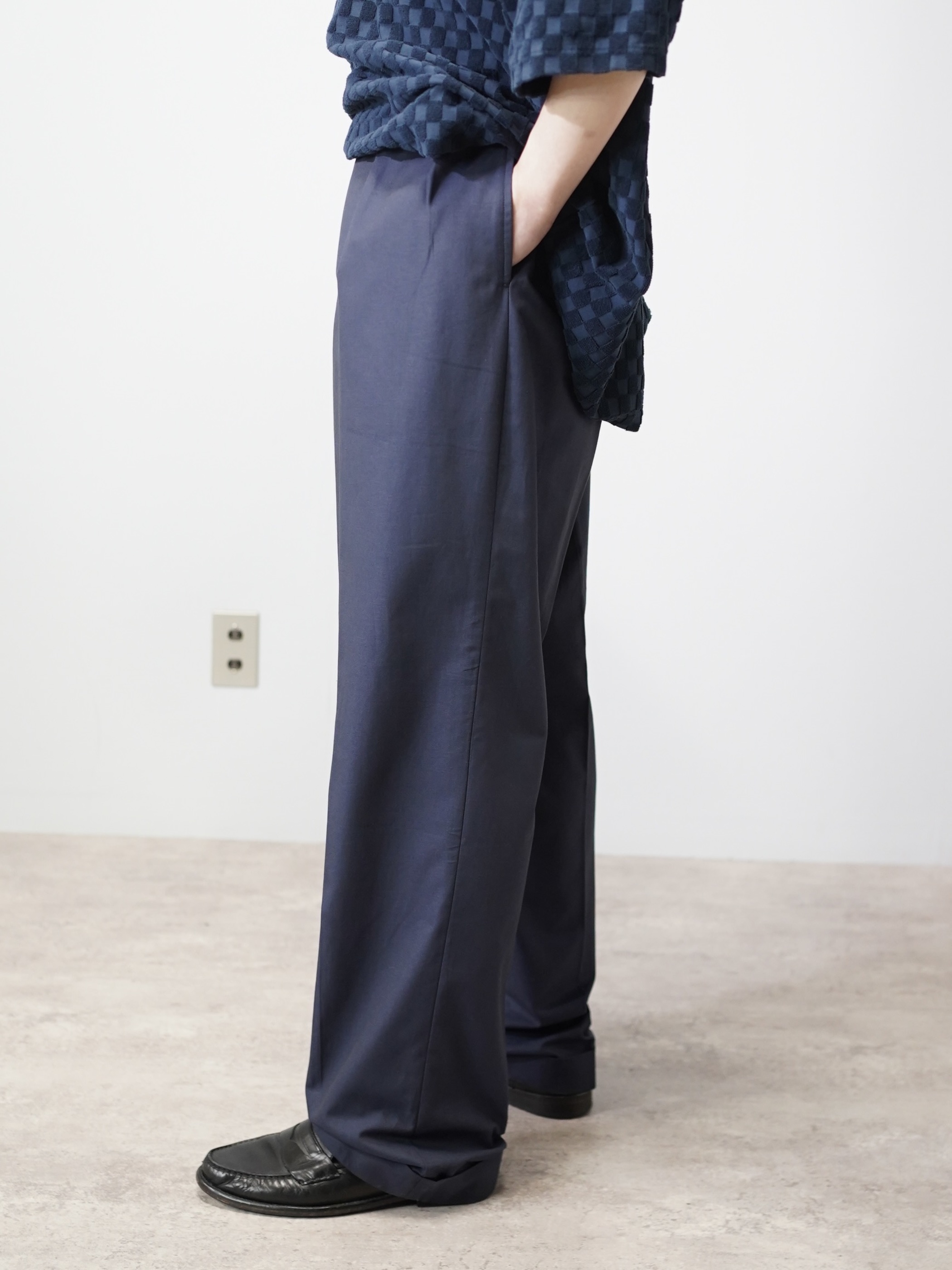 チノより薄く柔らかく、スラックスより程よくハリを持たせた