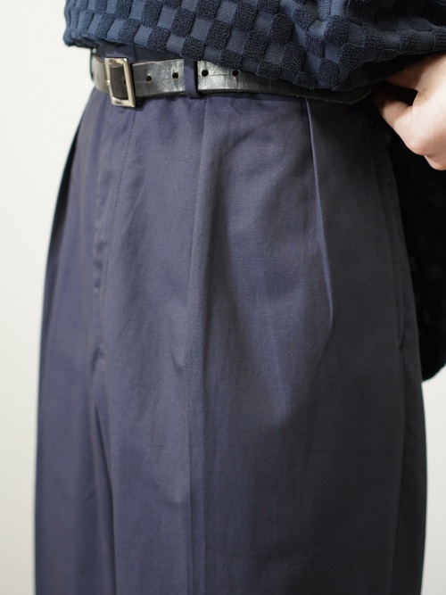 シャツのようにシャリっとした、ライトな質感のコットンスラックス。