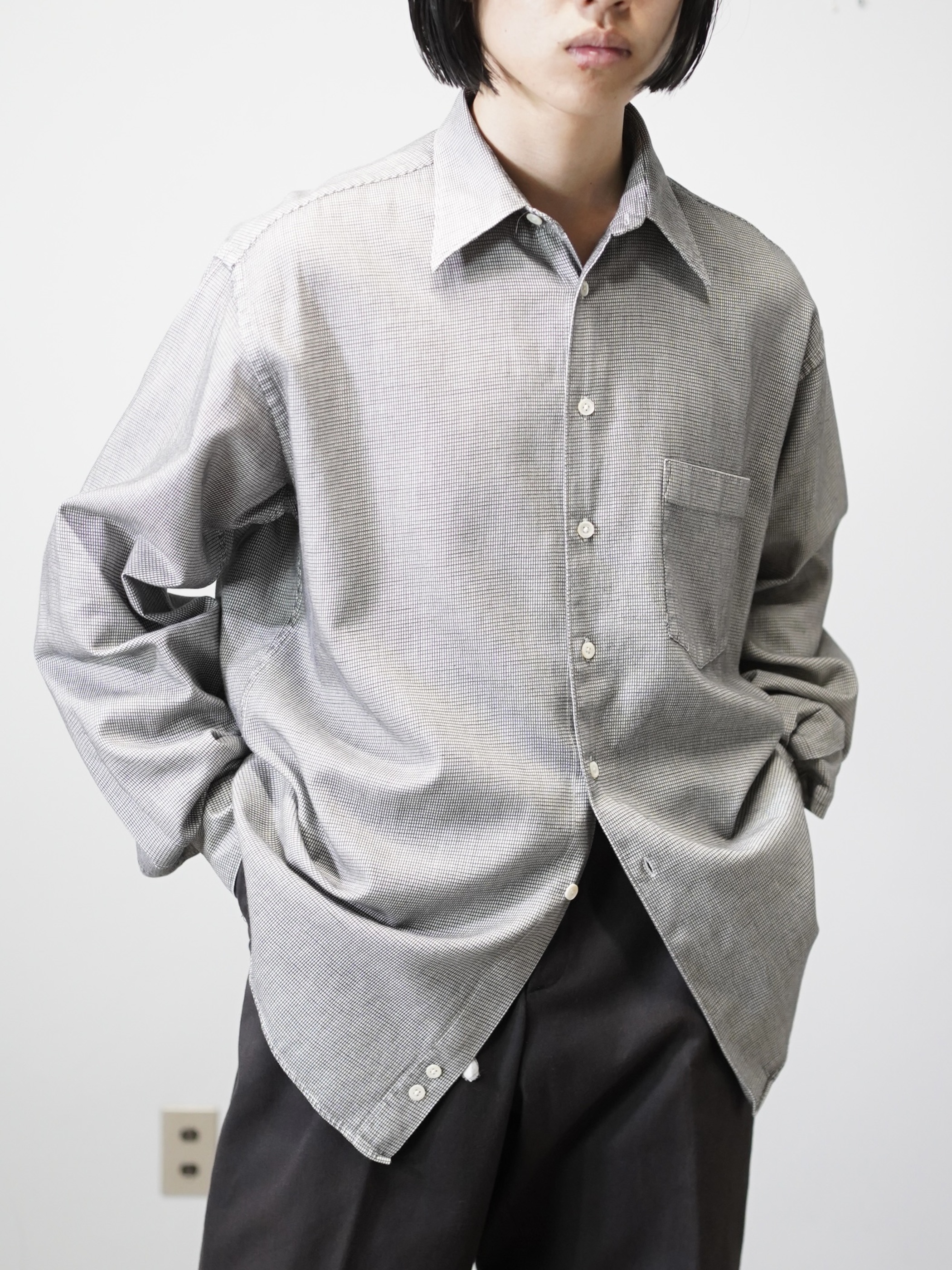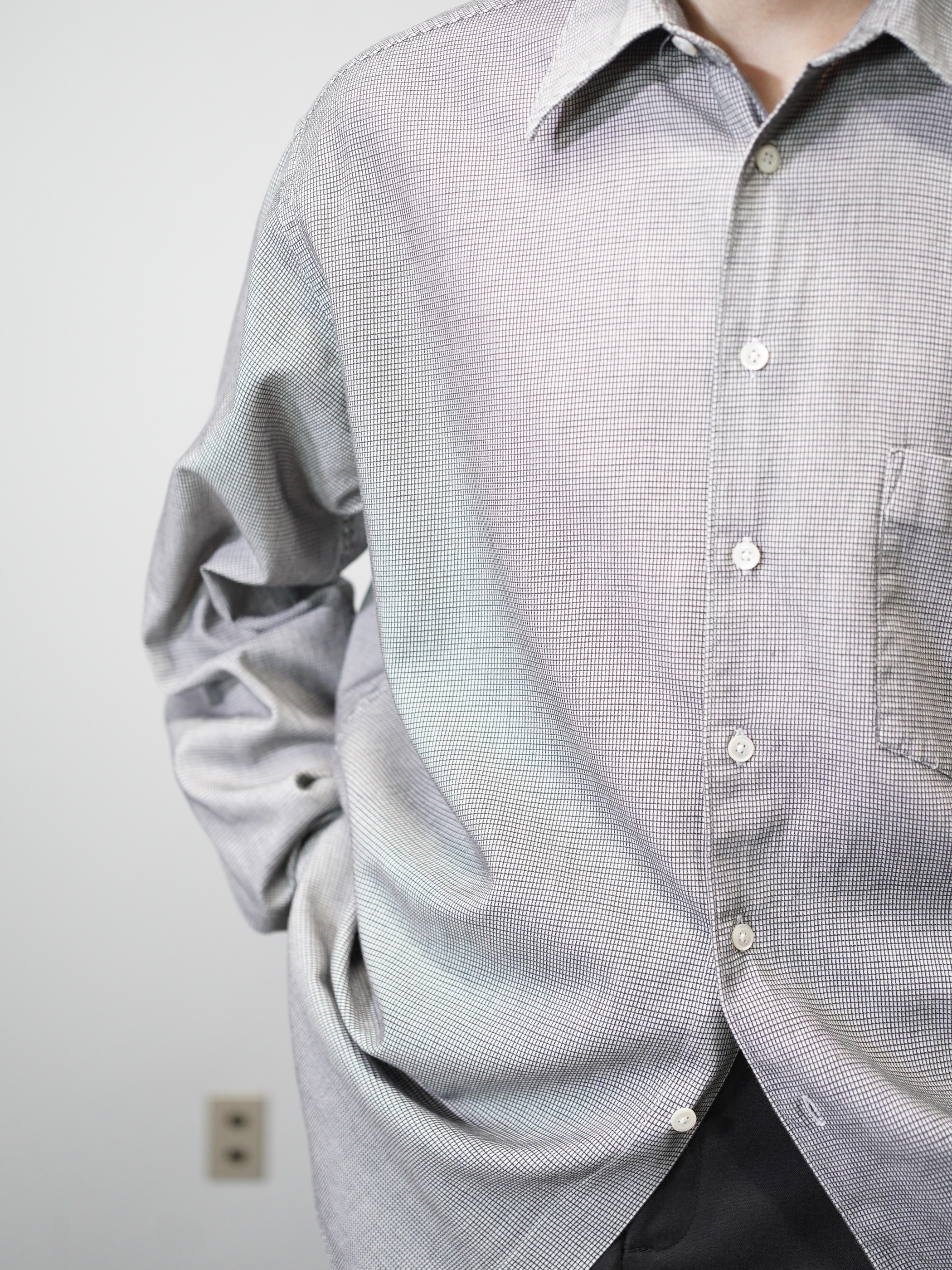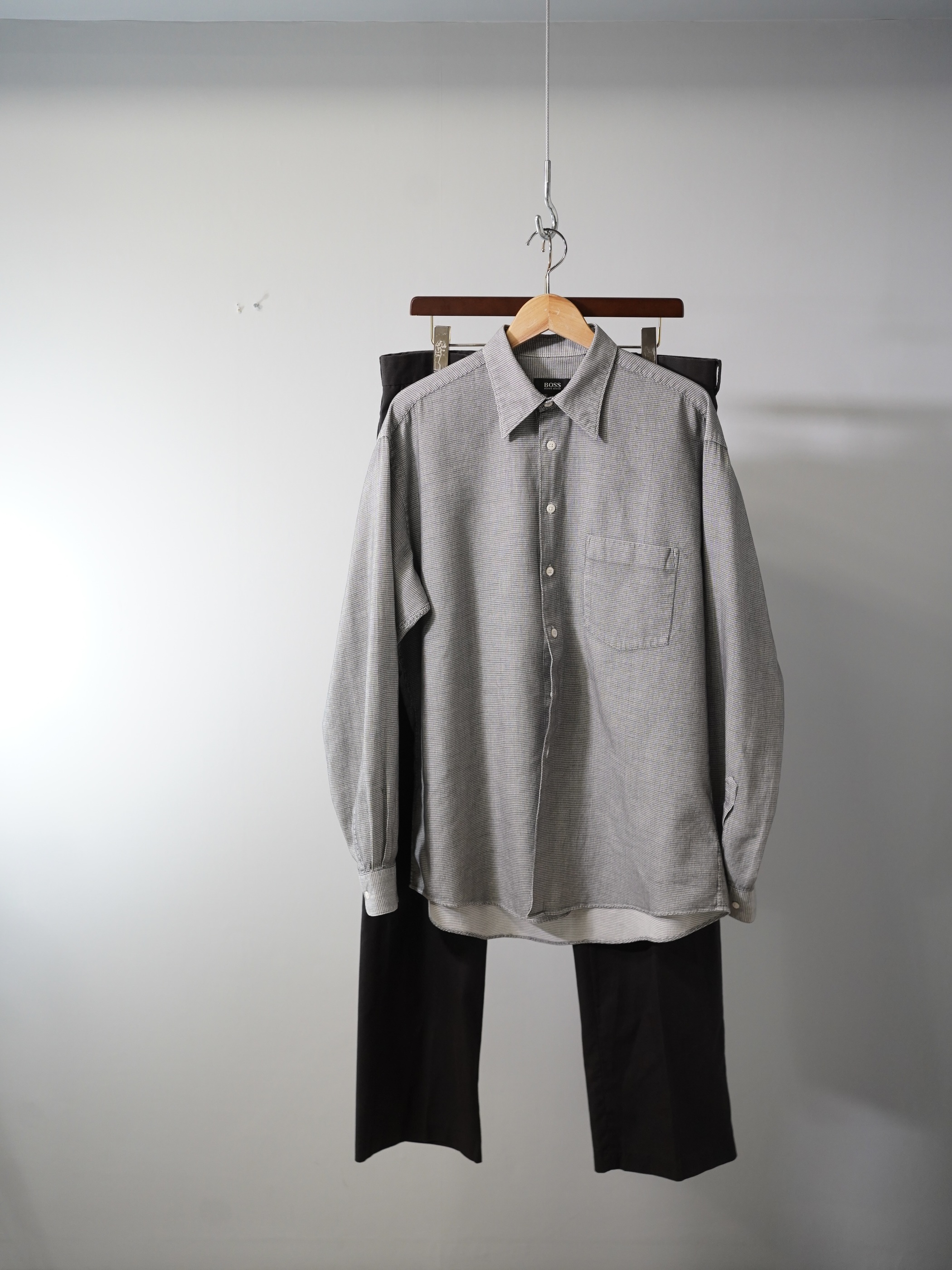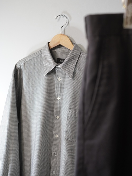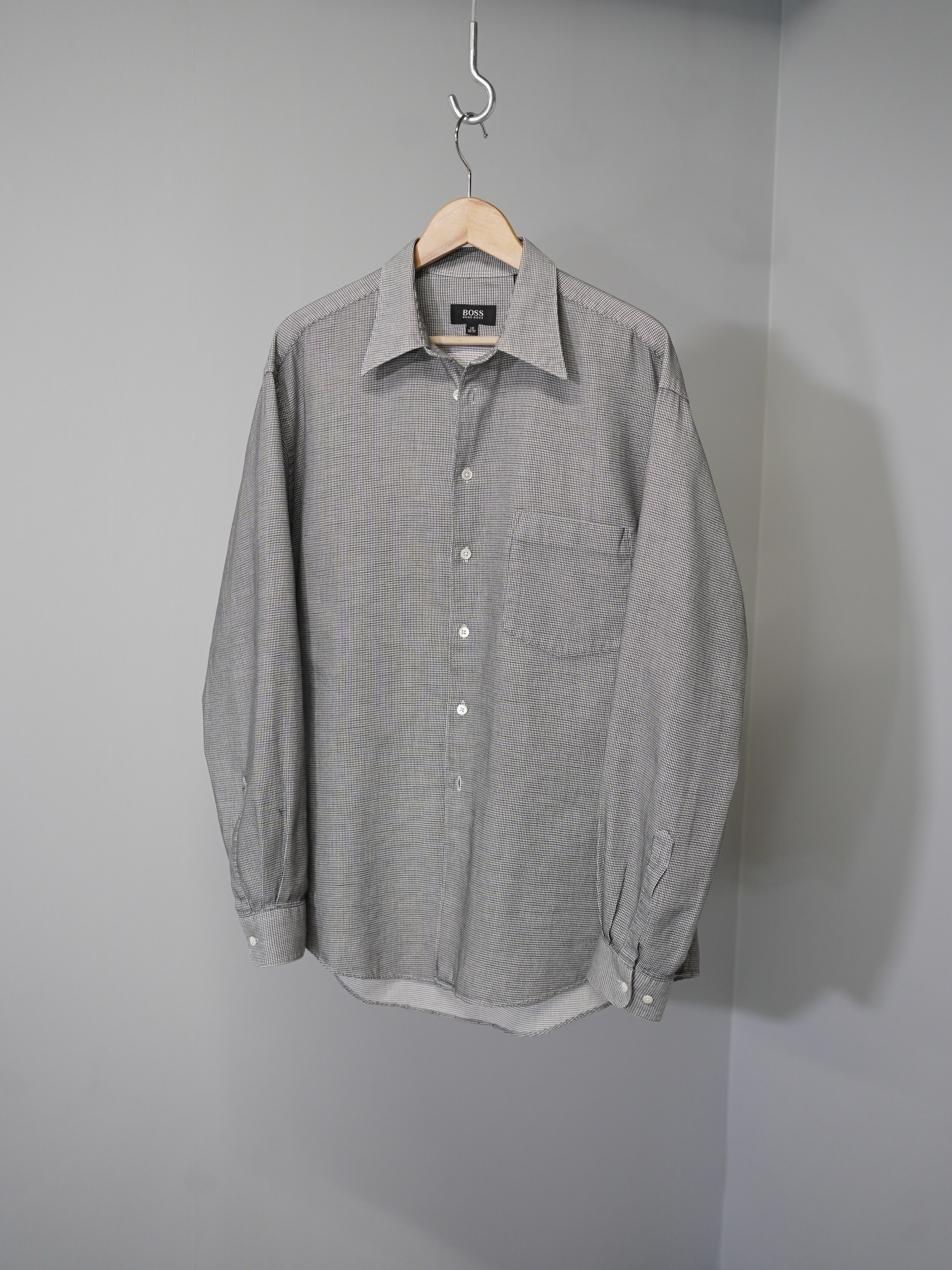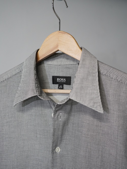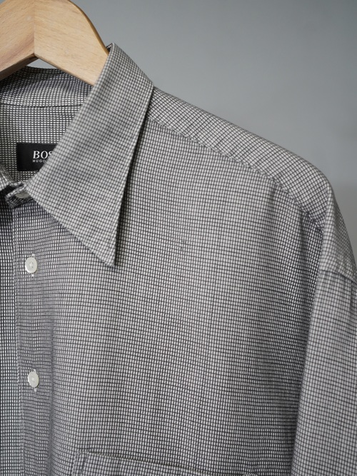 ・1990's HUGO BOSS micro-check pattern cotton dress shirt / Made in HONG KONG