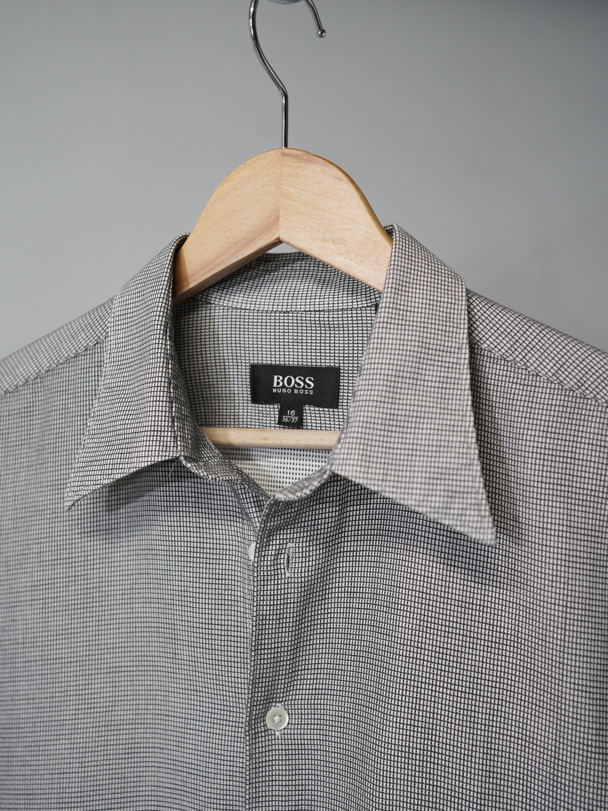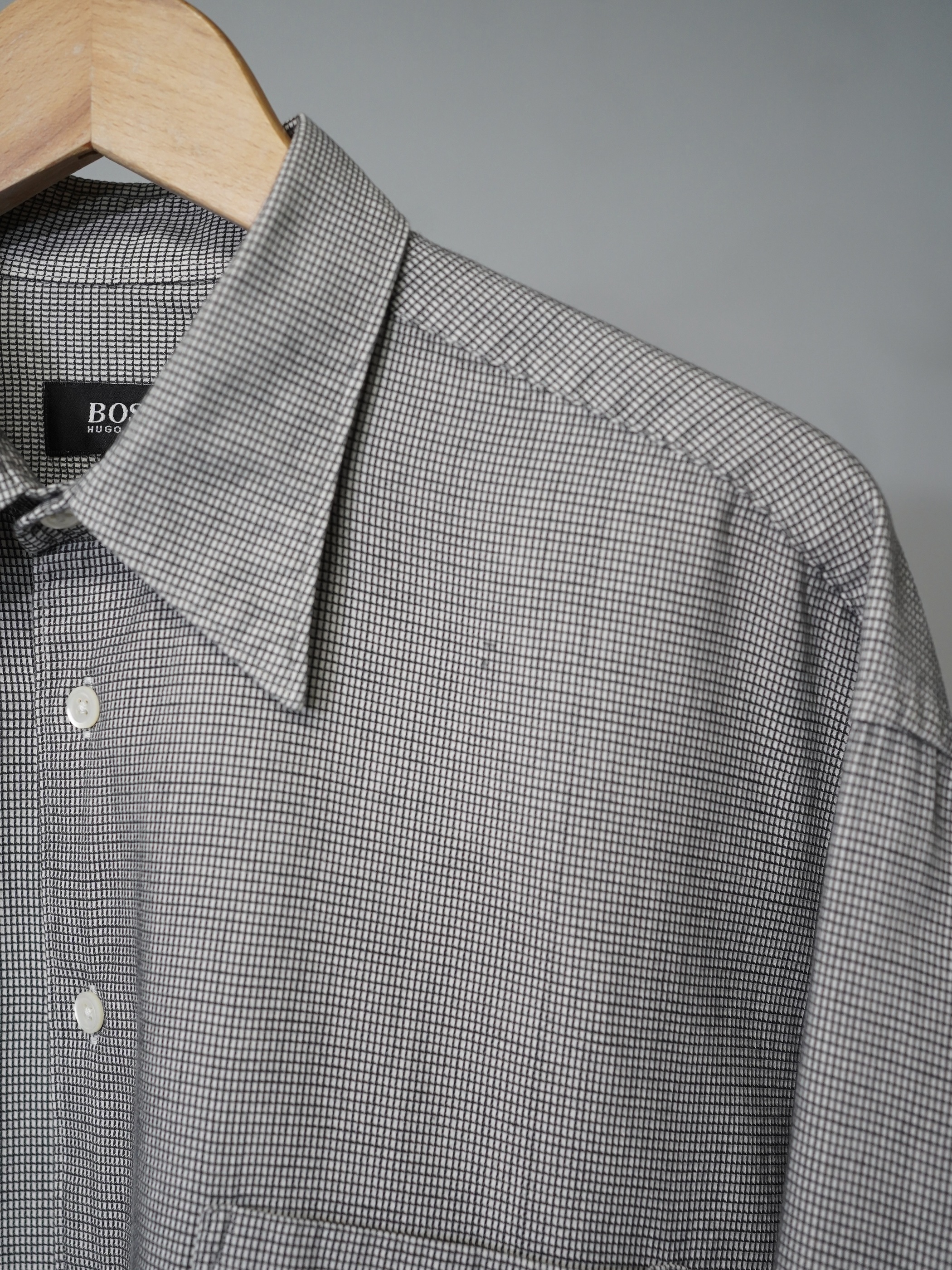 1990's HUGO BOSS micro-check pattern cotton dress shirt / Made in HONG KONG