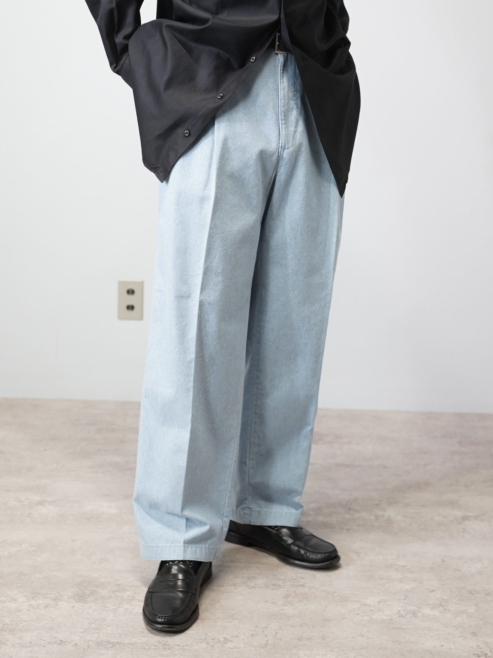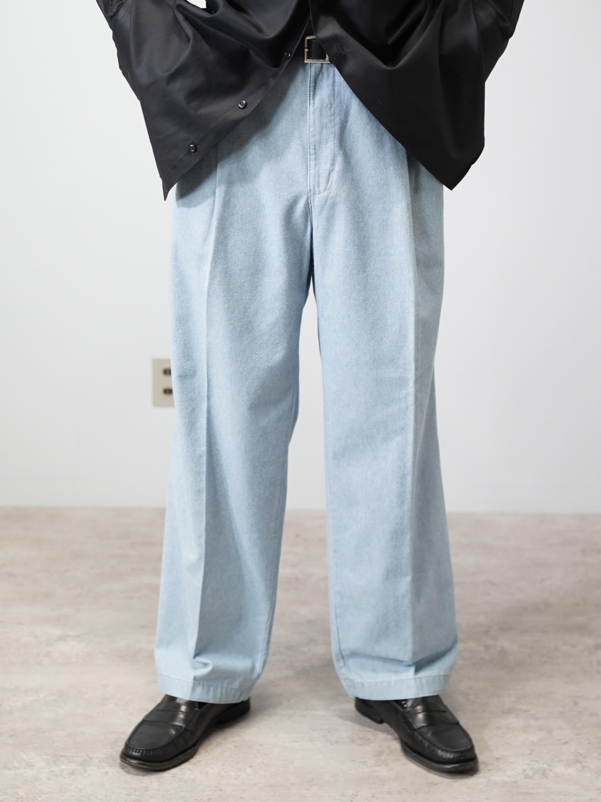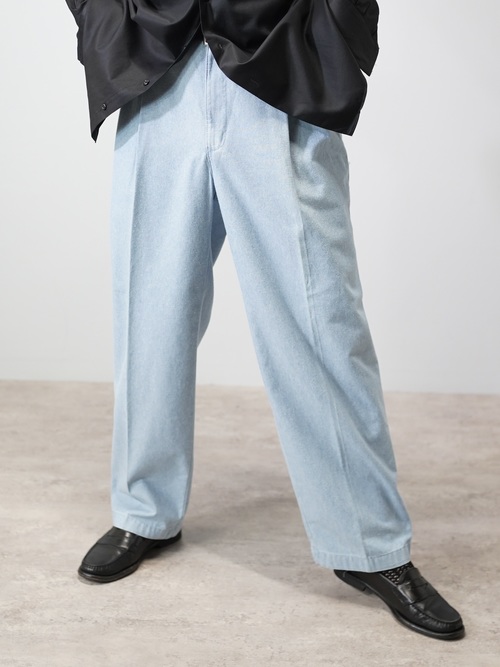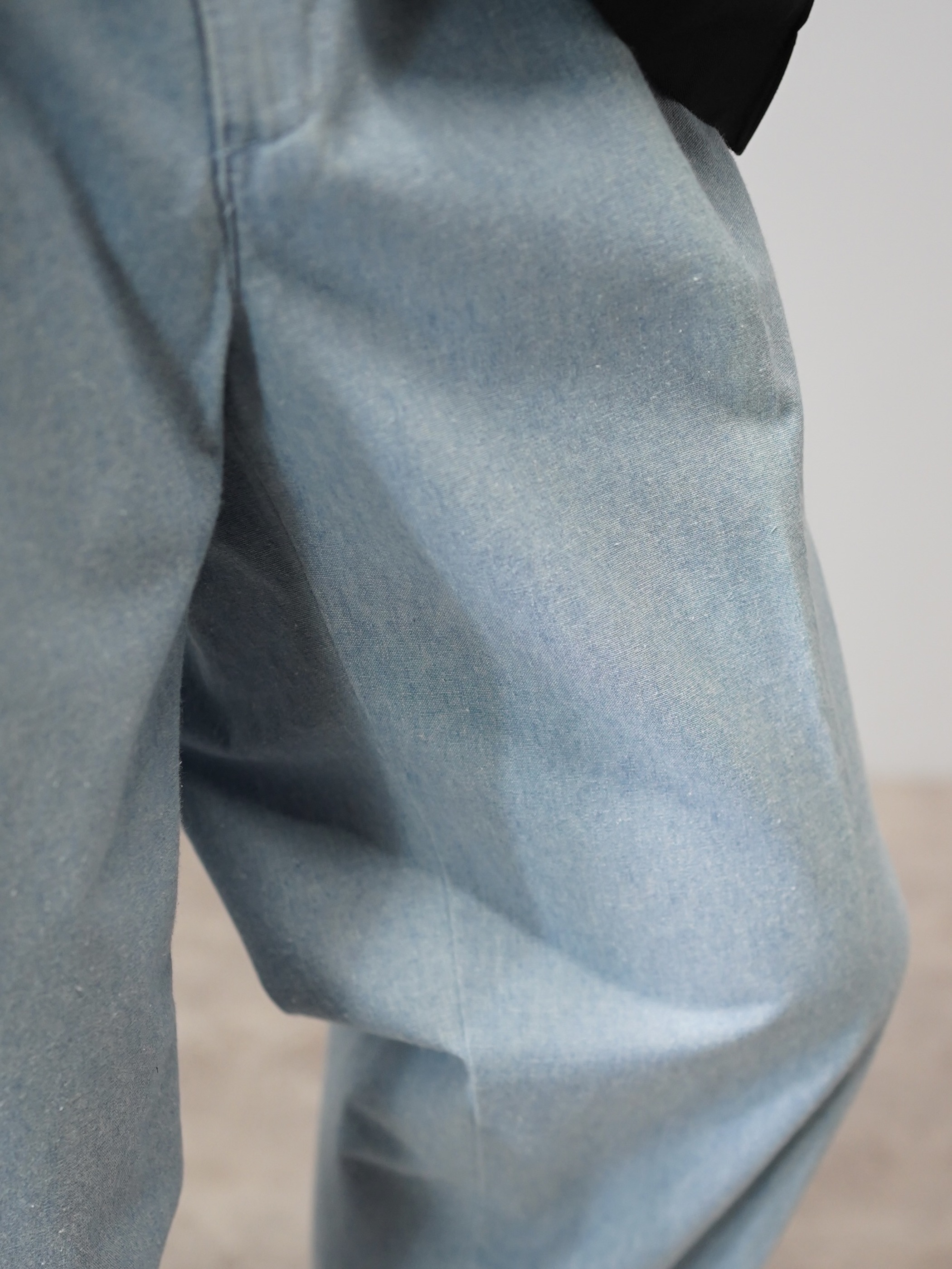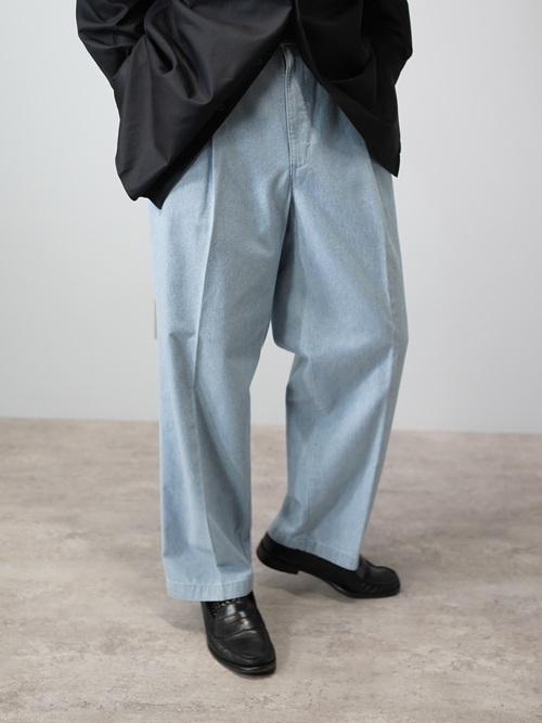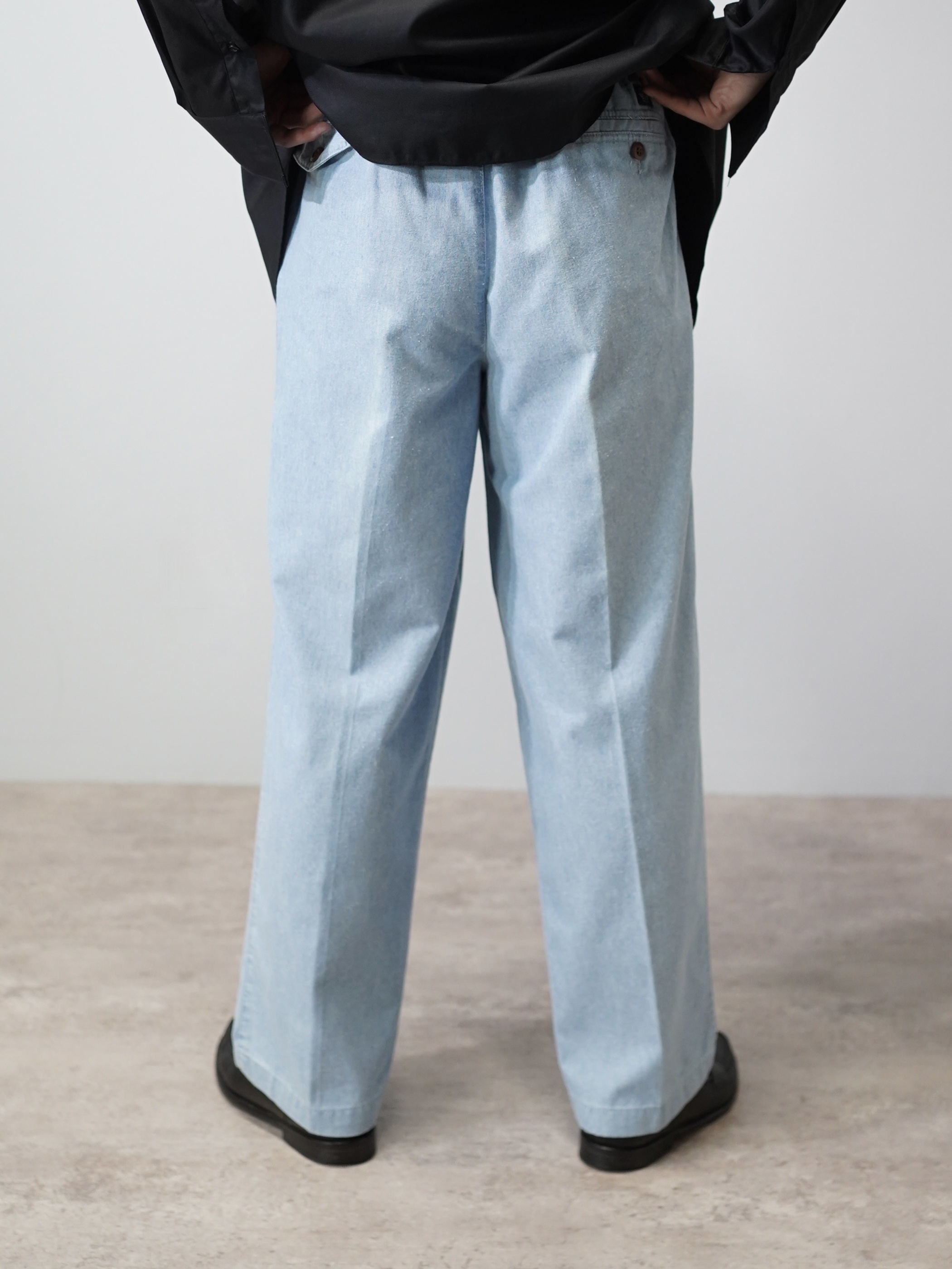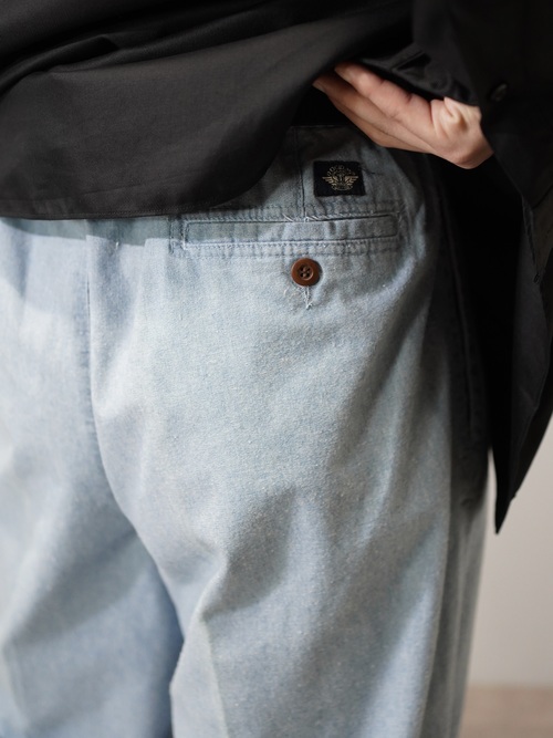 コットンシャンブレー生地のスラックス型。