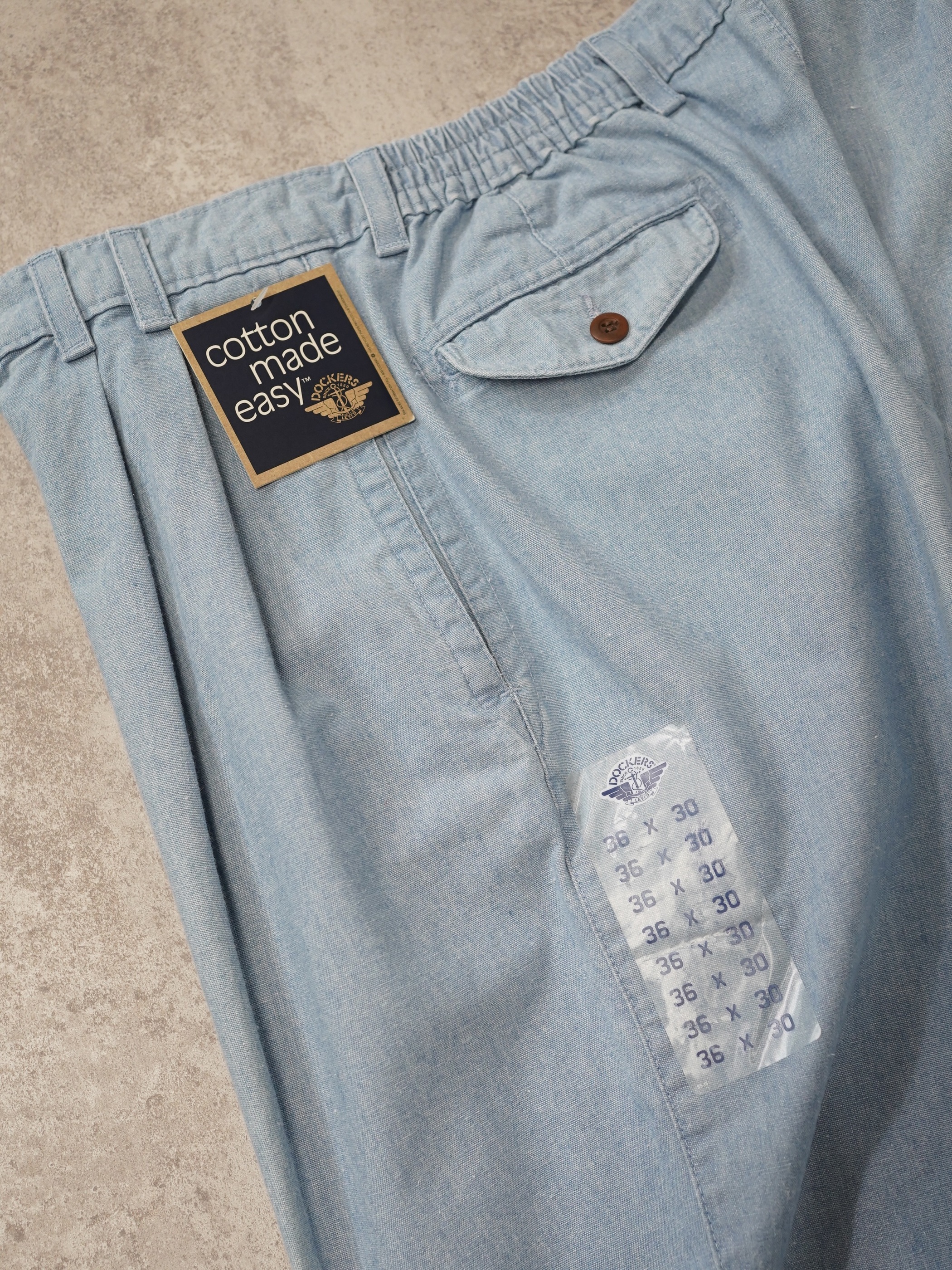 NOS 1990's ~ DOCKERS cotton chambray 2-tuck easy slacks / Assembled in Dominican Republic