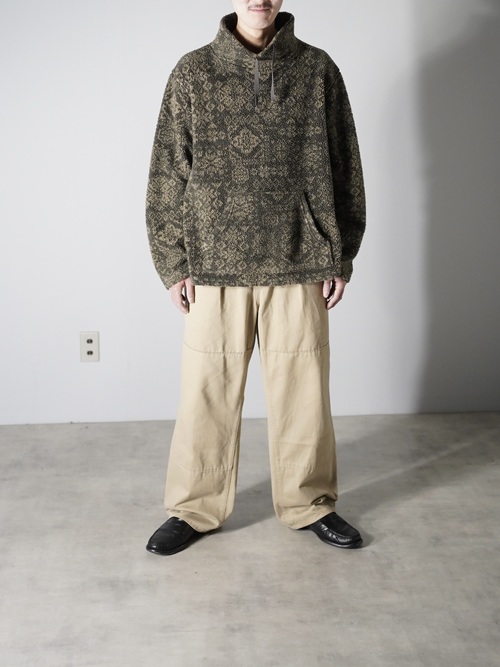 身幅やアーム幅も程良いゆとりがあるため、ニットやスウェットなんでも仕込めそうです。
