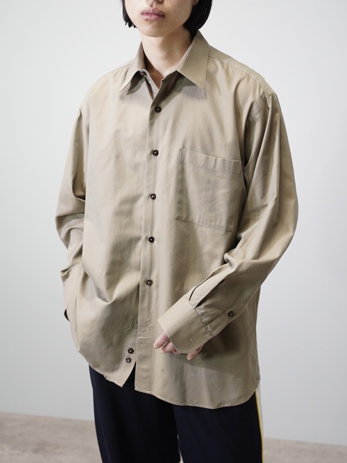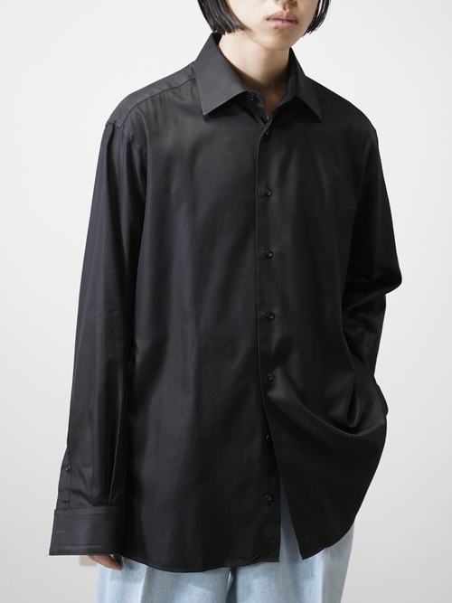ゆとりのある身幅とアームホール。オーバー目のサイジングながらも、ネック周りやカフスの要所は締める収まりの良いバランス。