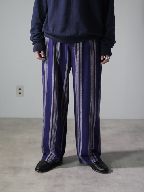 ・1980's~ Metallic jacquard fabric poly 3box tuck trousers