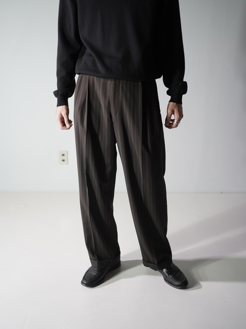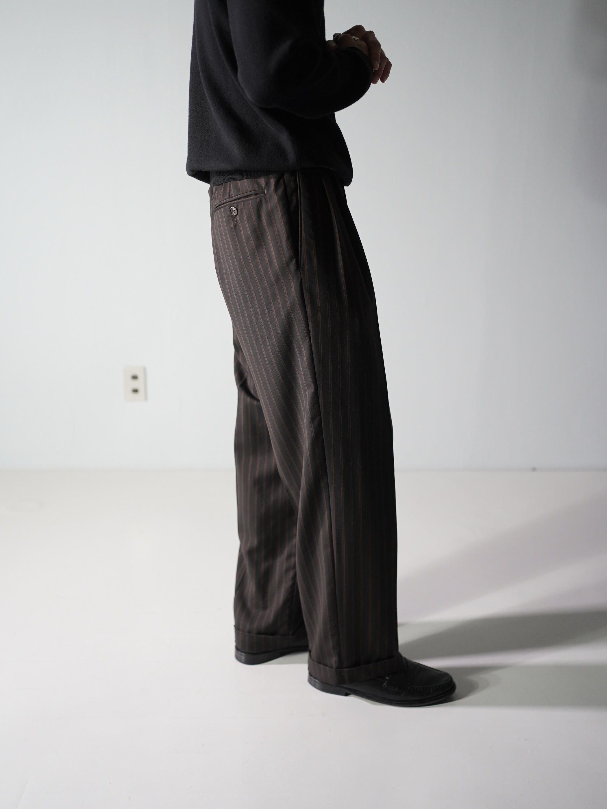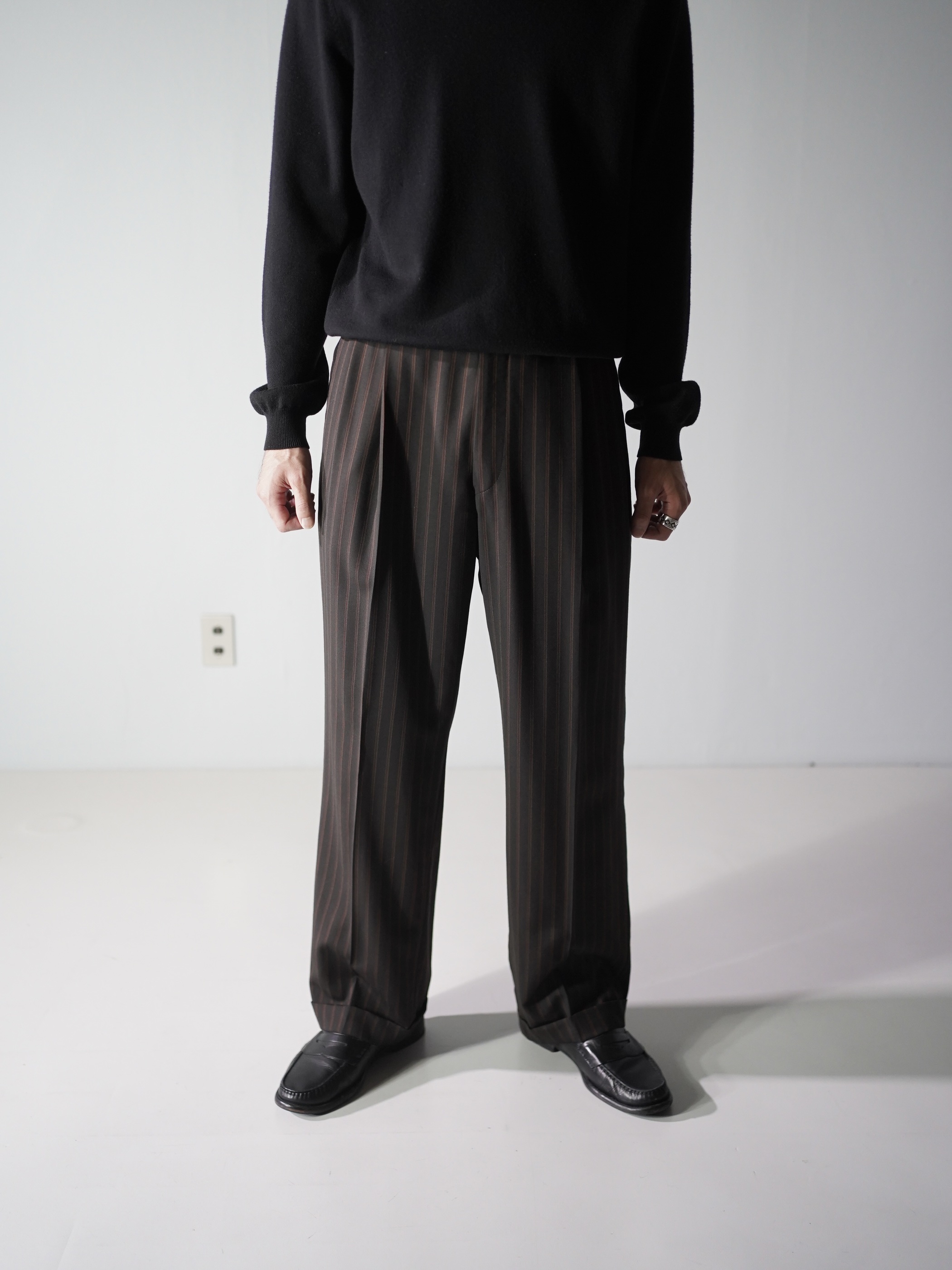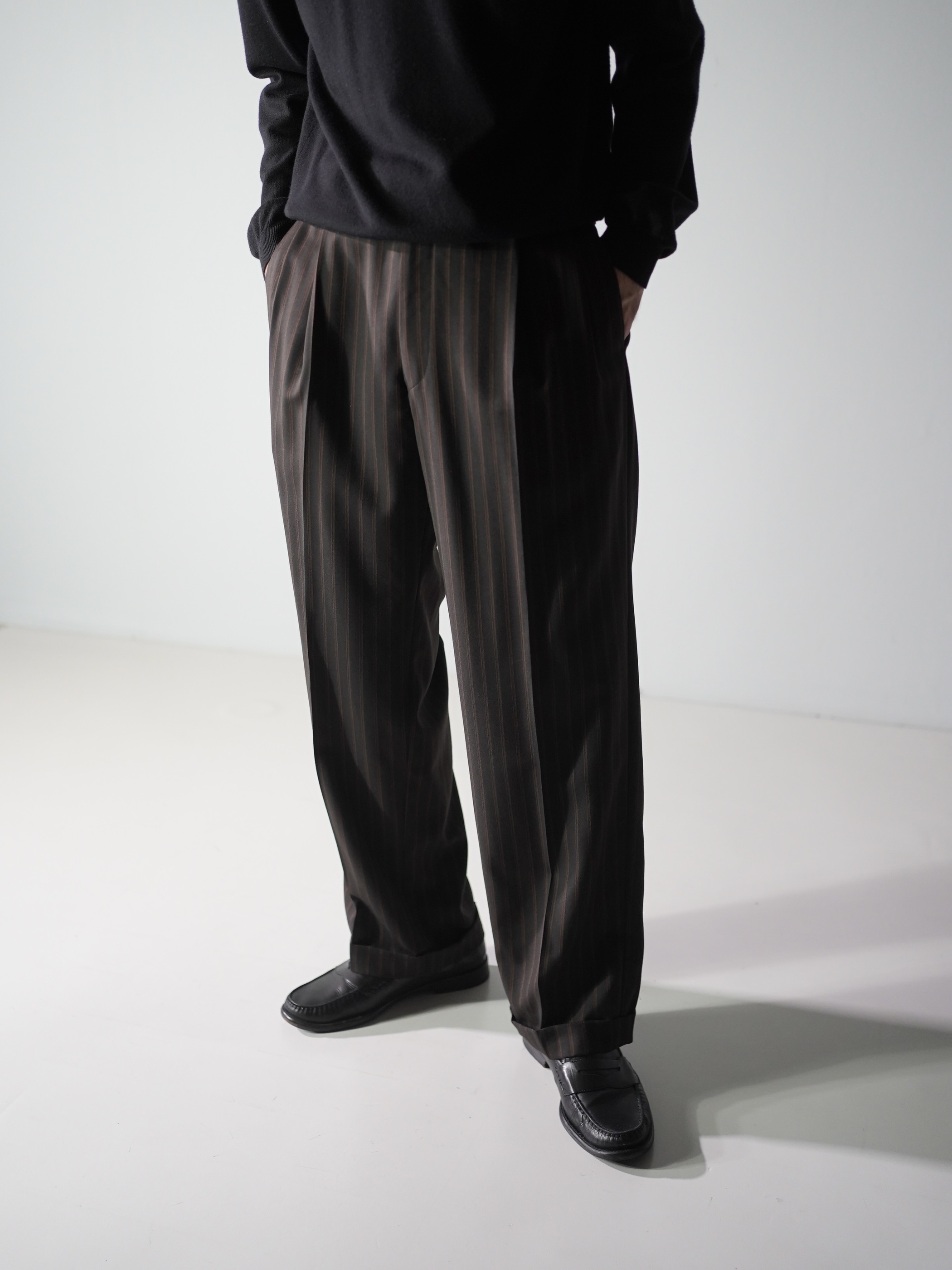 Paul Fredrick Imperial 130's collection Wool 2tuck stripe slacks