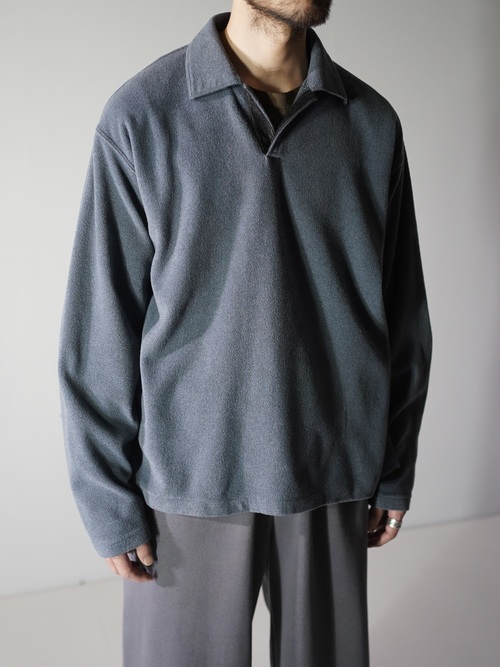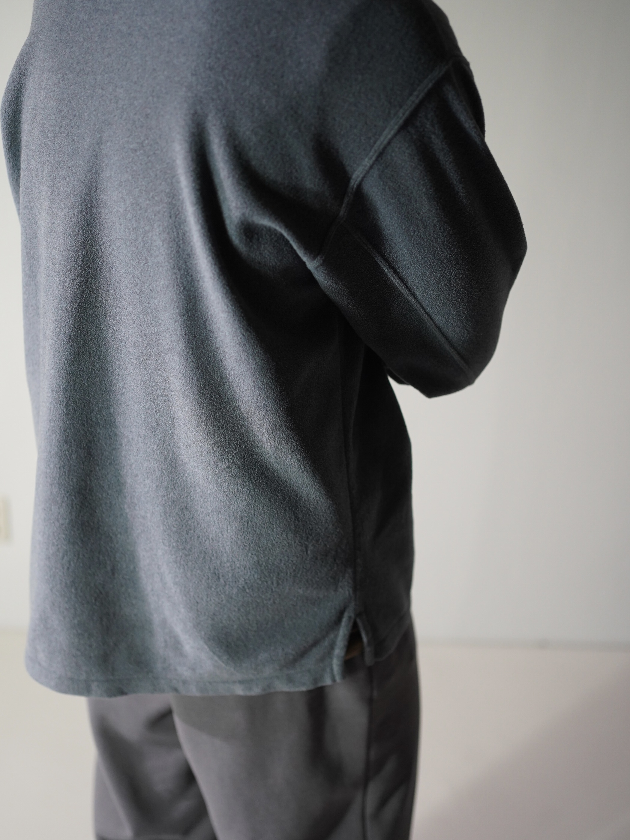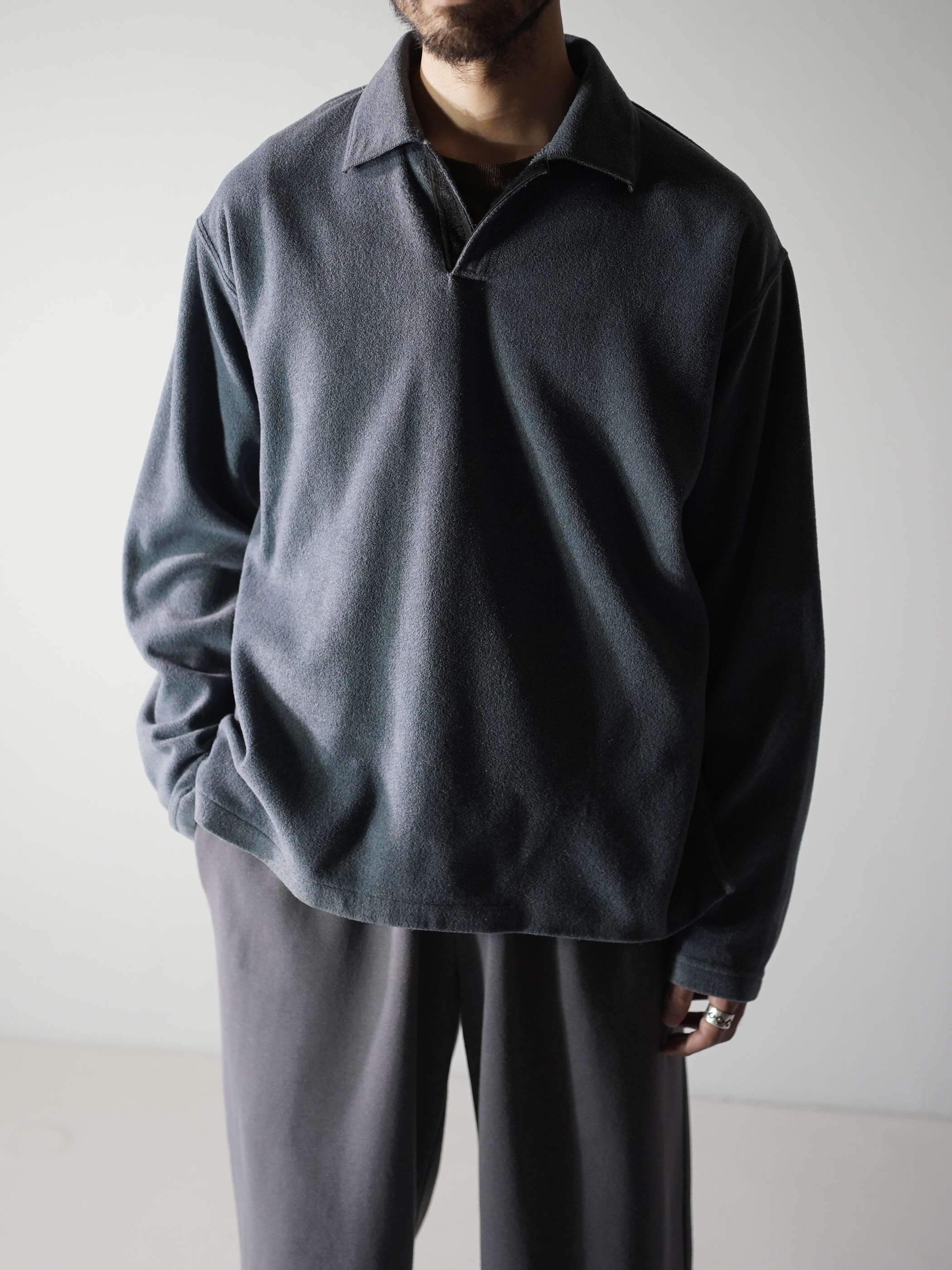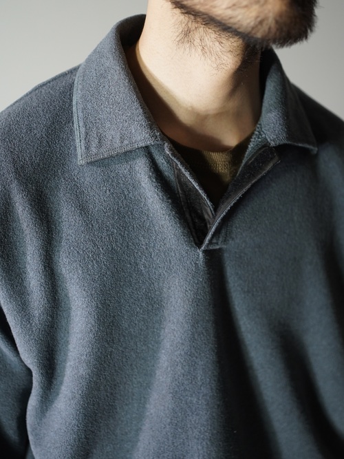 ニットやスウェット生地ではなくフリース生地のプルオーバーポロシャツ。フリースでプルオーバーとなるとハーフジップ、Vネックが多用されるとは言えもっと個体があっても良さそうなところ。