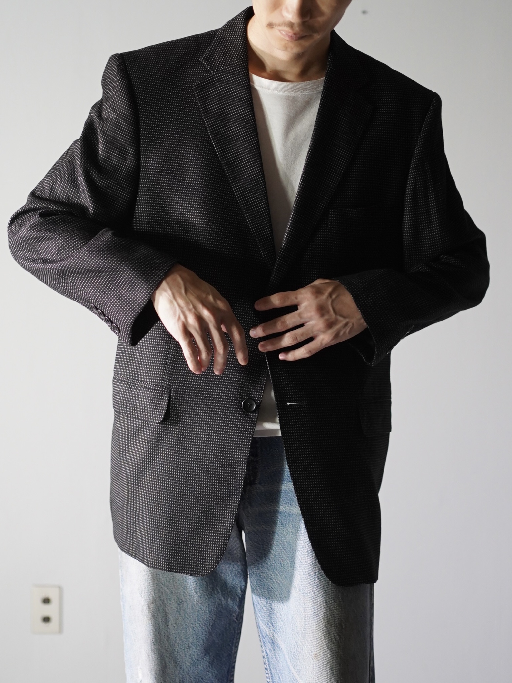 VERSACE Collection Bamboo Viscose birds-eye pattern tailored jacket/Made in Croatia