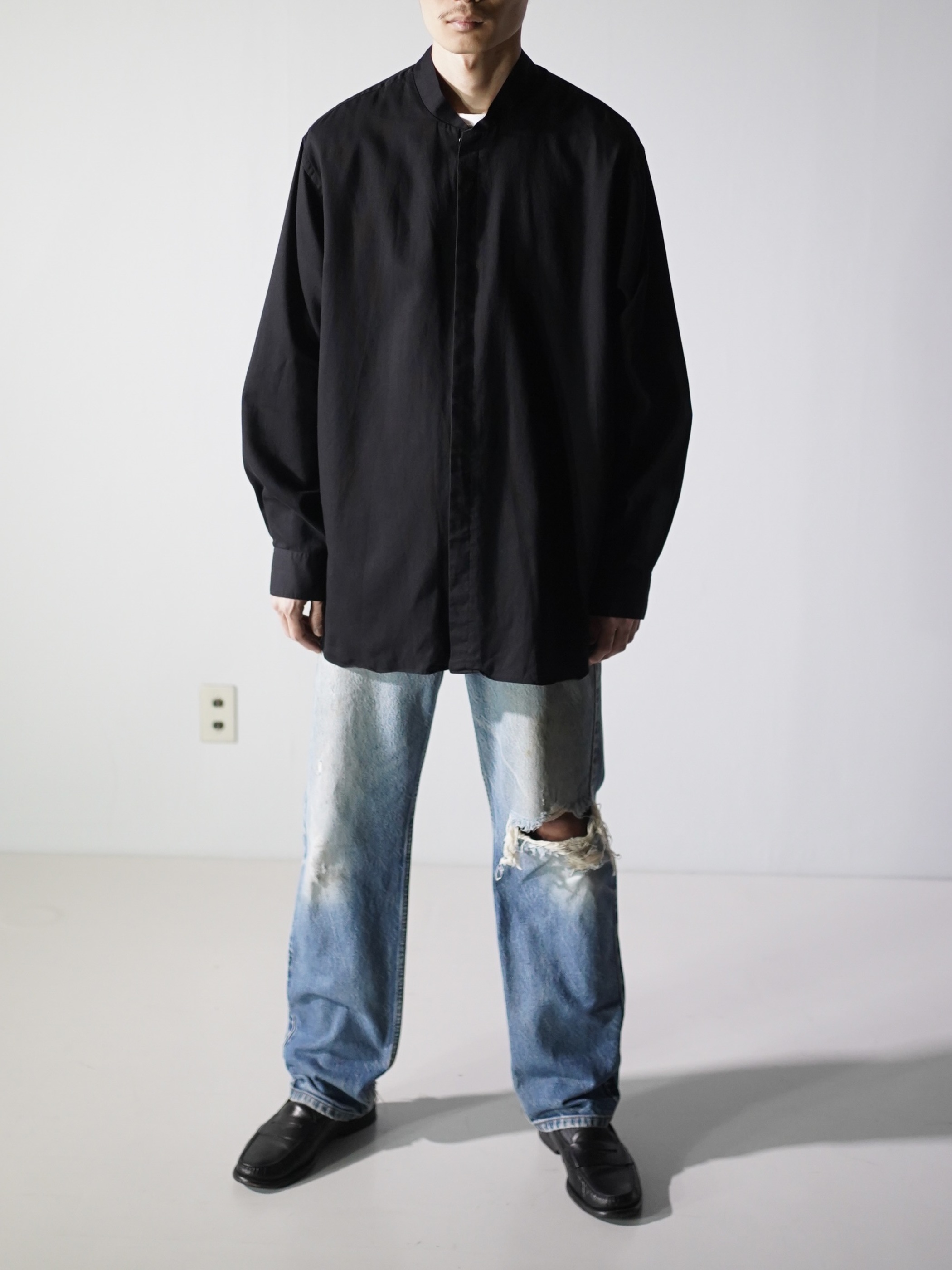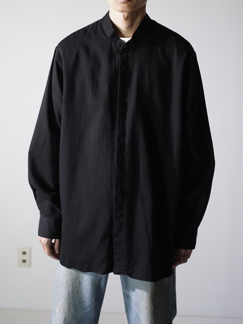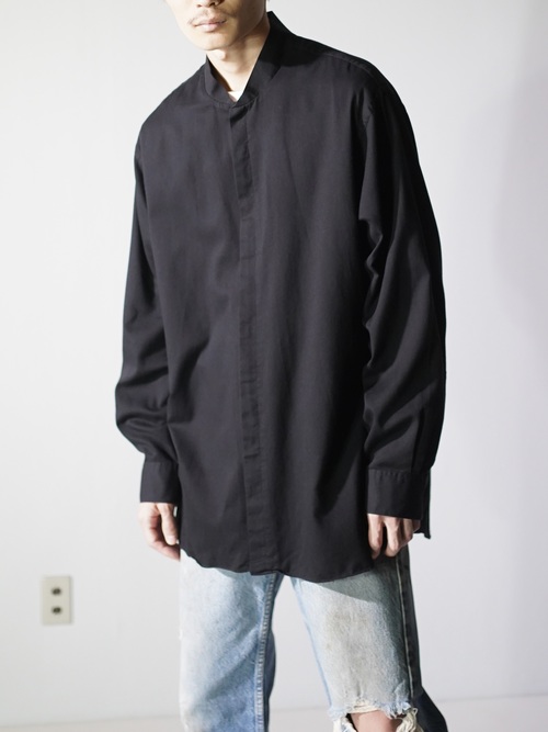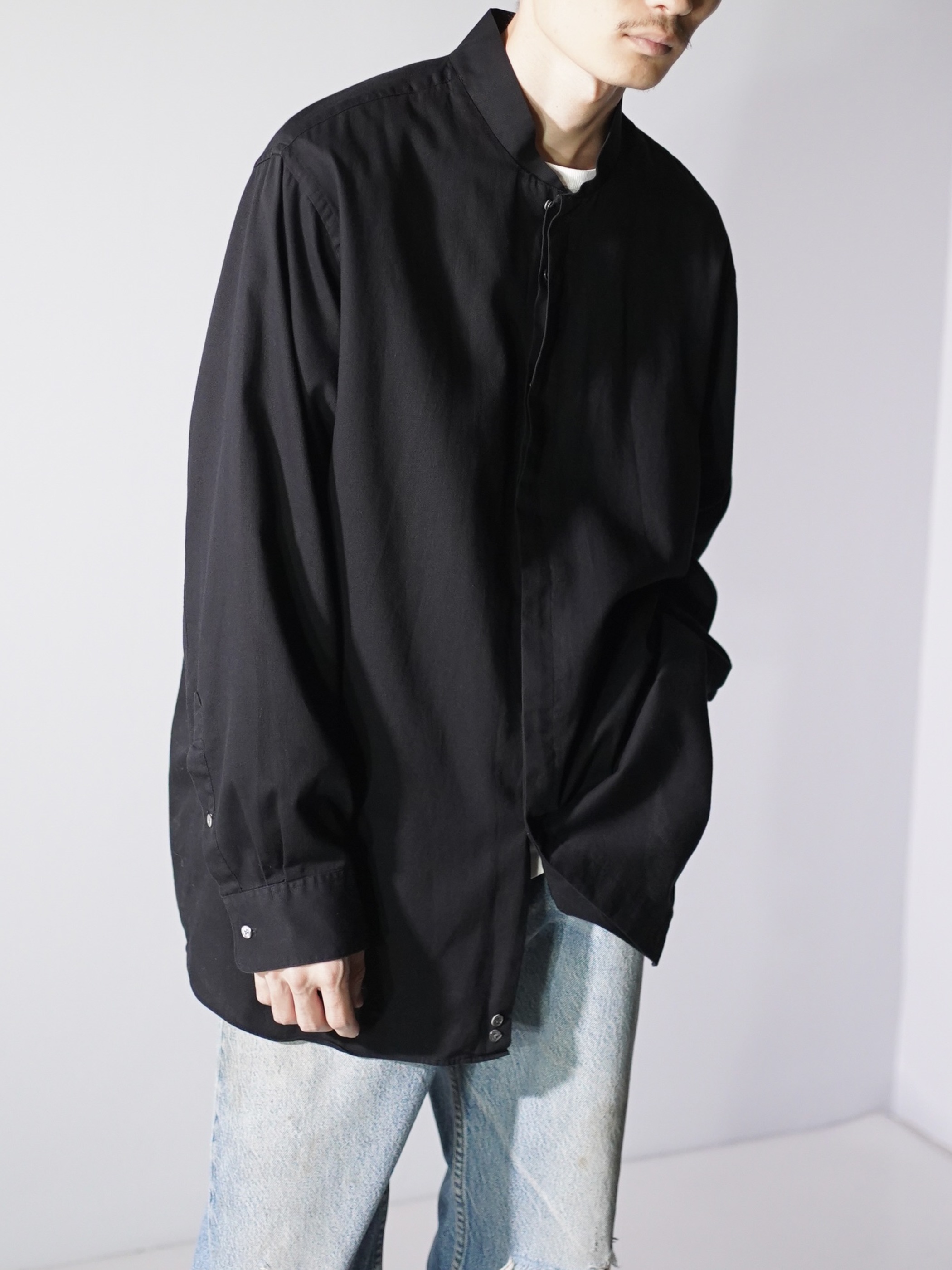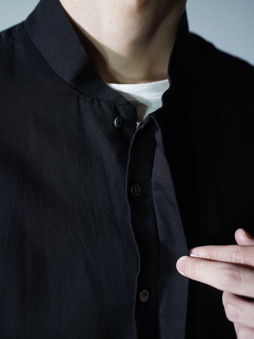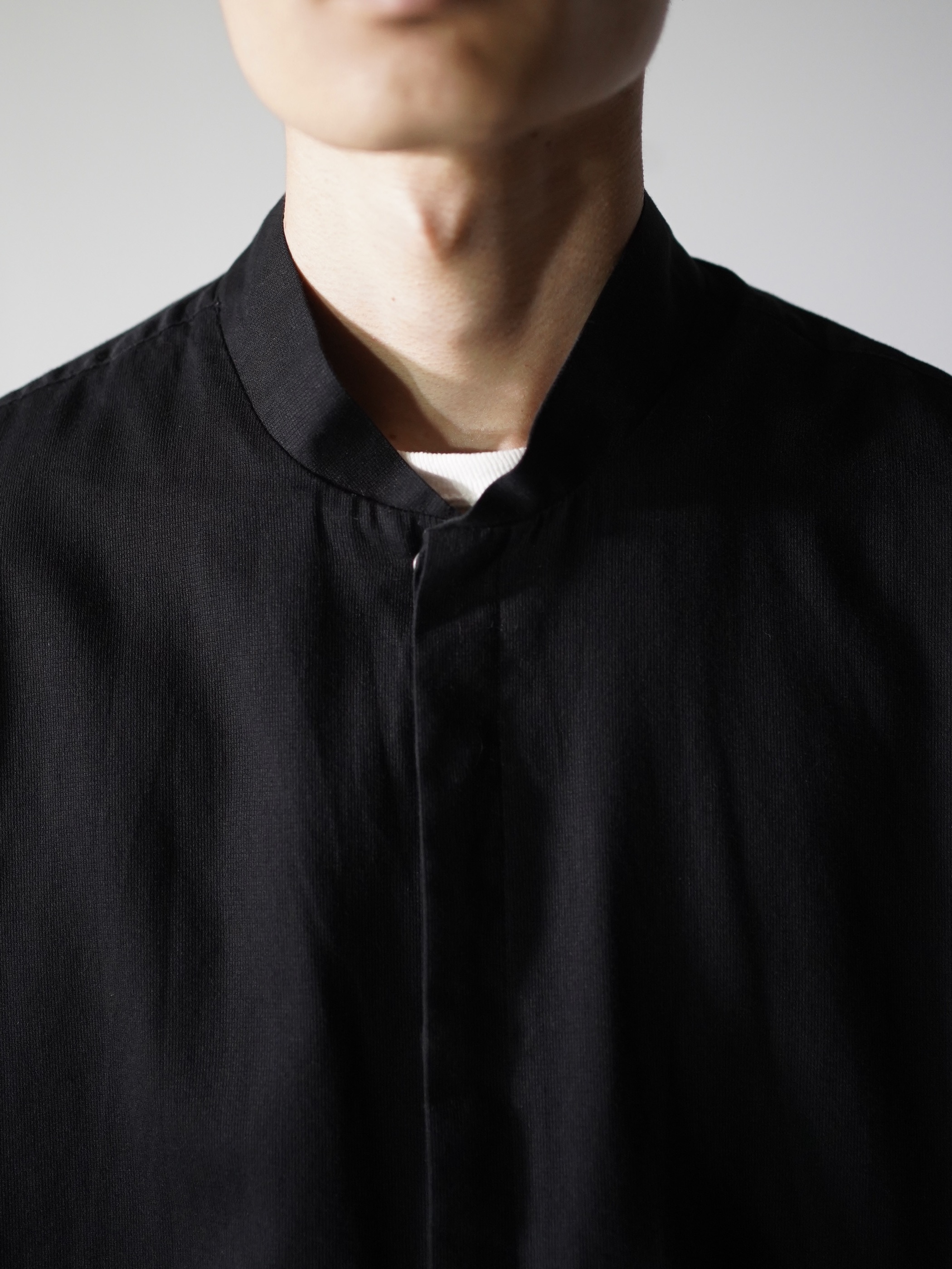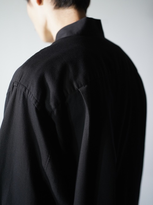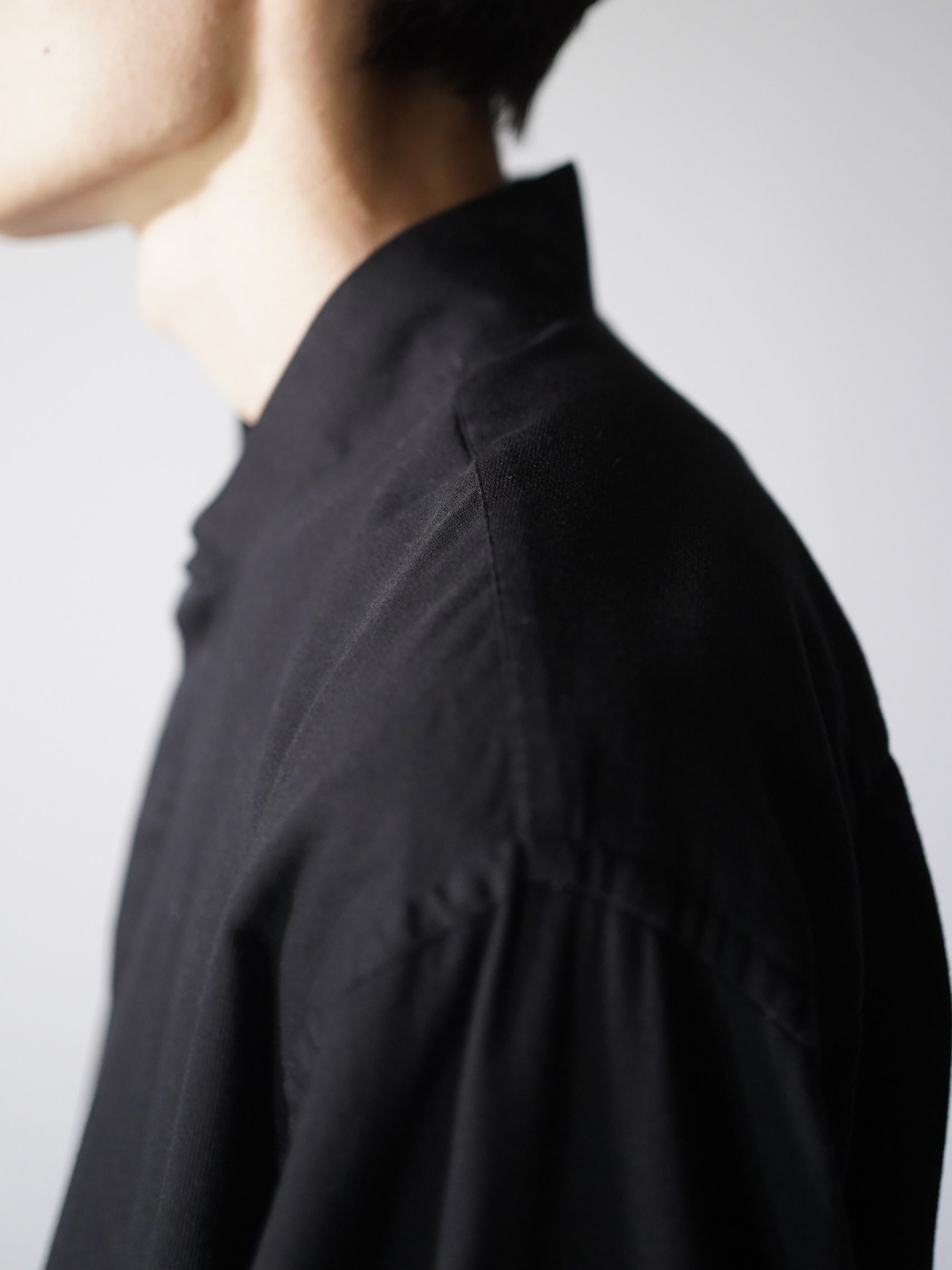 一応スタンドカラーということで良いのか。黒ボディに比翼で削いだクラシックをベースにはしながら、変態的な思考です。