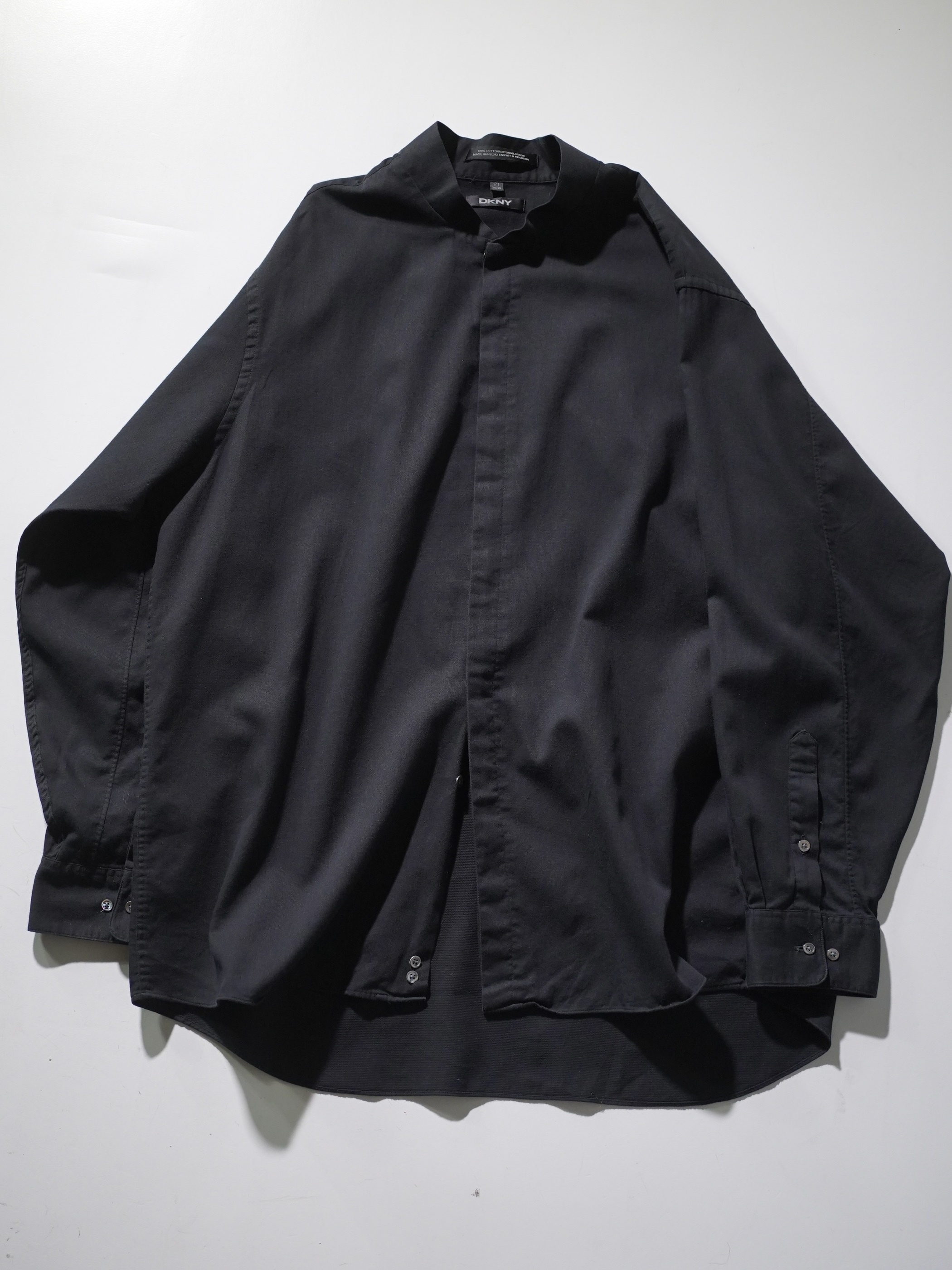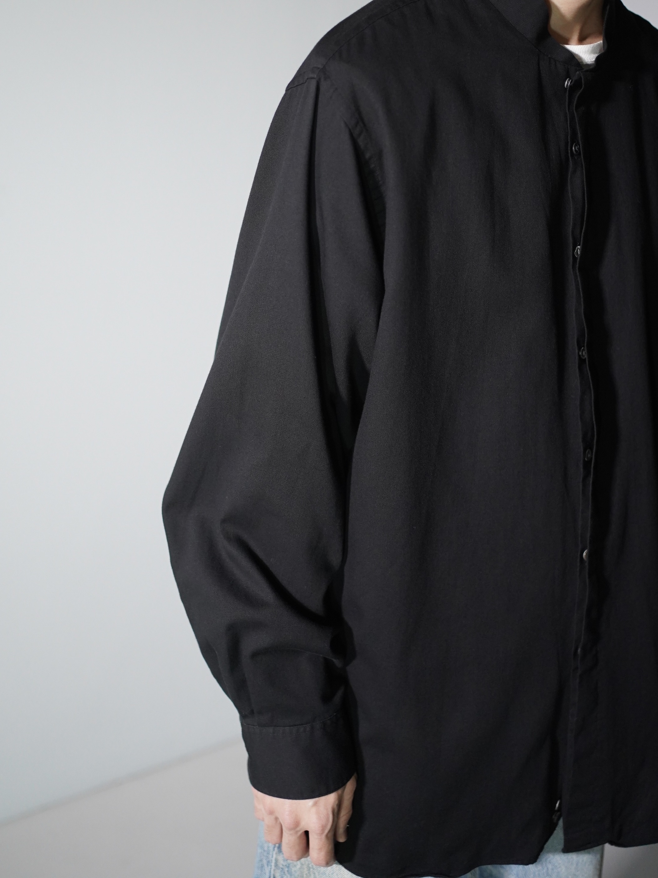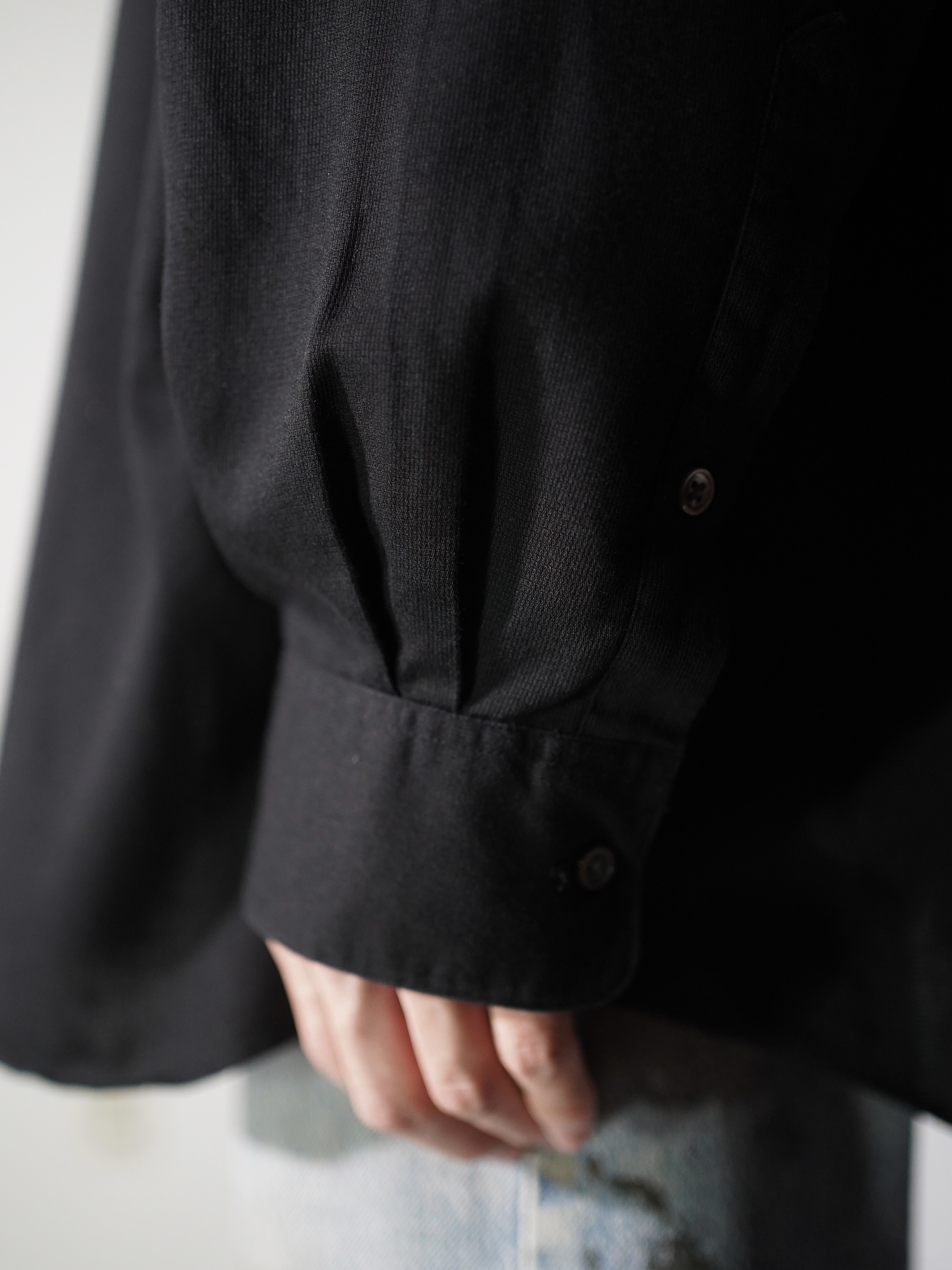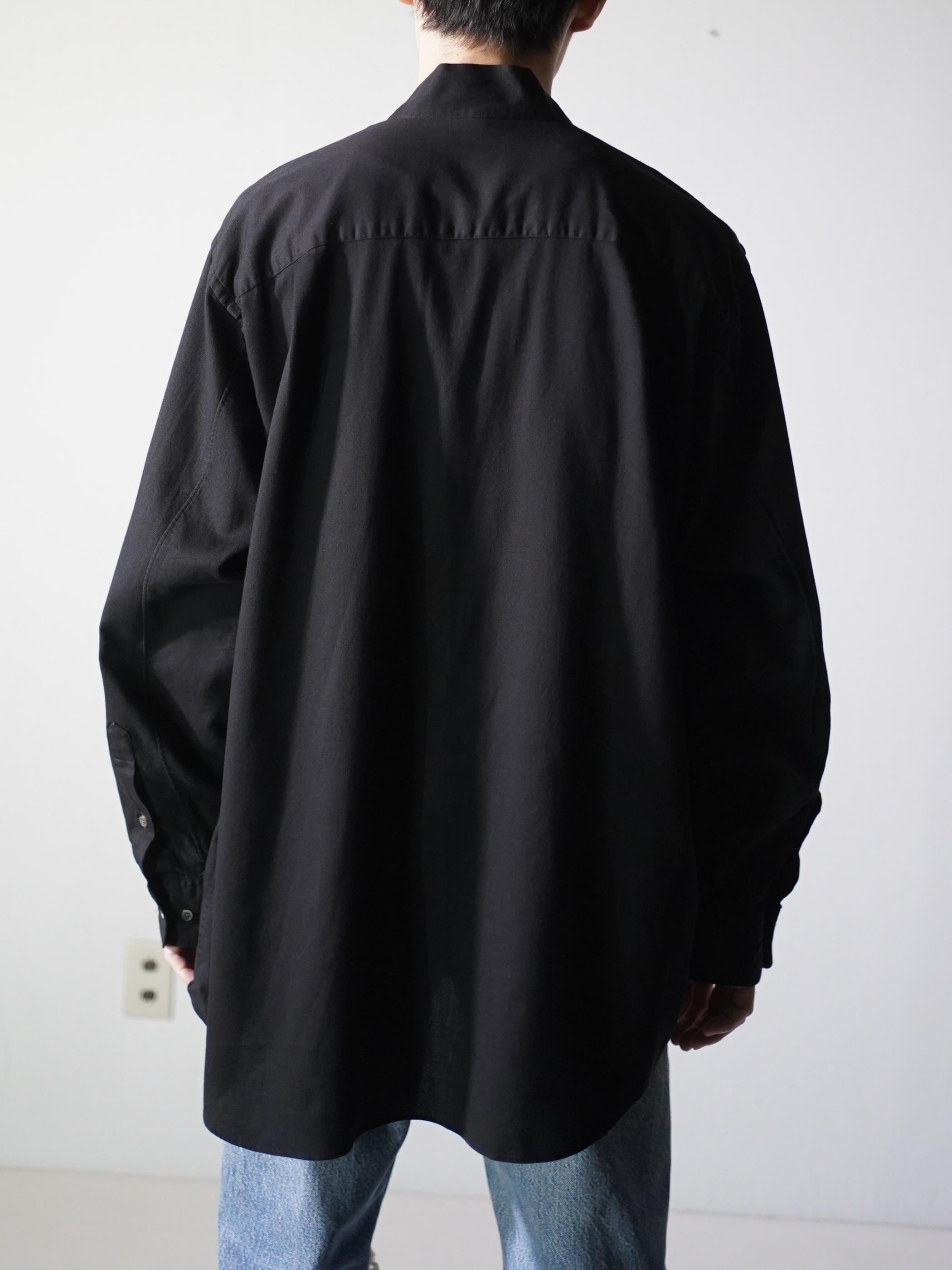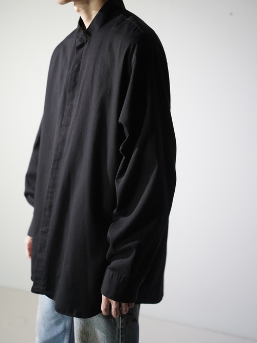 一応スタンドカラーということで良いのか。黒ボディに比翼で削いだクラシックをベースにはしながら、変態的な思考です。
