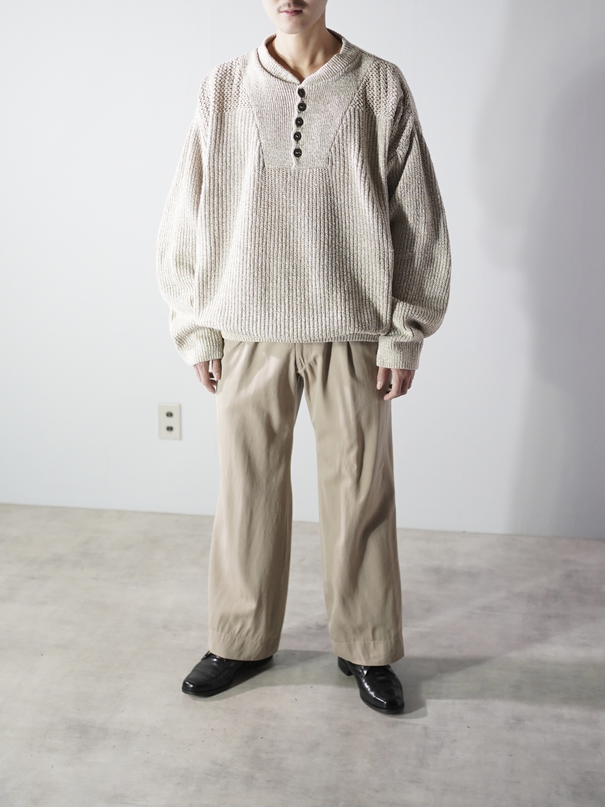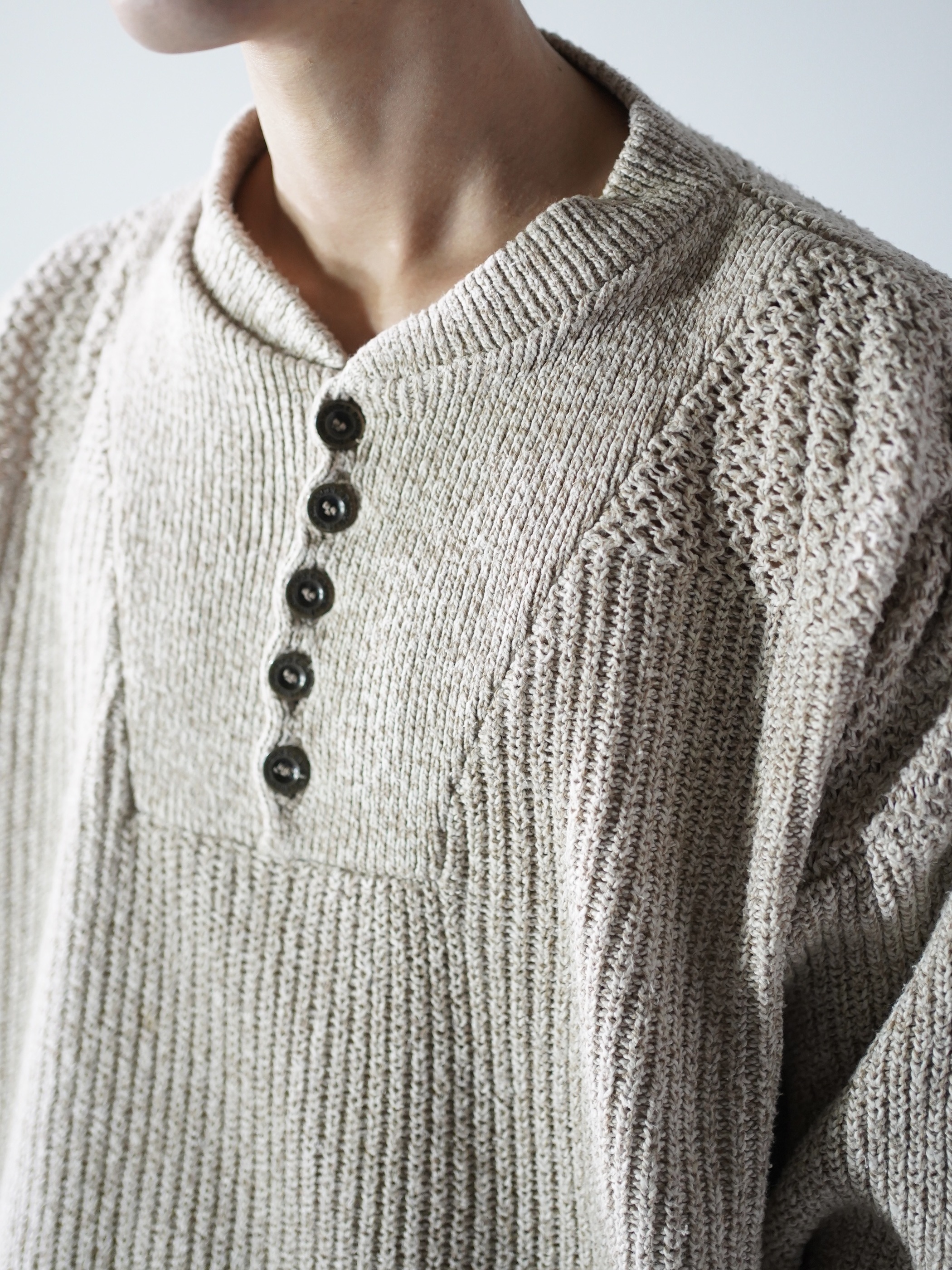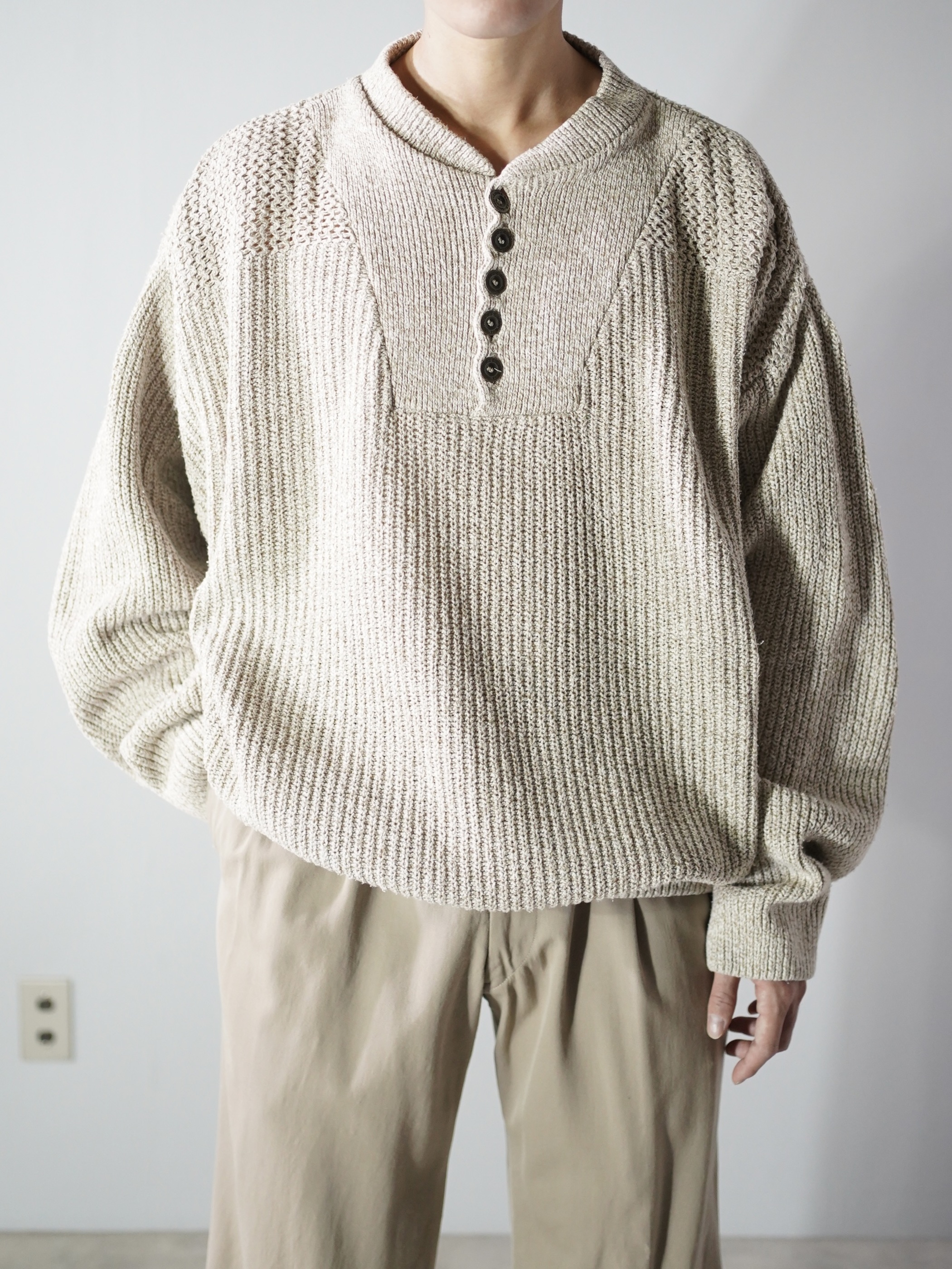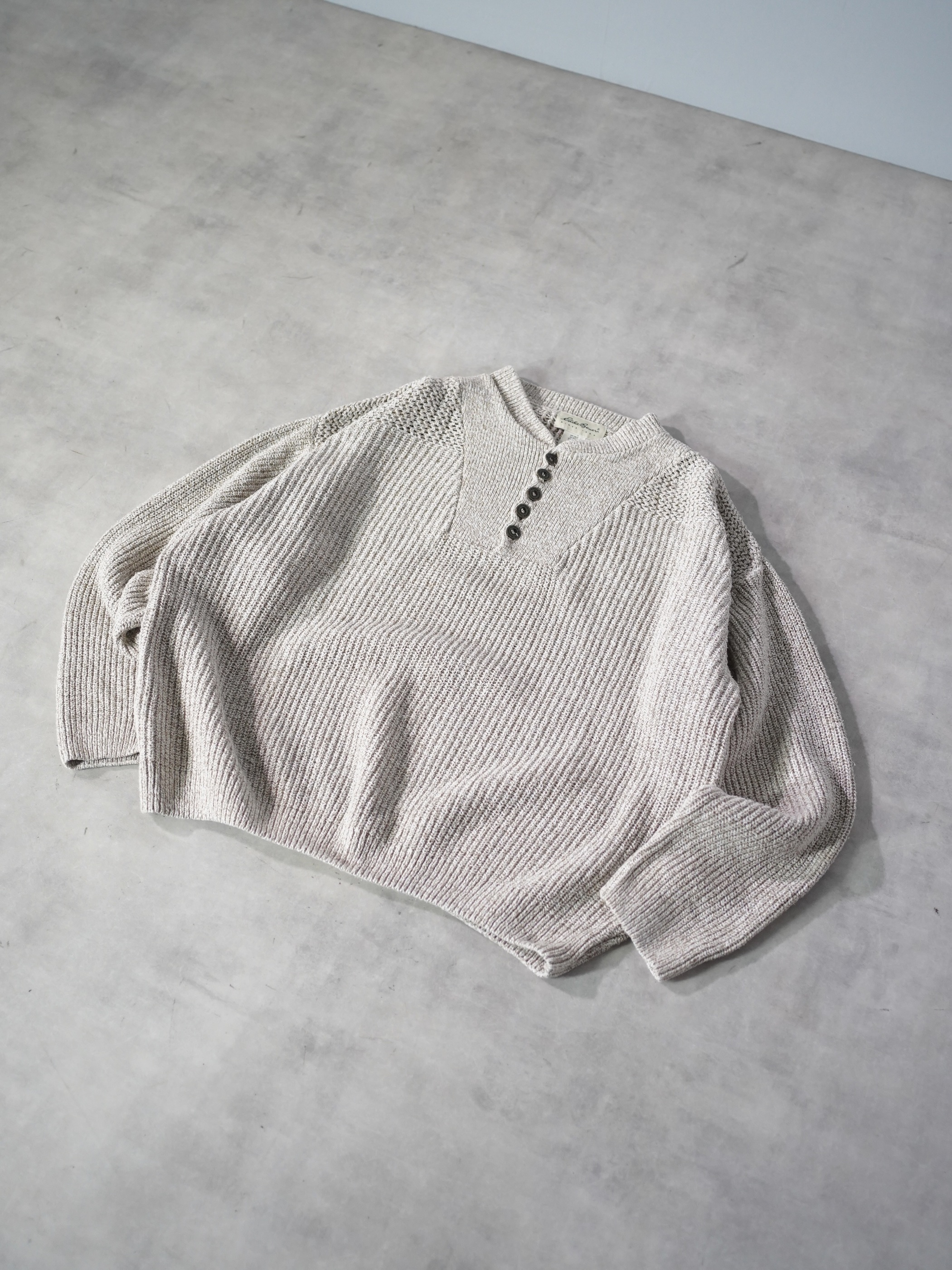 ・00's Eddie Bauer 5button neck Cotton knit sweater / Made in USA