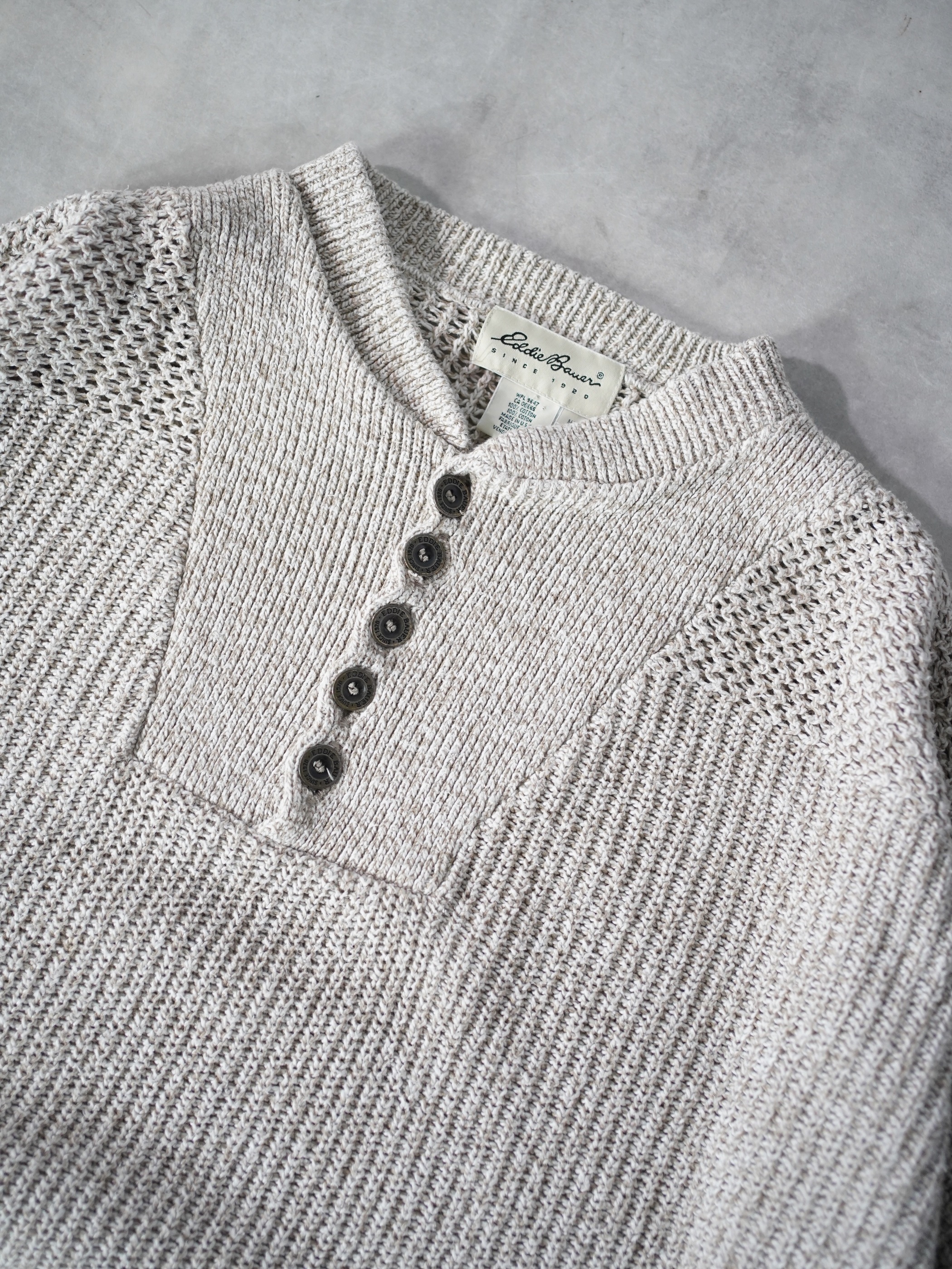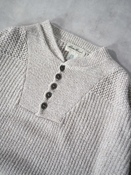 00's Eddie Bauer 5button neck Cotton knit sweater / Made in USA