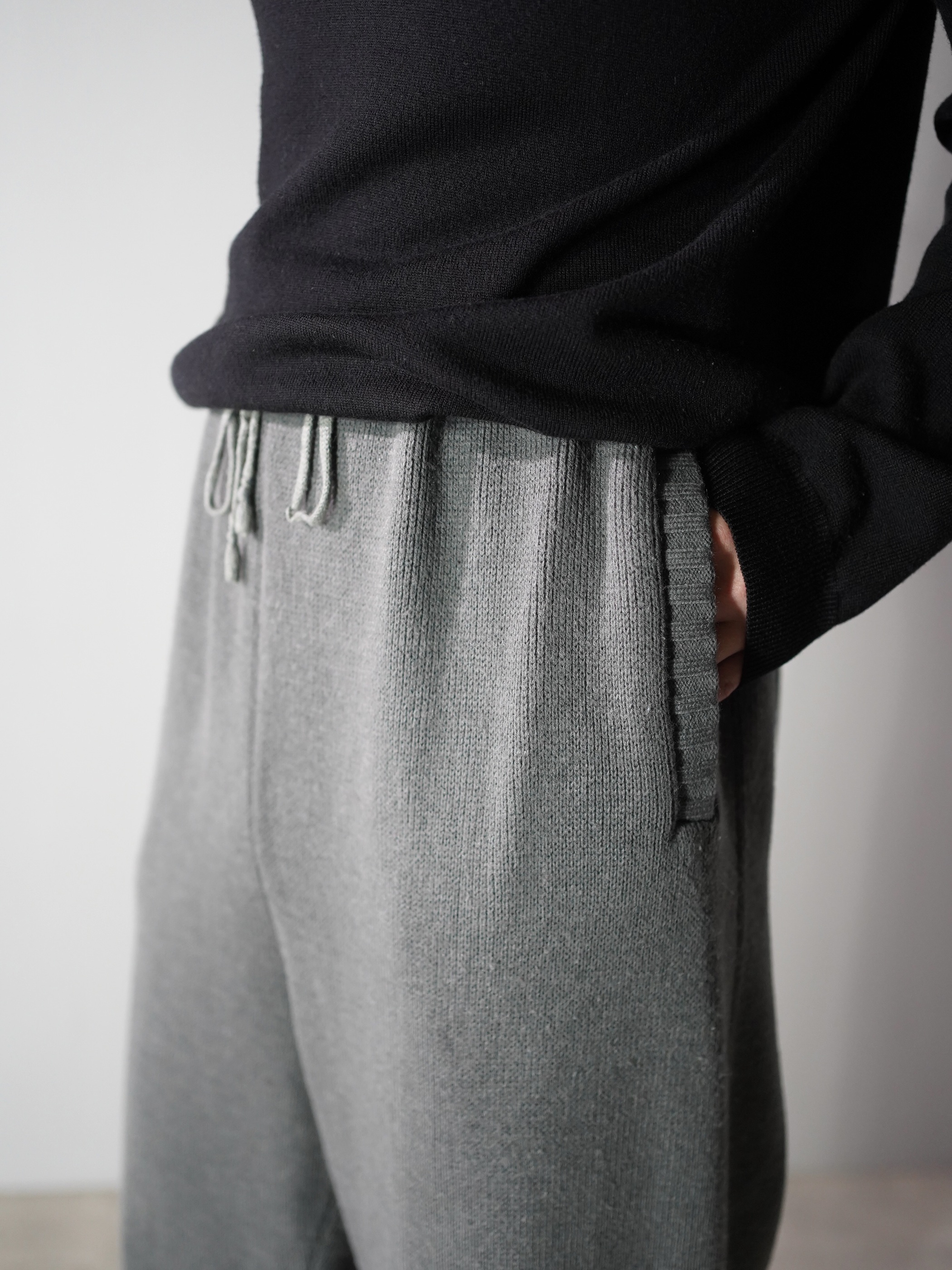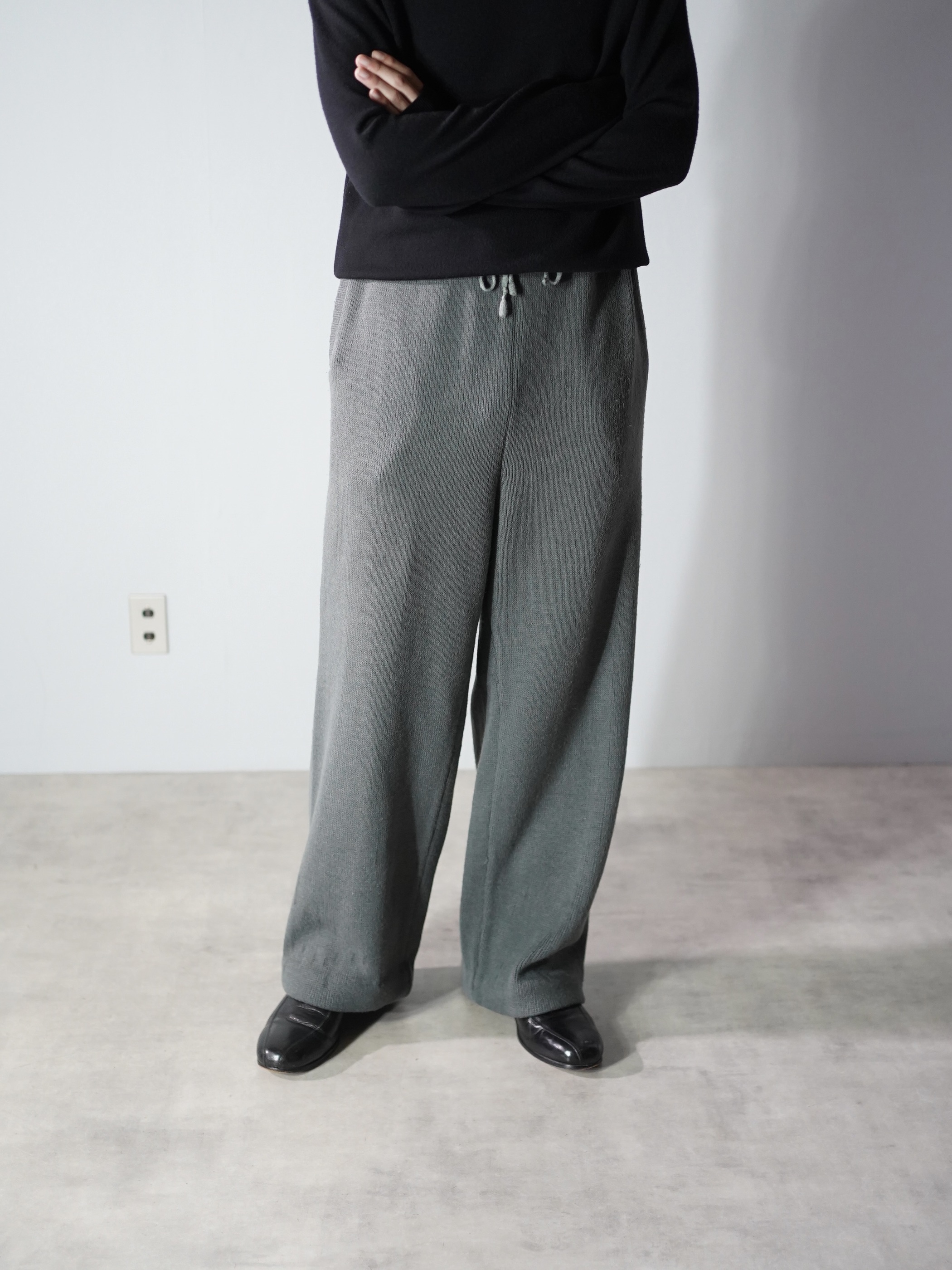 肉厚アクリルリブニットパンツ。ワイドズドンで癖のないシルエット。