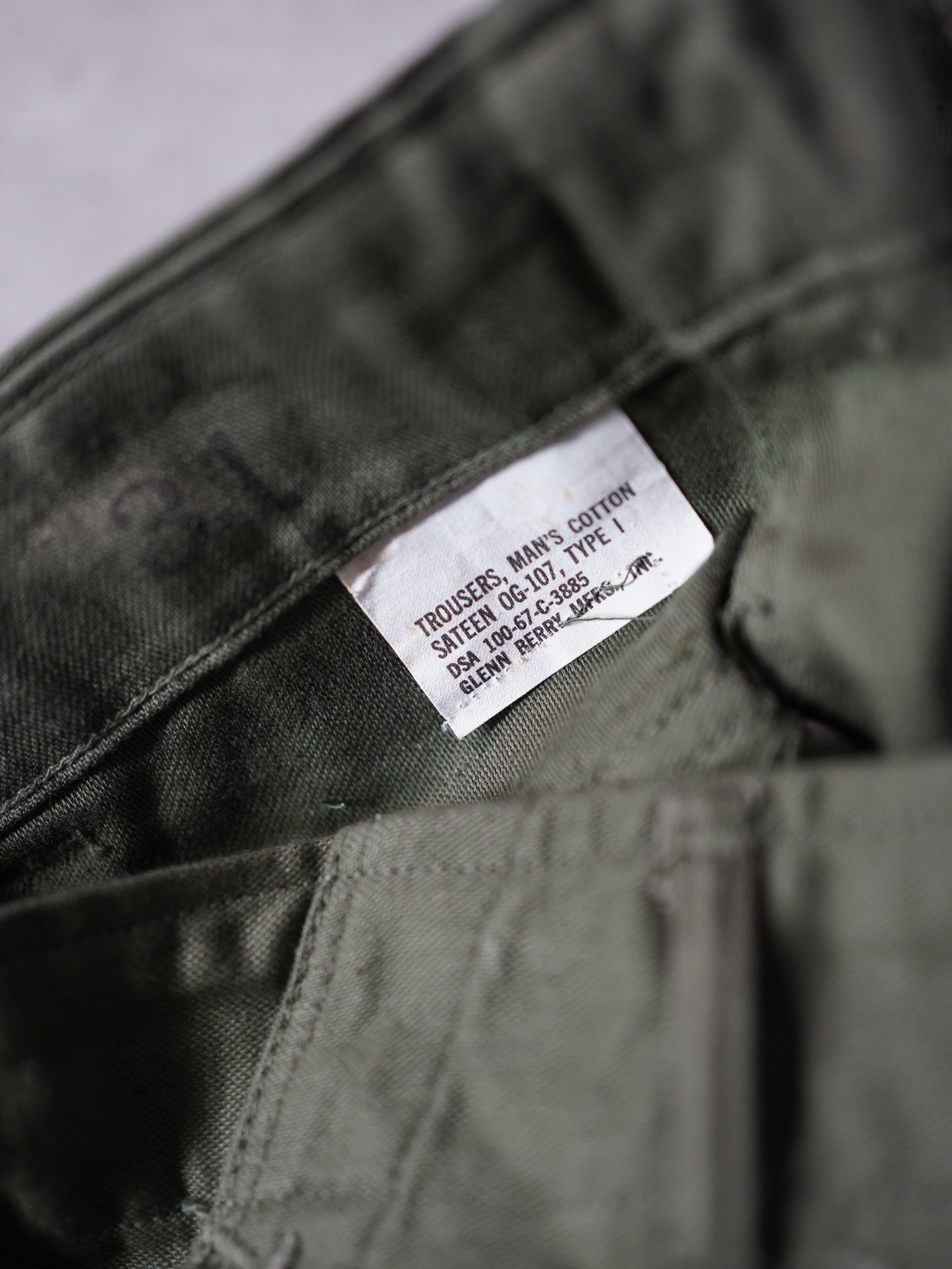 67年製官給 OG-107 Type1 通称ベイカーパンツ コットンサテン生地の一本になります。