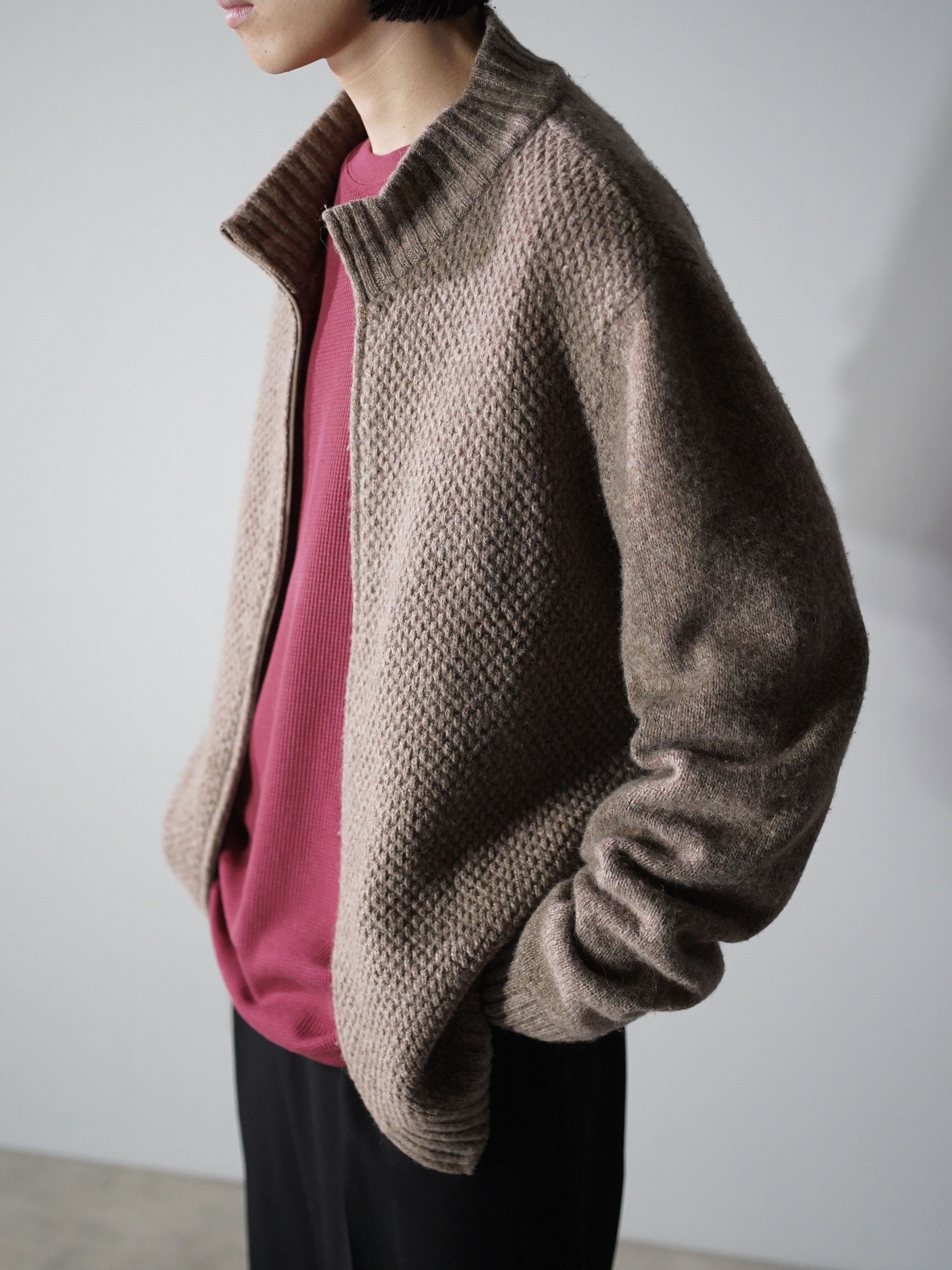 ・Made in Italy Seed stitch zip knit sweater