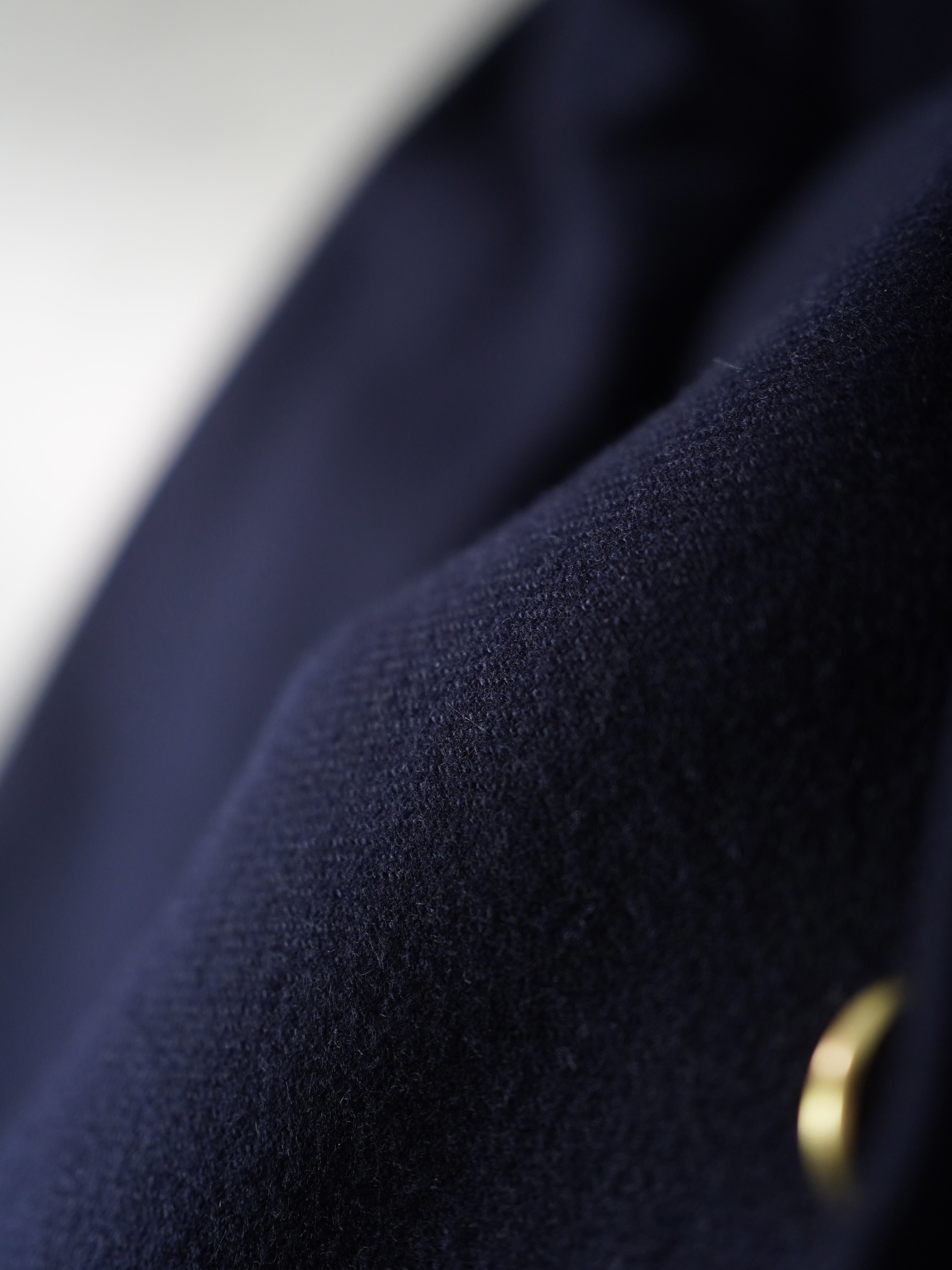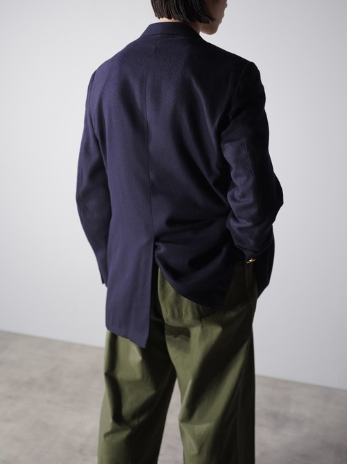 ラペルバランス、襟が首に吸い付くようなパターン設計。