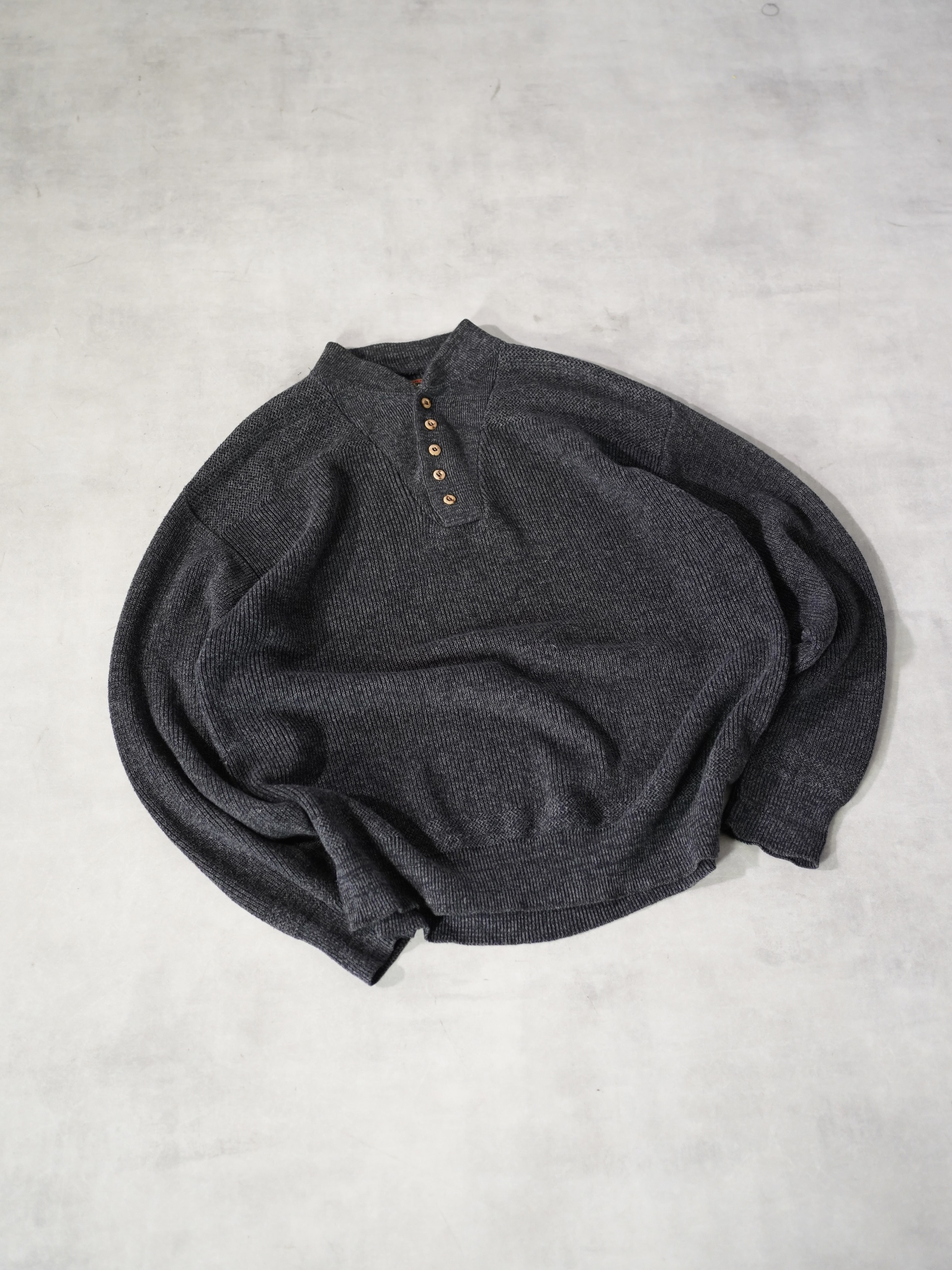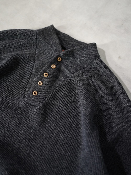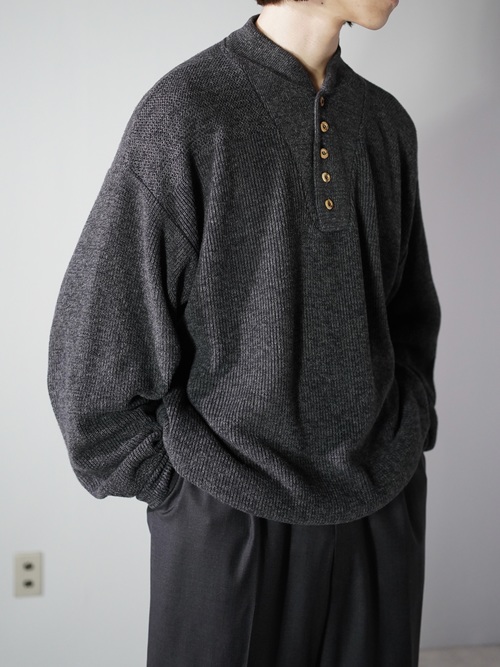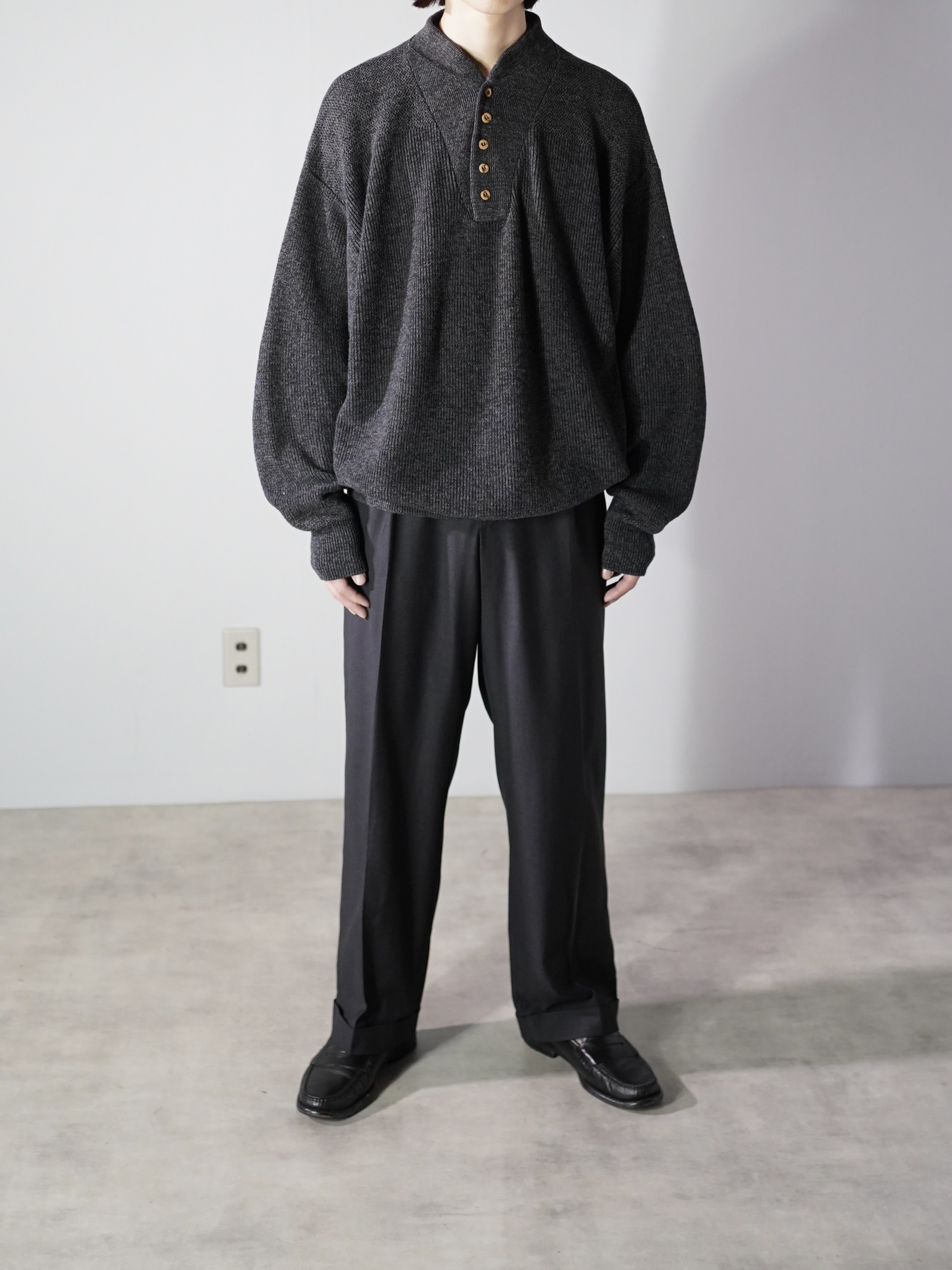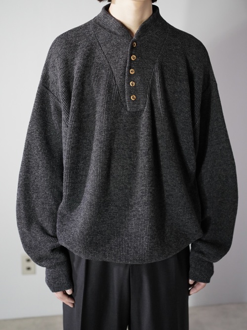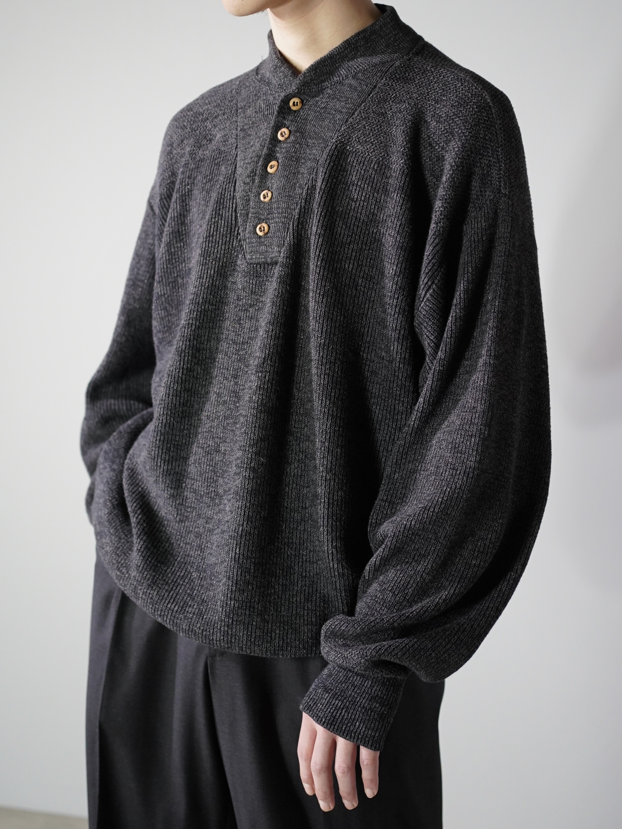 がっしりとした質感ではなく、柔なドレープを感じる5ボタンセーター。