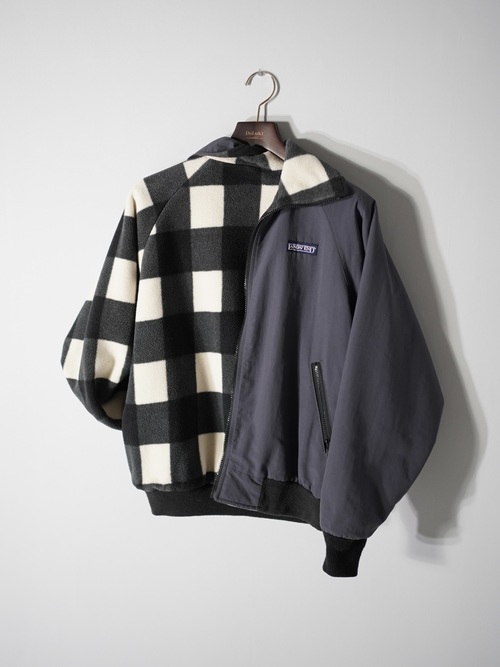 アスファルトグレーナイロンシェル×バッファローチェックフリースのリバーシブル。
