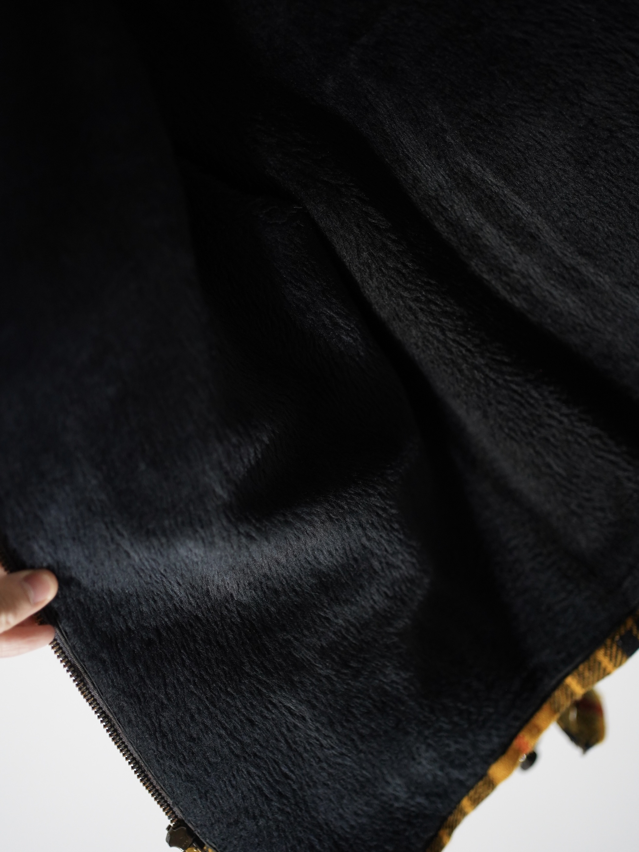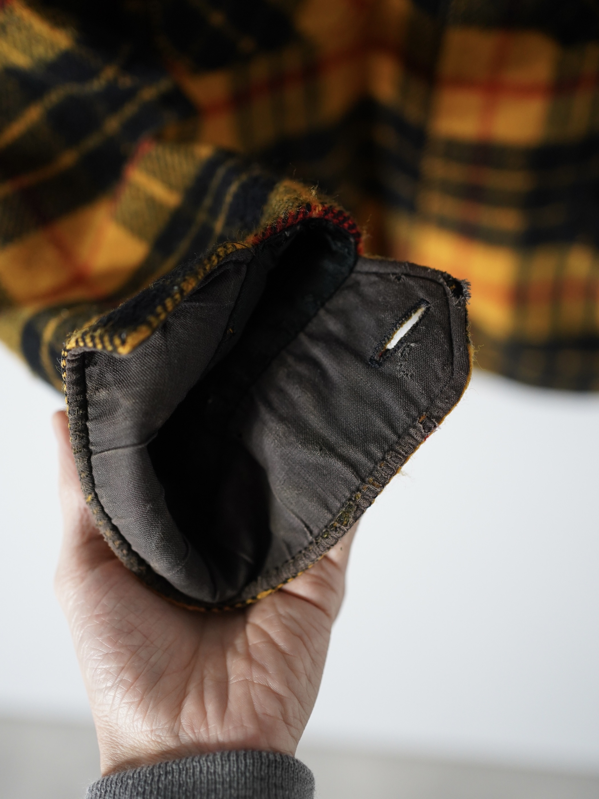 裏地はフェイクファータイプで年代物特有の香りがぷんぷんしますが、割にはボリュームも控えめですっきりとモダンなシルエット感で好ましいです。
