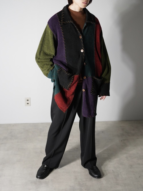 ・1990's Mexican-inspired Patchwork Acryl knit jacket