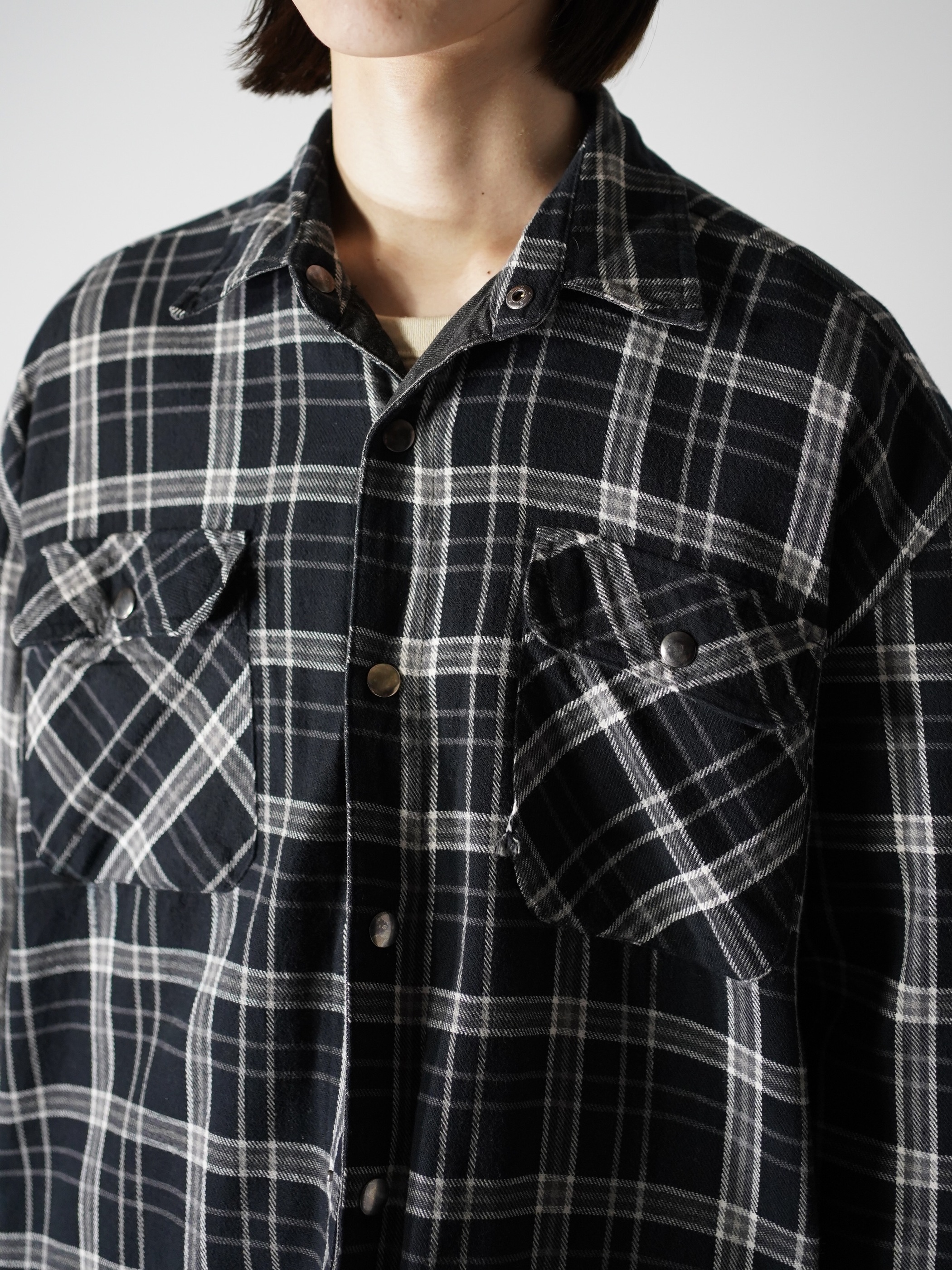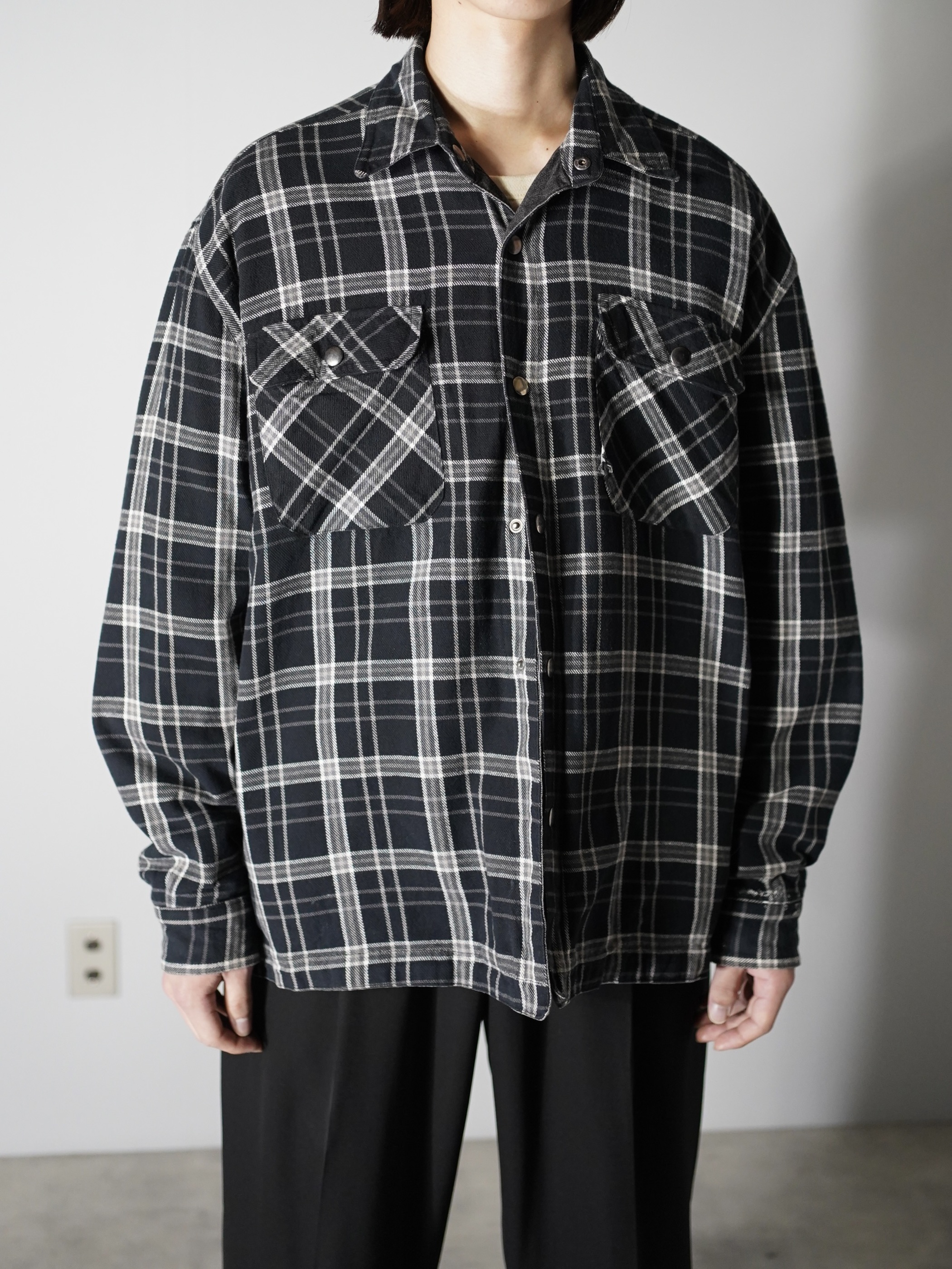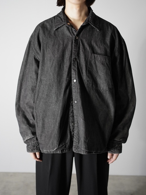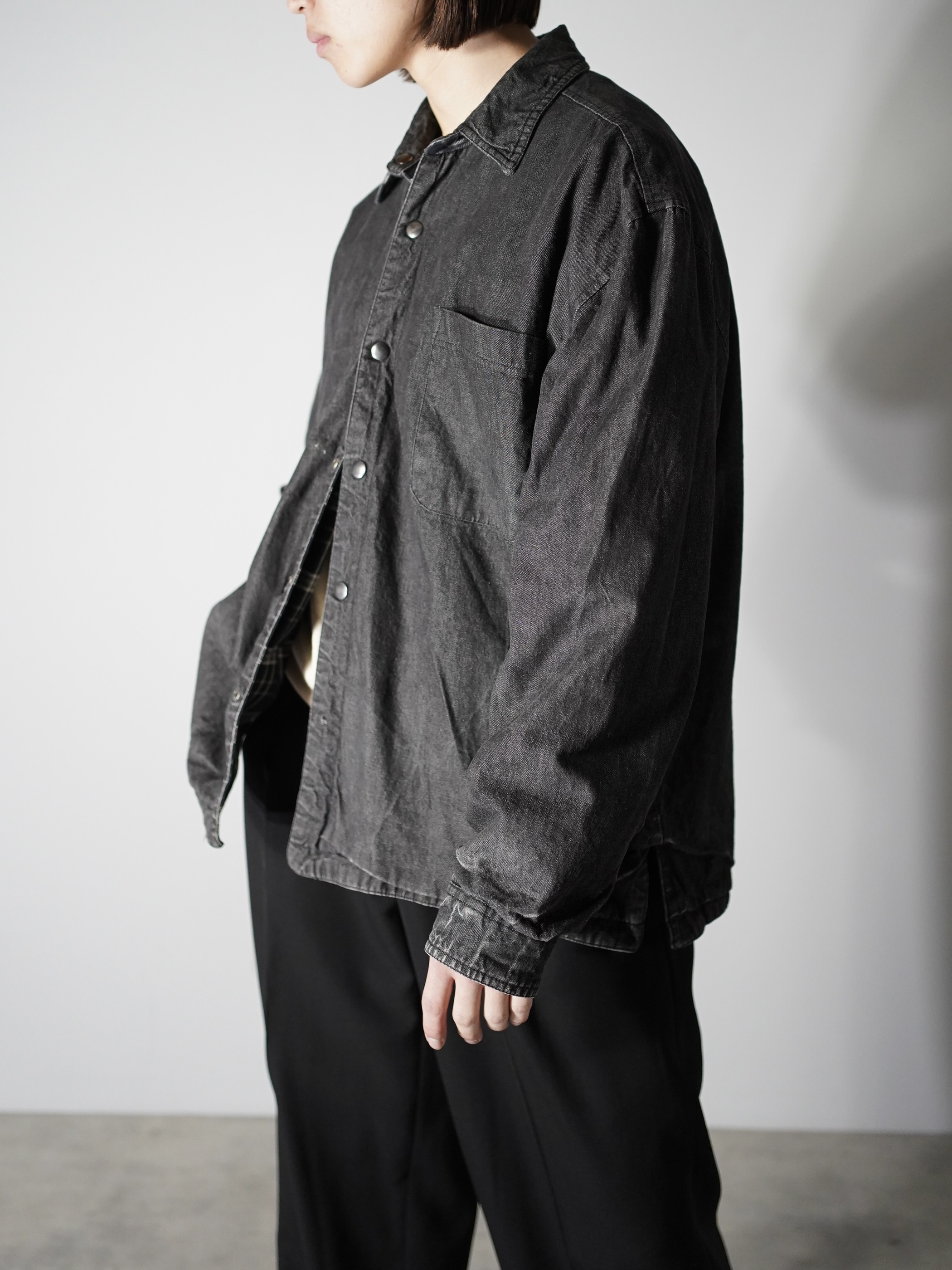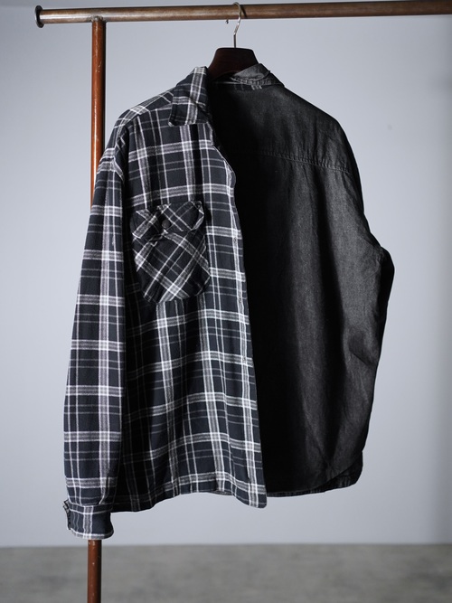 ・1990's Black Denim × Cotton Flannel Reversible Snap-up shirt jacket