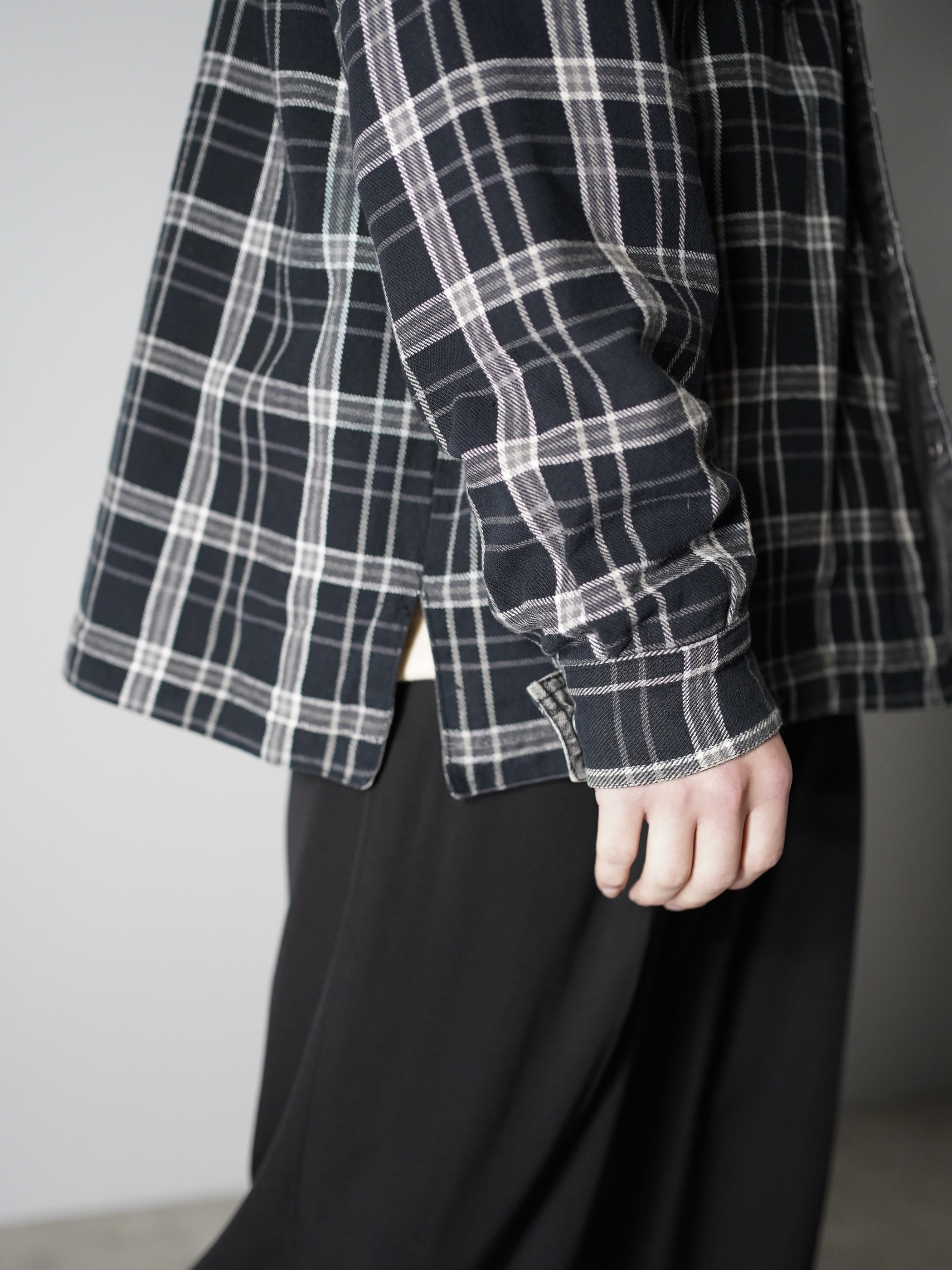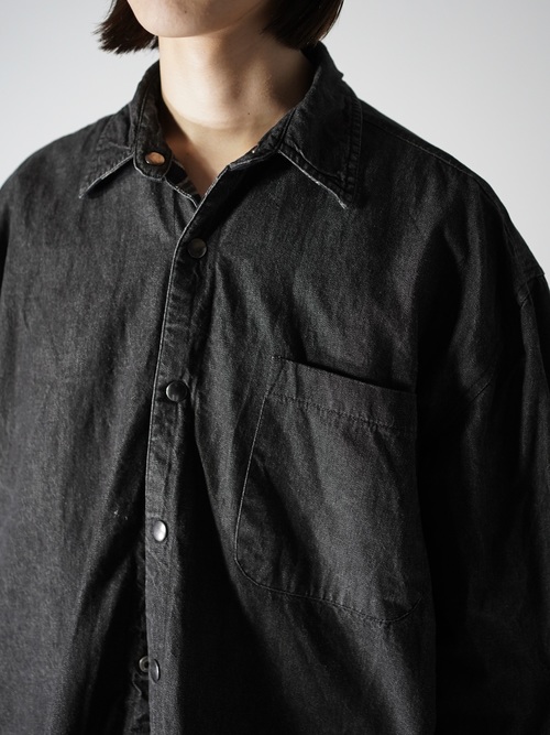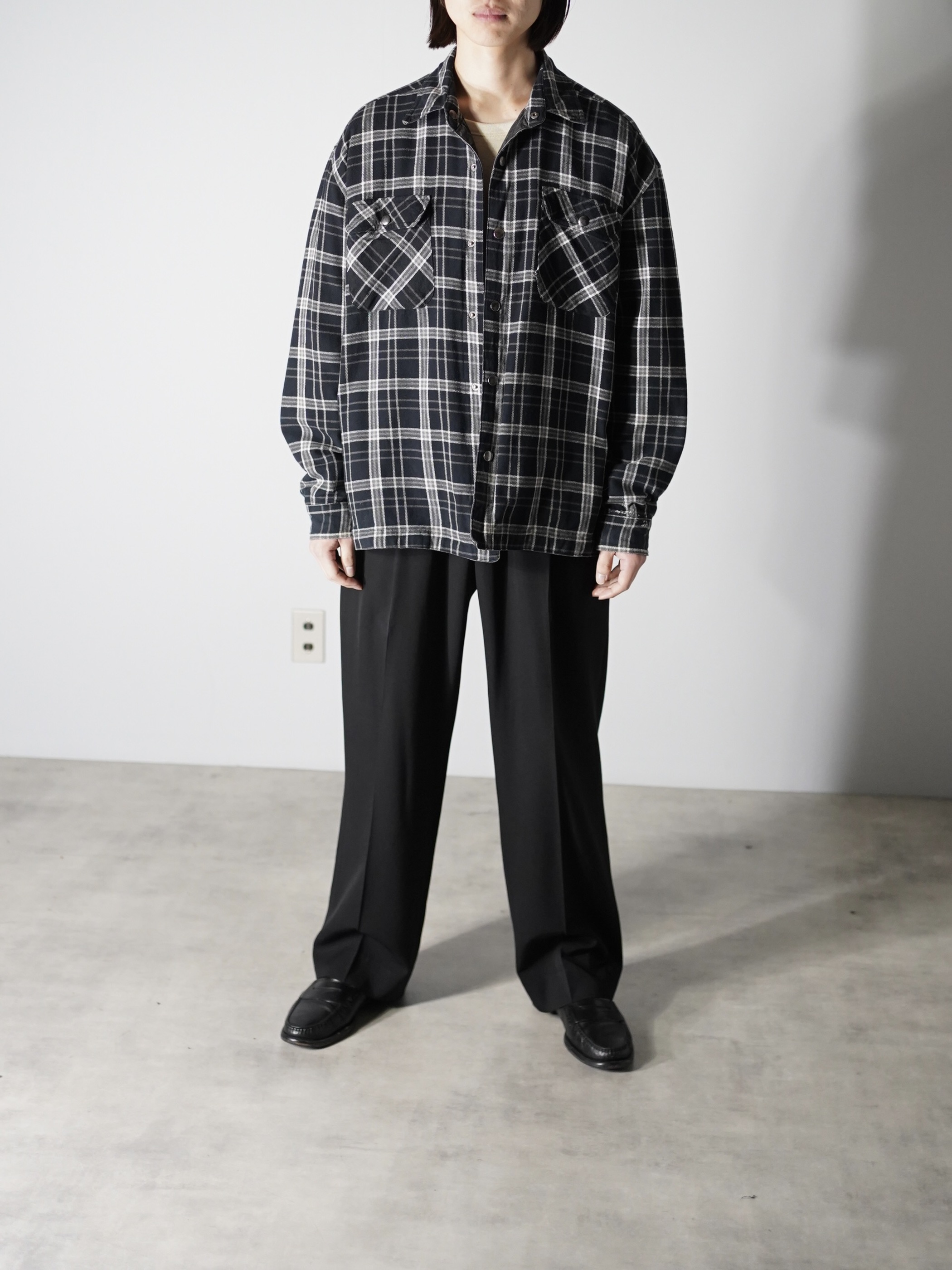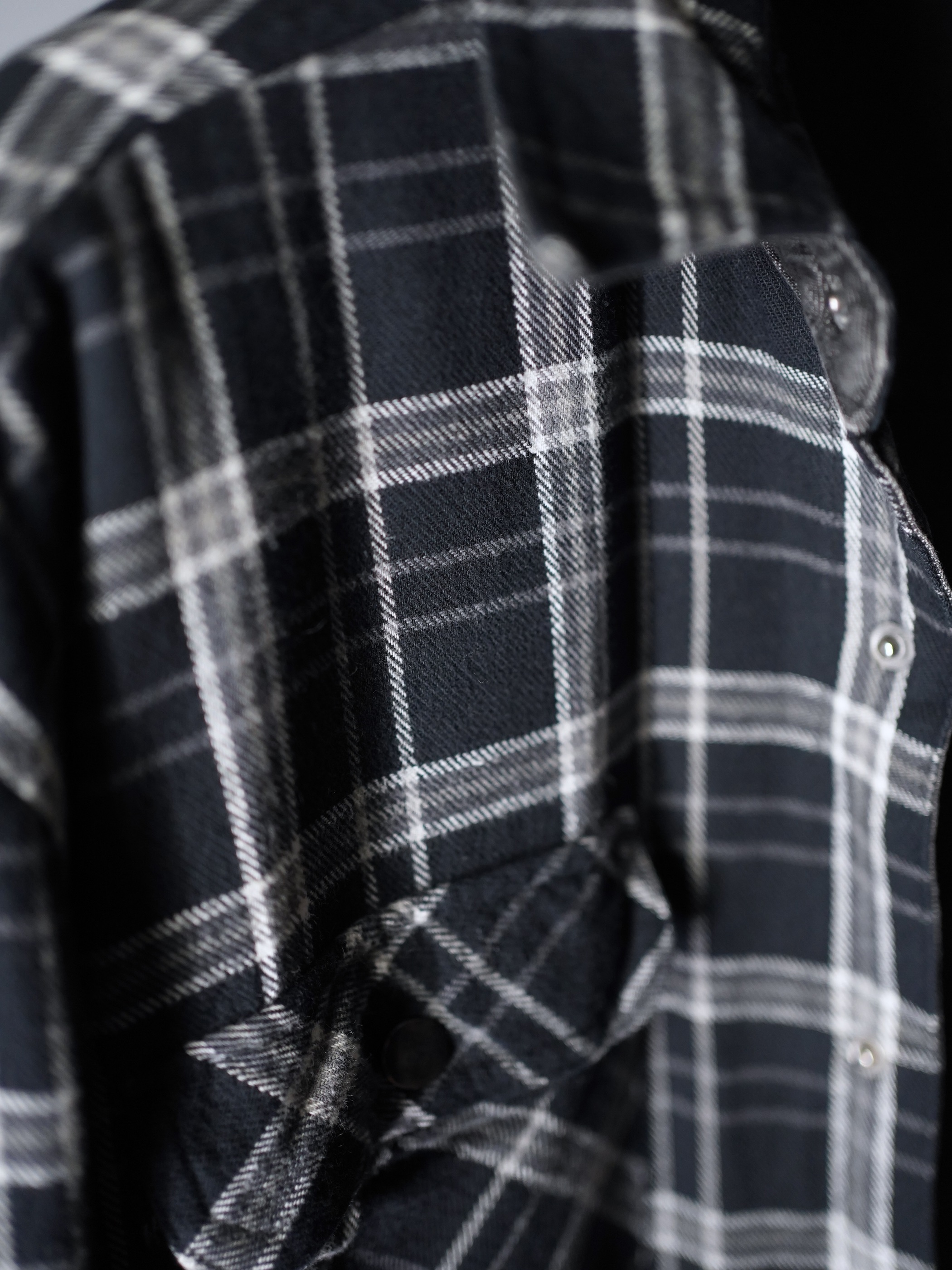 ・1990's Black Denim × Cotton Flannel Reversible Snap-up shirt jacket