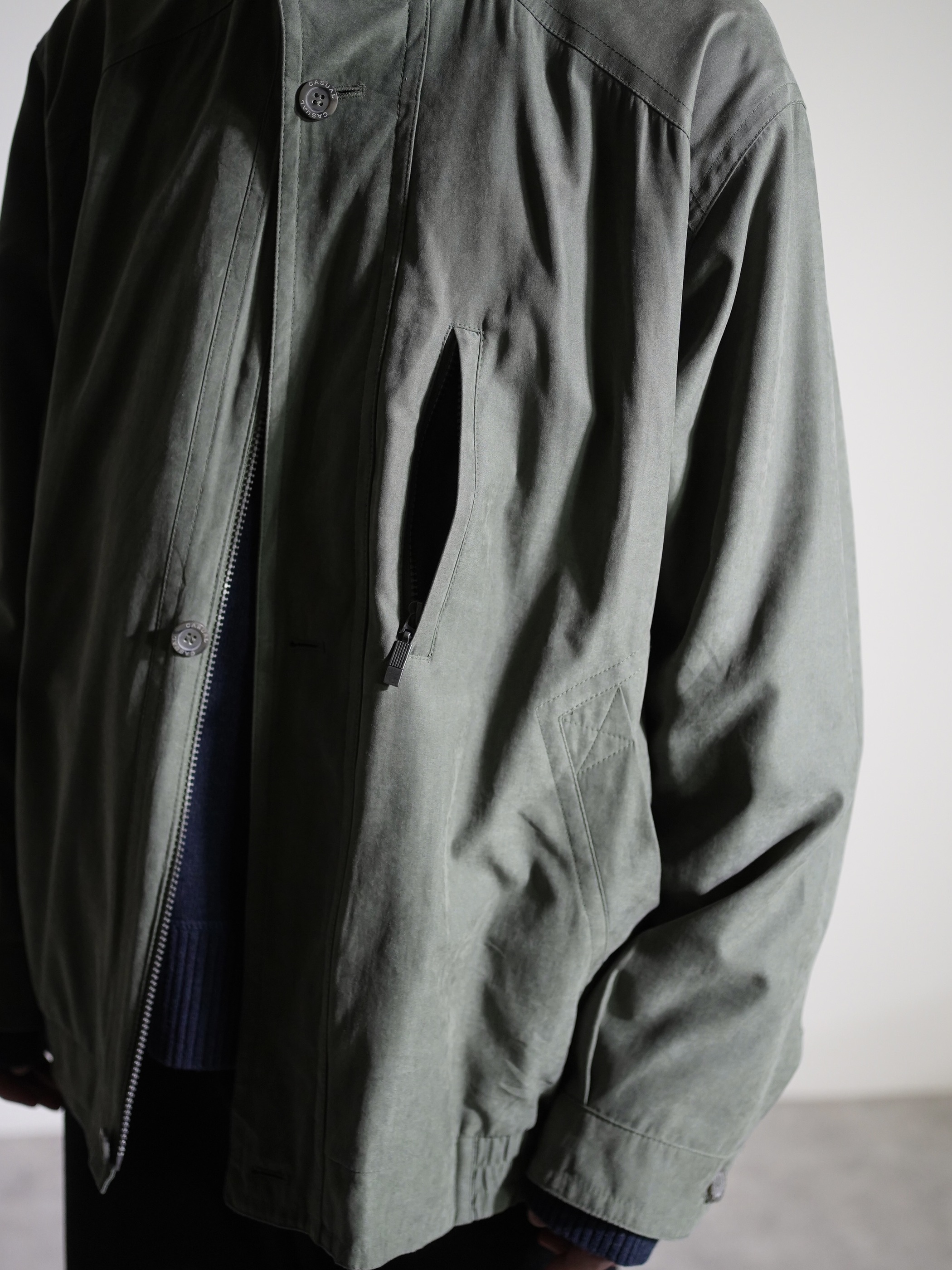 1990~00's MICRO Poly Nylon peach skin stand-neck zip blouson