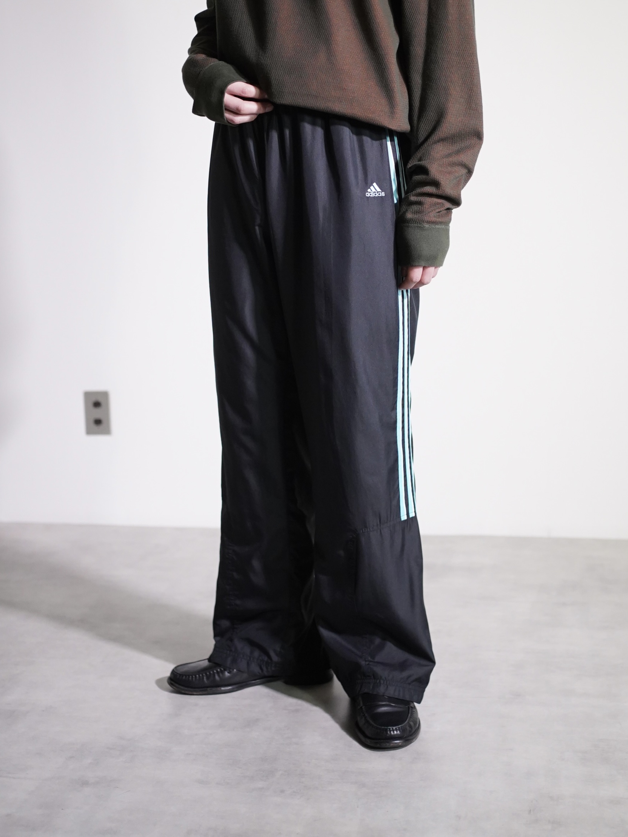 00's Adidas back-side zip crop side line shell track pants/cut sew liner