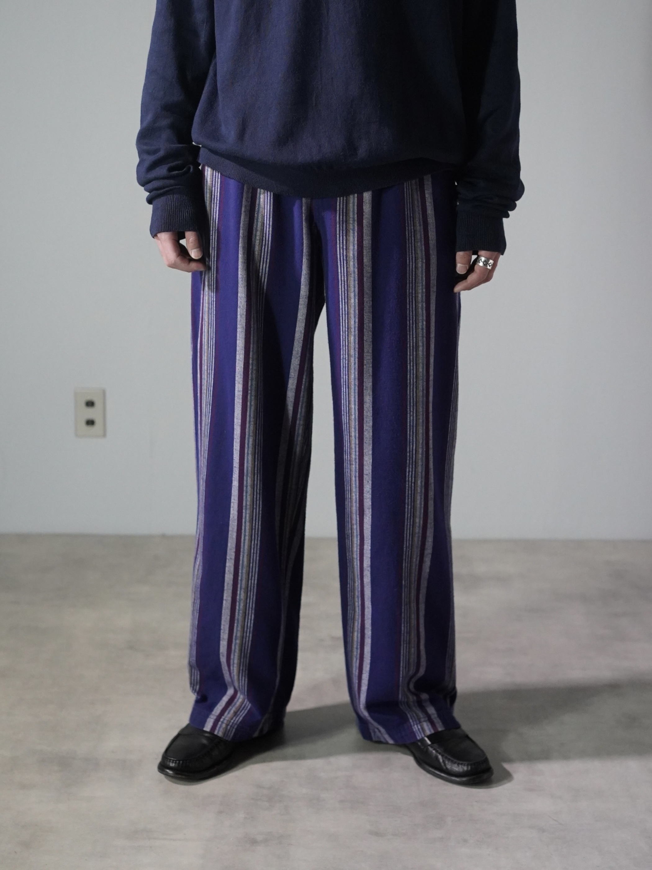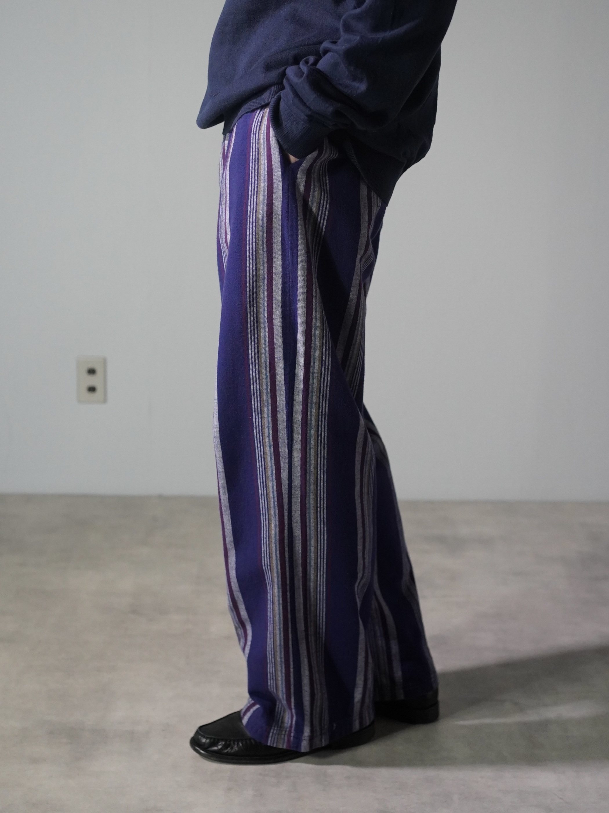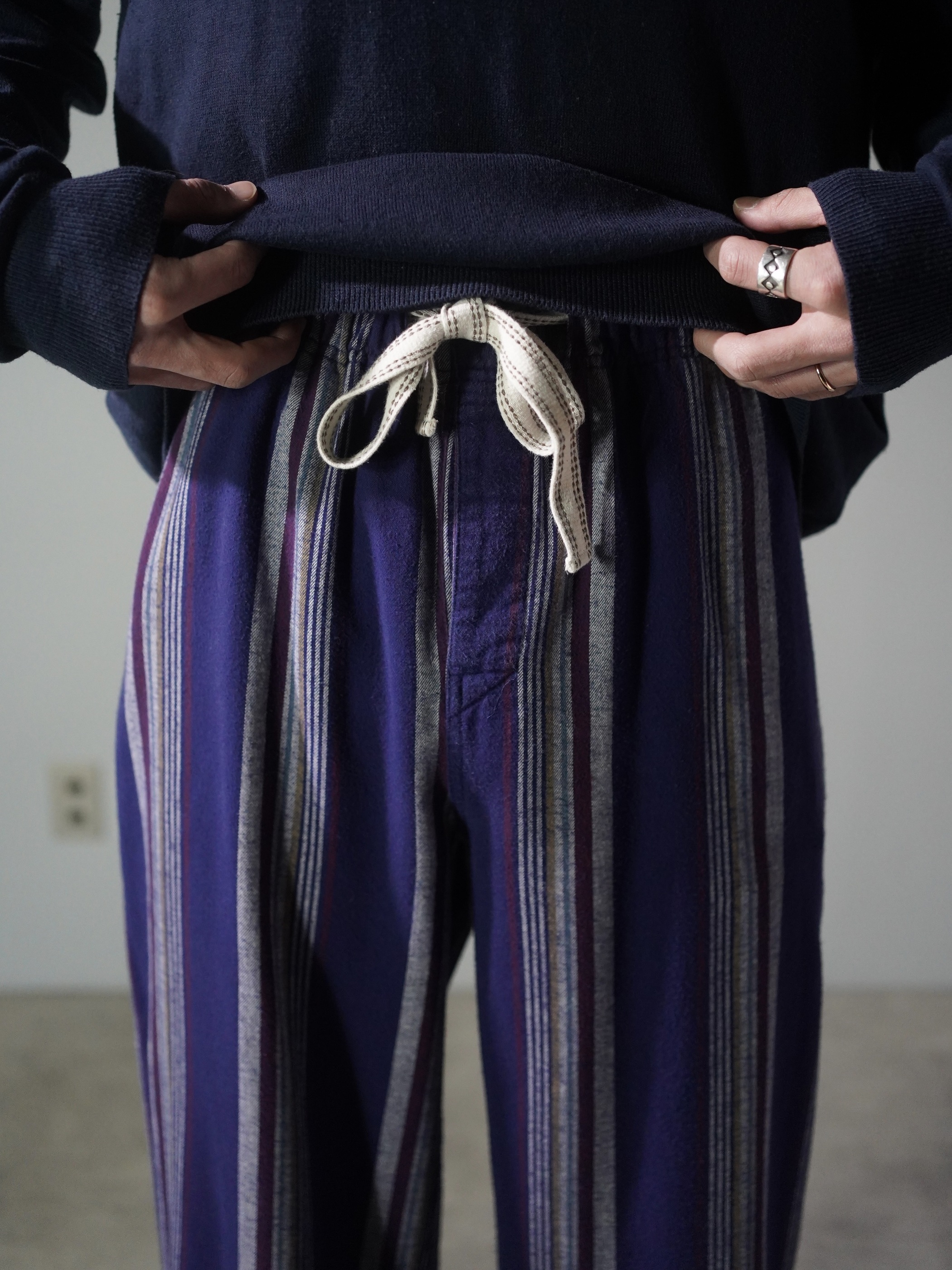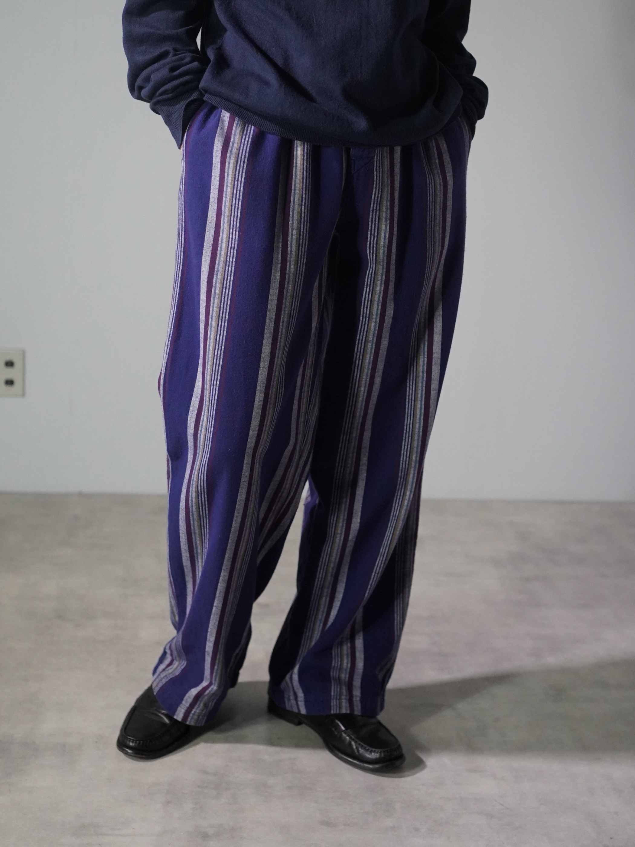 BOTTOMS O・U・T 100% cotton multi-stripe elastic pants