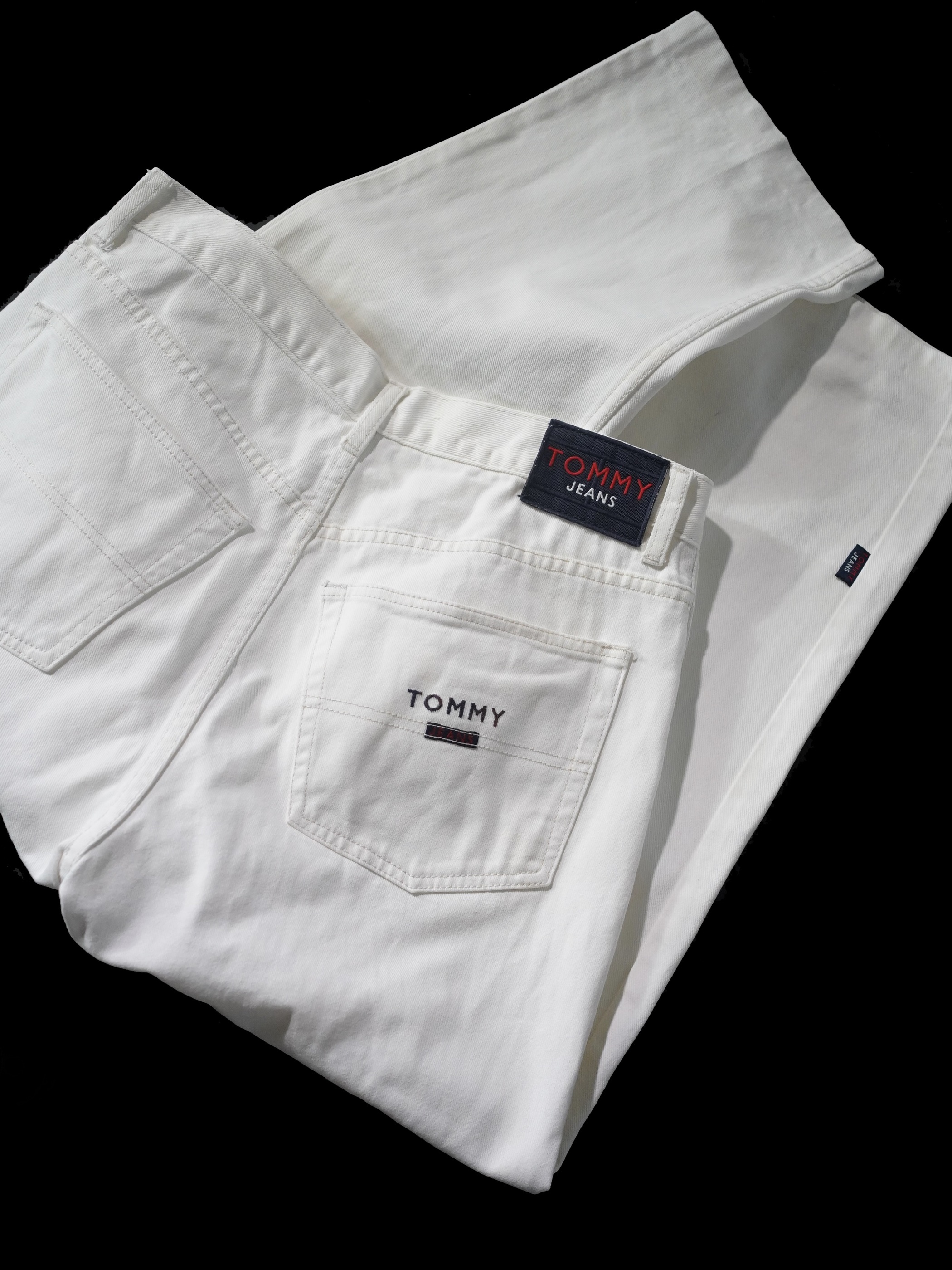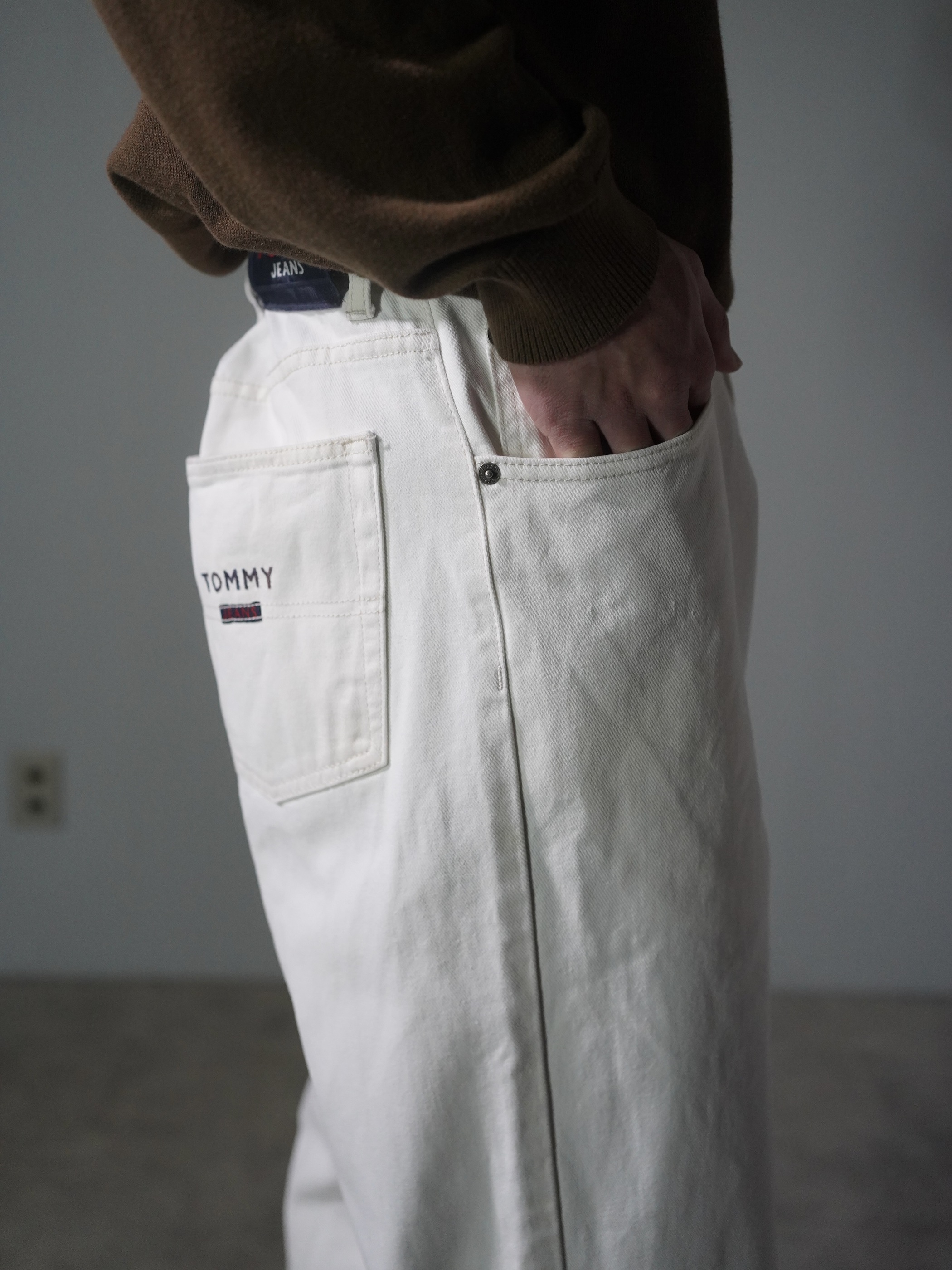1990's TOMMY JEANS side pis name カツラギ wide jeans