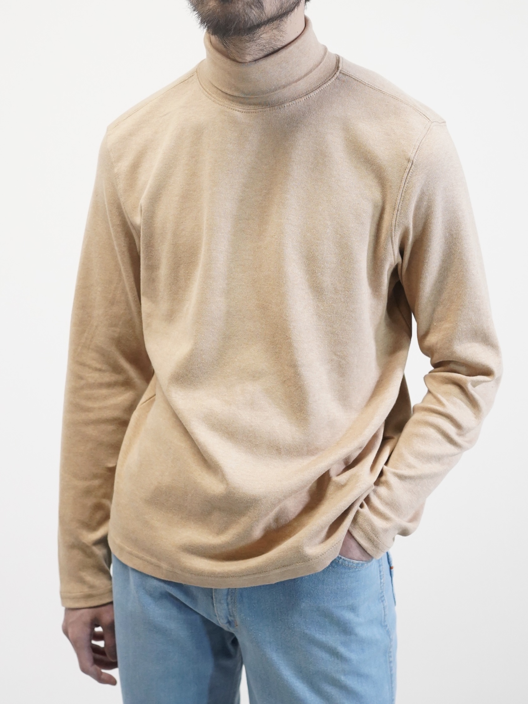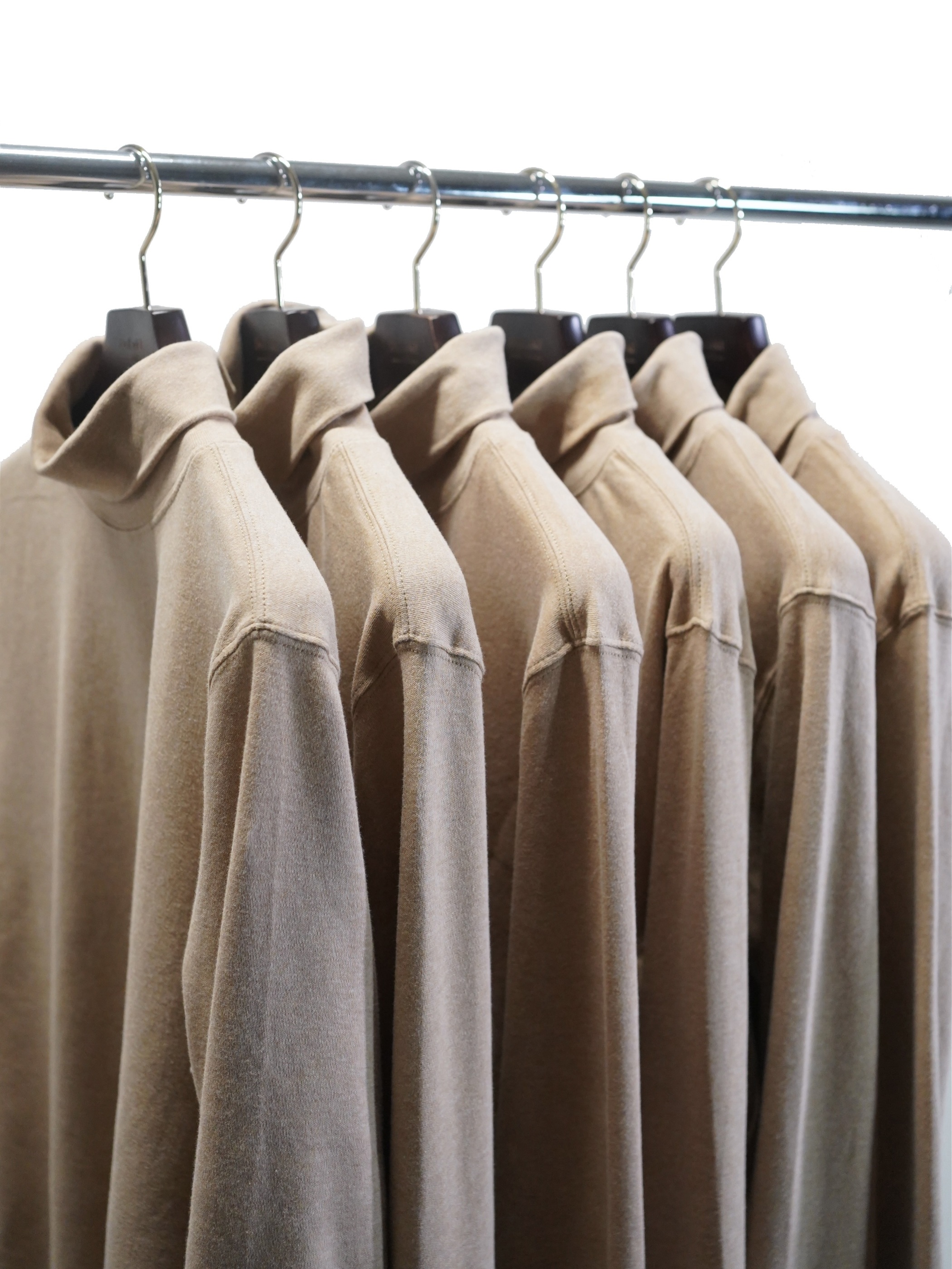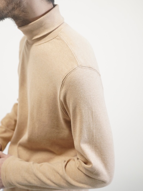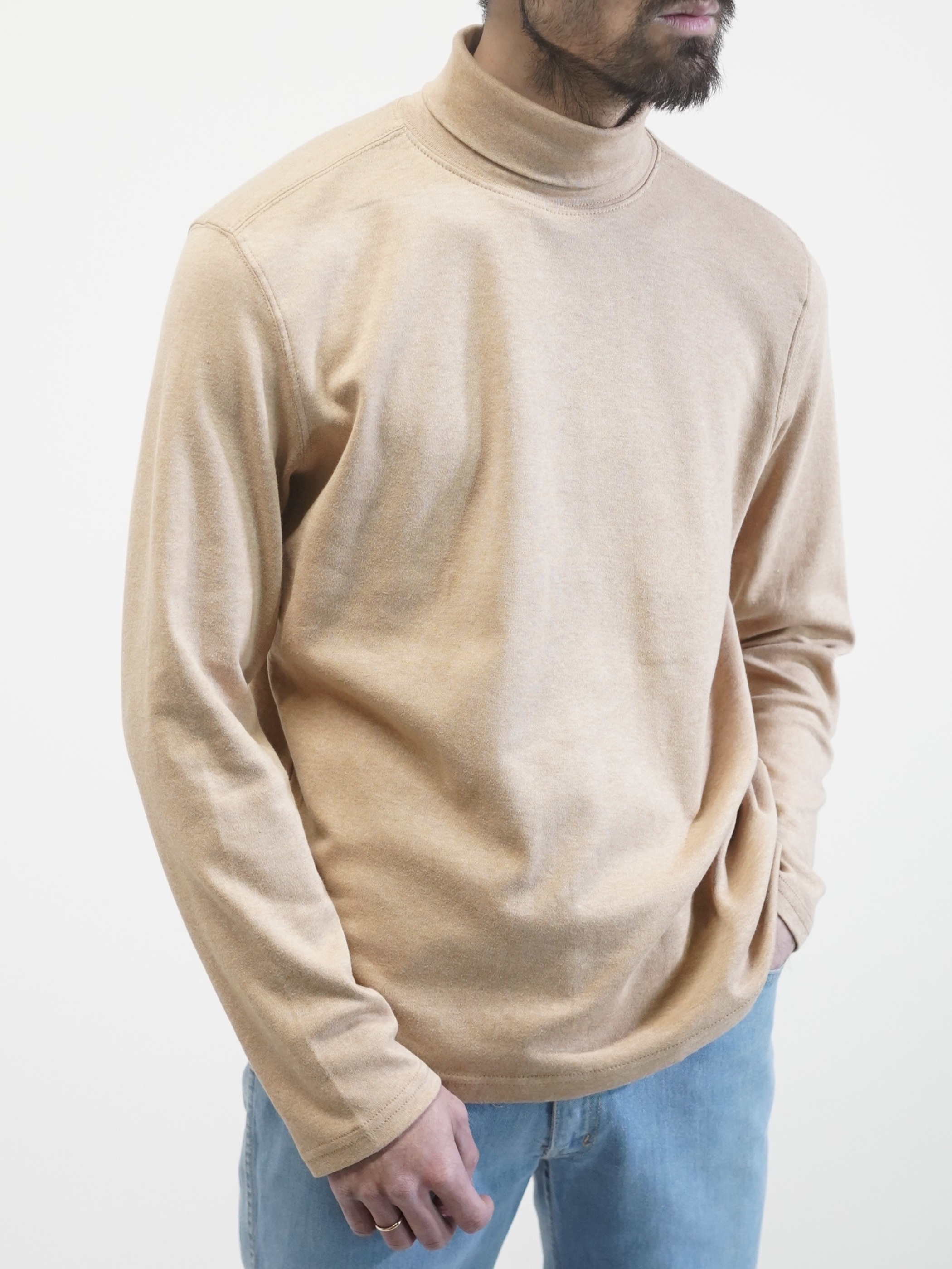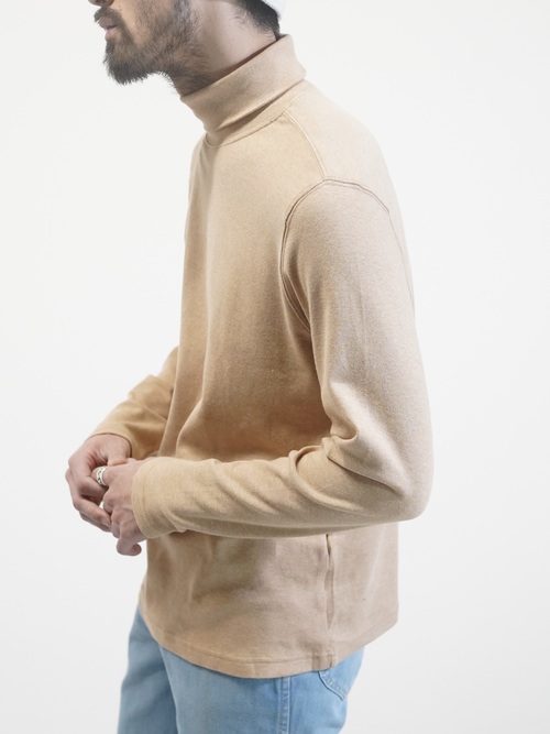 滑らかな肌触りと伸縮性のあるコットン100%、L/Sタートルネック。